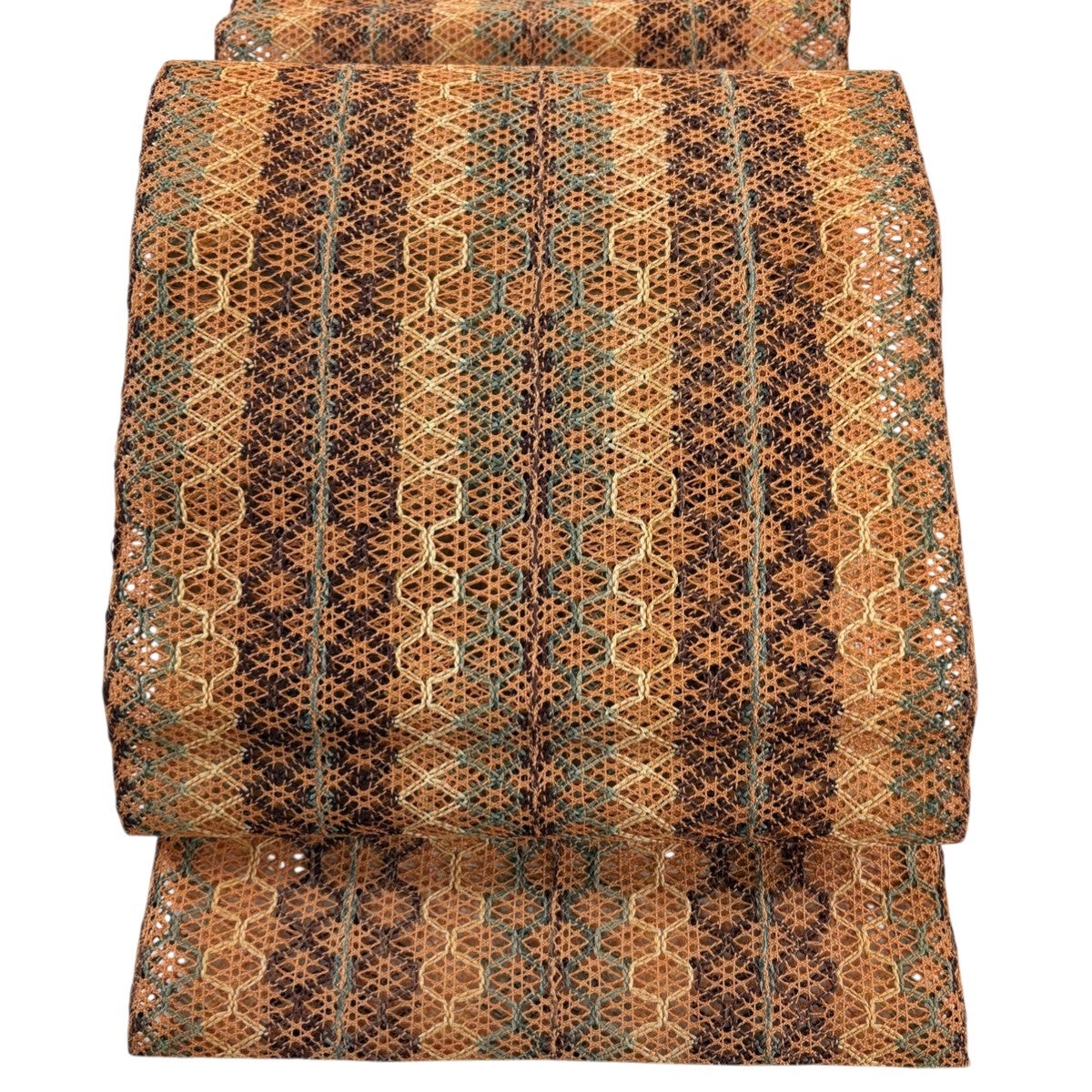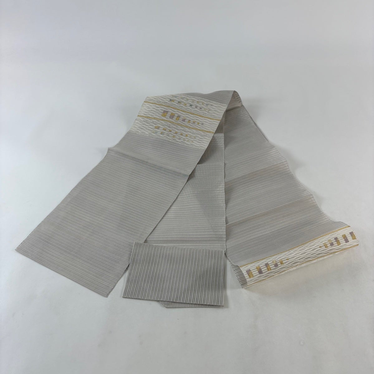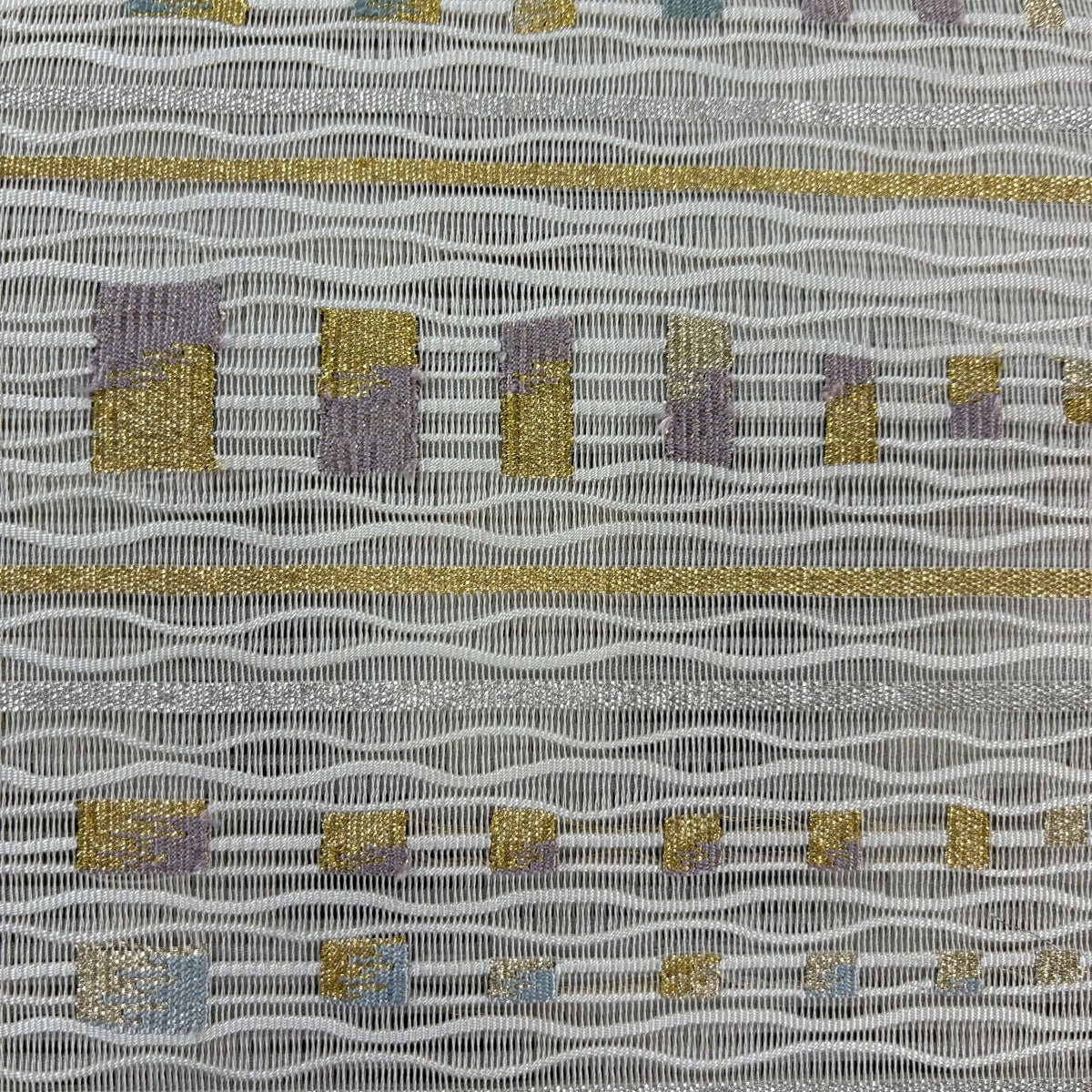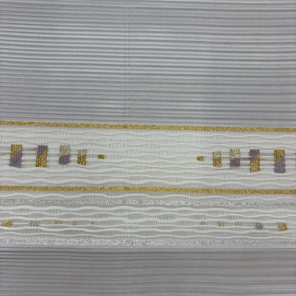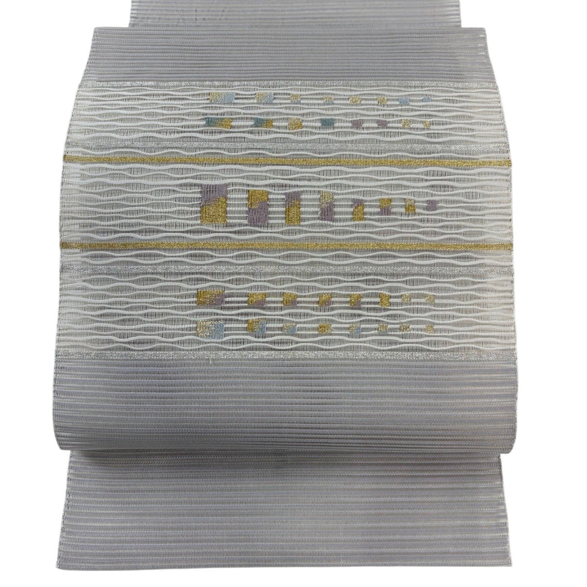 帯の格は着物とは逆で染よりも織のほうが格式が高く、名古屋帯は袋帯よりも格が低く様々な技法や生地で作成されているため組み合わせ数も多く場面によって使い分けることでセミフォーマルからカジュアルまで幅広く着用する事ができる帯です。 名古屋帯の名前の由来は名古屋の女学校の先生が考案したと言われるため名古屋帯という名前で呼ばれるようになりました。 形状はお太鼓部分までは通常の帯幅ですがそれ以降は幅が半分になっていることが多く、袋帯よりも短い作りになっているため一重太鼓でしか結ぶ事ができません。