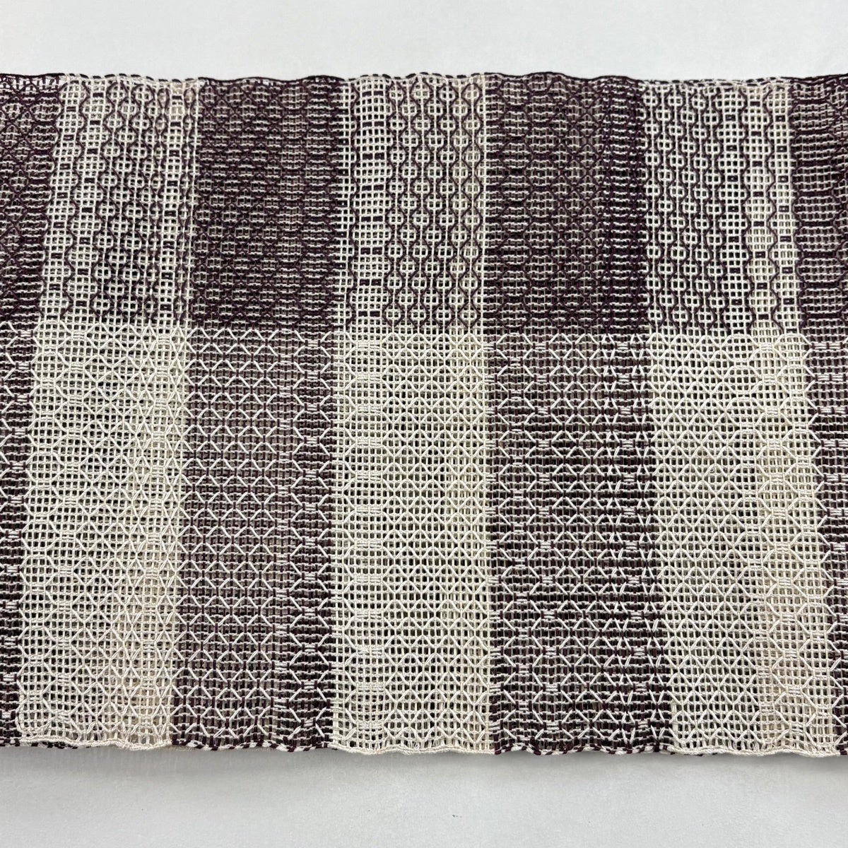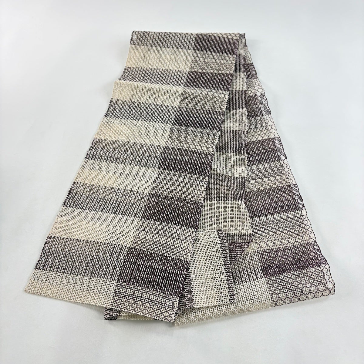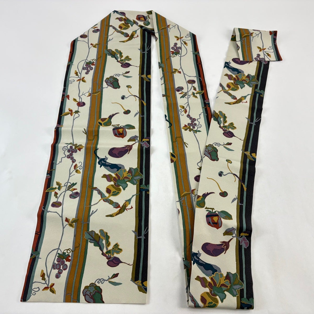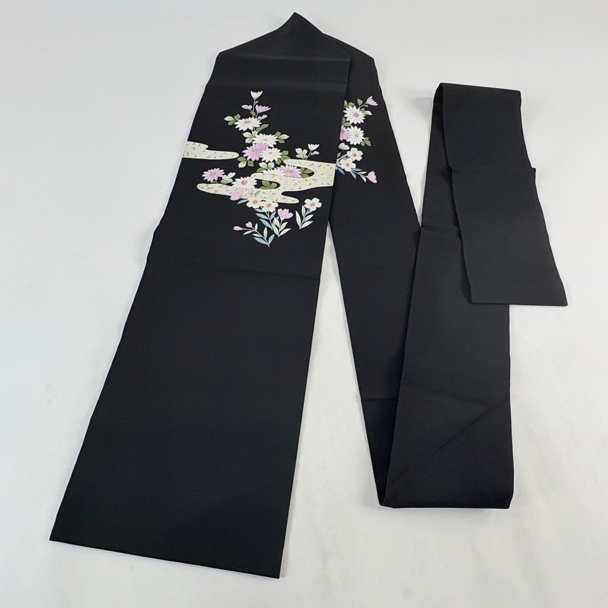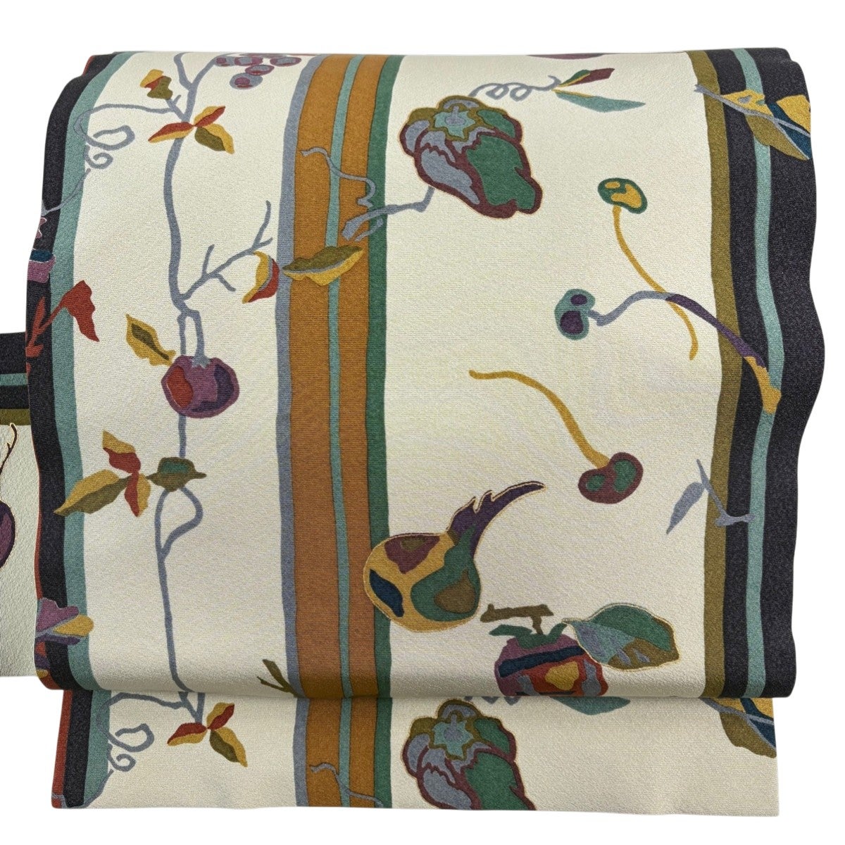帯の格は着物とは逆で染よりも織のほうが格式が高く、名古屋帯は袋帯よりも格が低く様々な技法や生地で作成されているため組み合わせ数も多く場面によって使い分けることでセミフォーマルからカジュアルまで幅広く着用する事ができる帯です。 名古屋帯の名前の由来は名古屋の女学校の先生が考案したと言われるため名古屋帯という名前で呼ばれるようになりました。 形状はお太鼓部分までは通常の帯幅ですがそれ以降は幅が半分になっていることが多く、袋帯よりも短い作りになっているため一重太鼓でしか結ぶ事ができません。