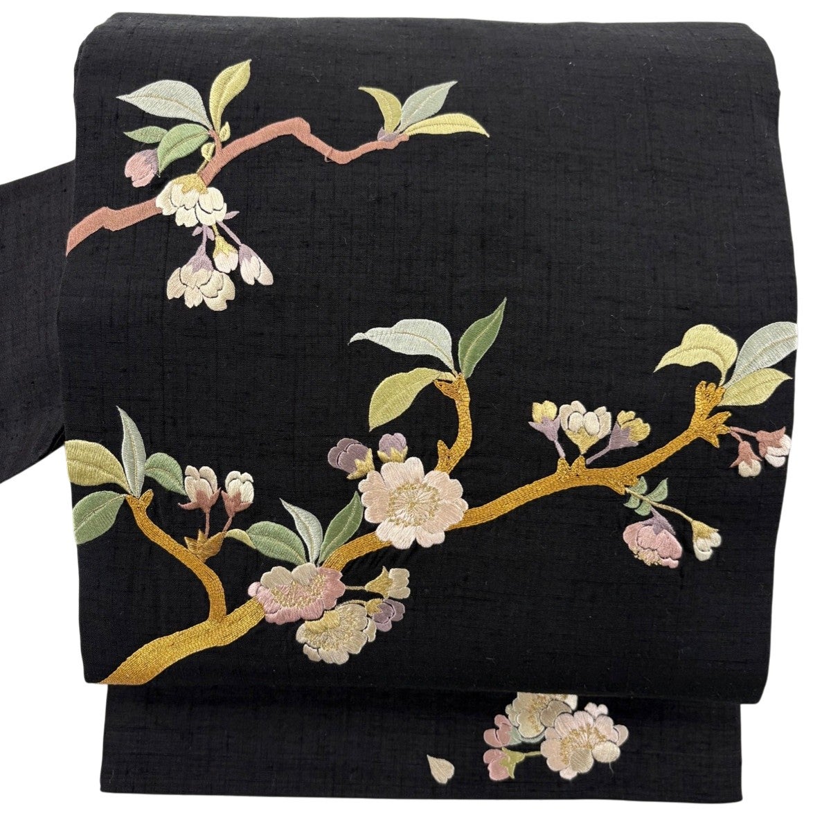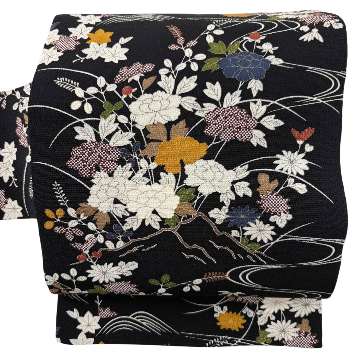 帯の格は着物とは逆で染よりも織のほうが格式が高く、名古屋帯は袋帯よりも格が低く様々な技法や生地で作成されているため組み合わせ数も多く場面によって使い分けることでセミフォーマルからカジュアルまで幅広く着用する事ができる帯です。 名古屋帯の名前の由来は名古屋の女学校の先生が考案したと言われるため名古屋帯という名前で呼ばれるようになりました。 形状はお太鼓部分までは通常の帯幅ですがそれ以降は幅が半分になっていることが多く、袋帯よりも短い作りになっているため一重太鼓でしか結ぶ事ができません。