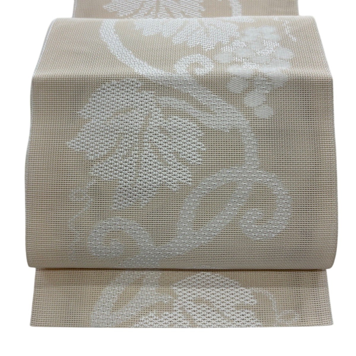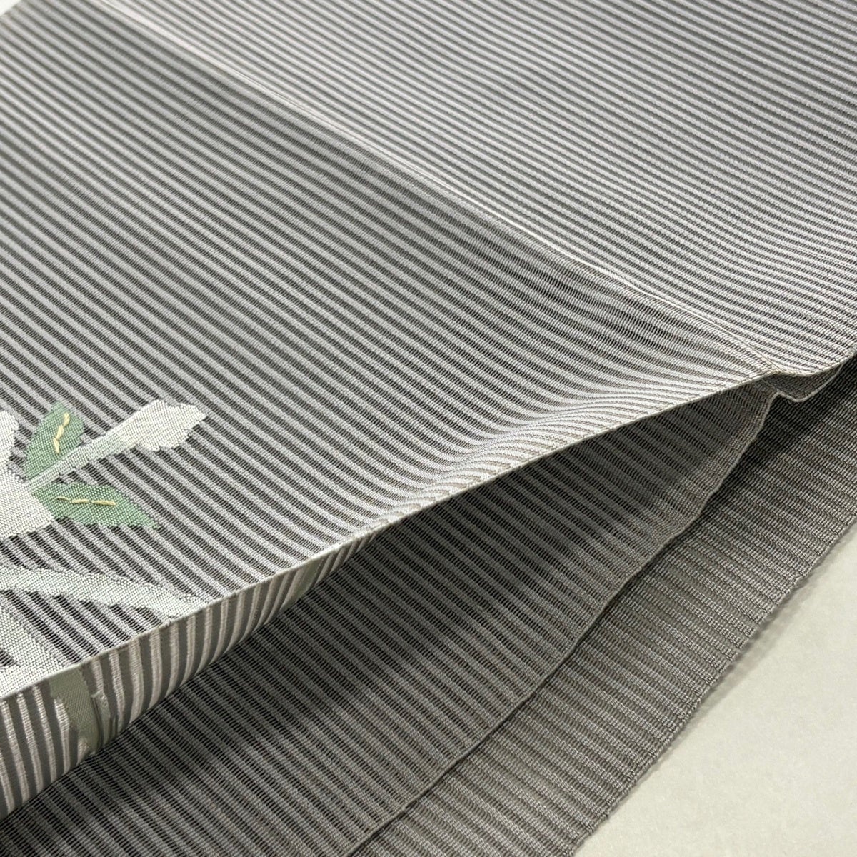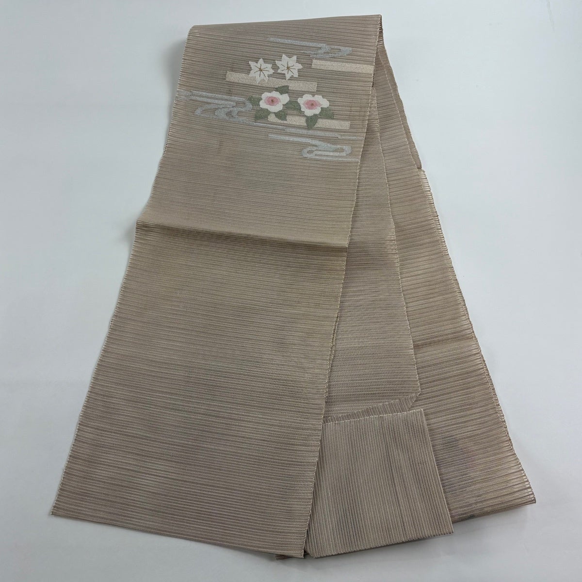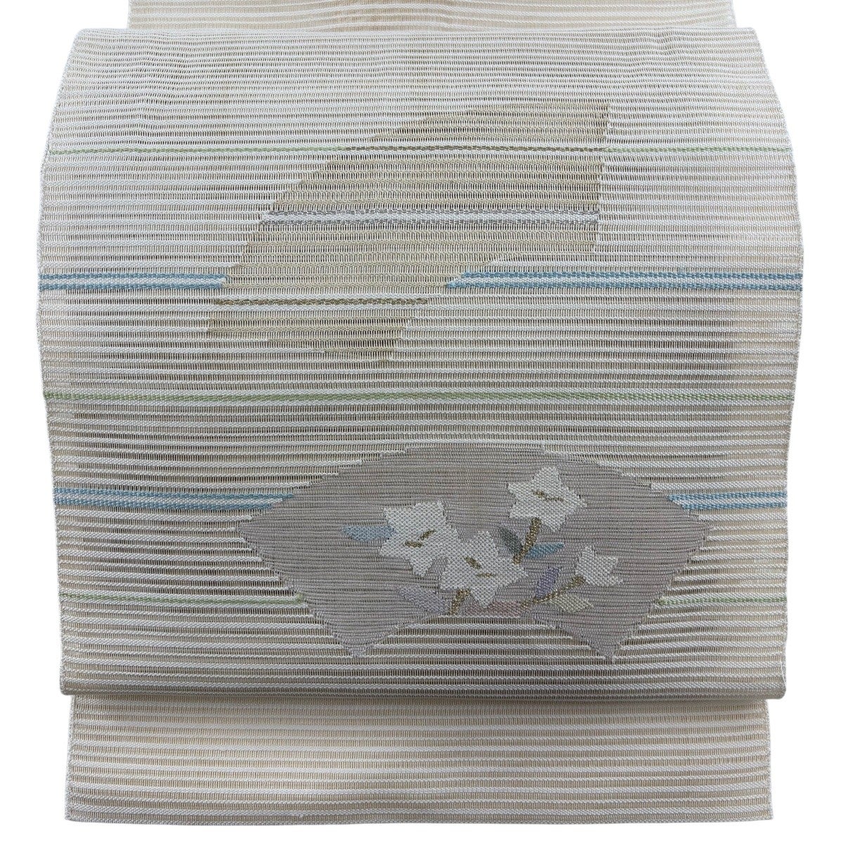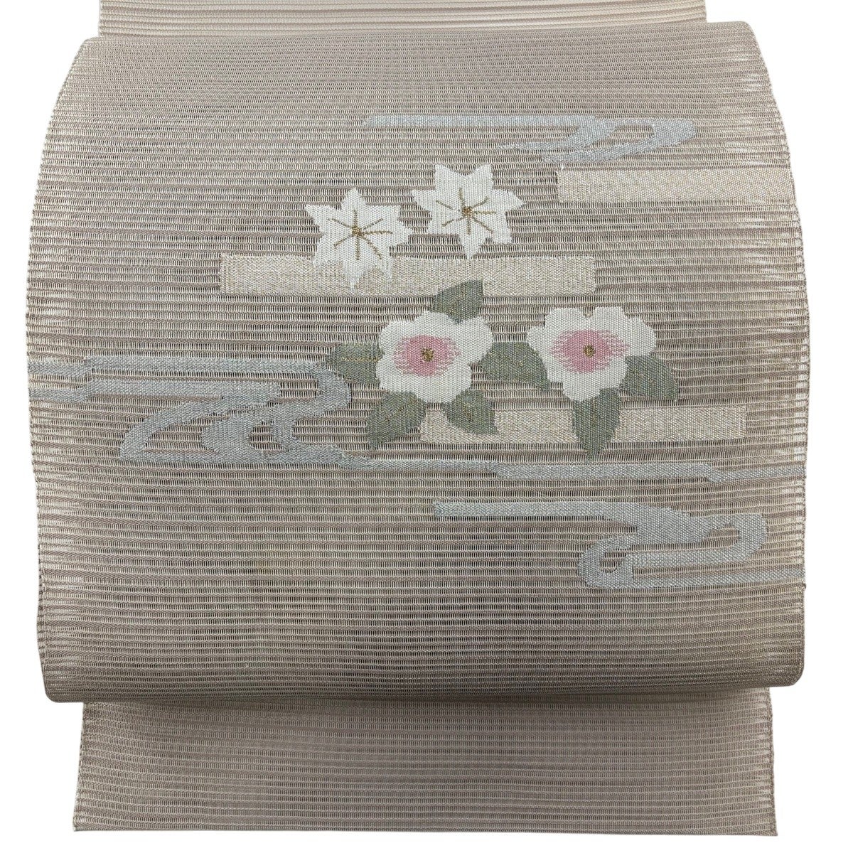 帯の格は着物とは逆で染よりも織のほうが格式が高く、名古屋帯は袋帯よりも格が低く様々な技法や生地で作成されているため組み合わせ数も多く場面によって使い分けることでセミフォーマルからカジュアルまで幅広く着用する事ができる帯です。 名古屋帯の名前の由来は名古屋の女学校の先生が考案したと言われるため名古屋帯という名前で呼ばれるようになりました。 形状はお太鼓部分までは通常の帯幅ですがそれ以降は幅が半分になっていることが多く、袋帯よりも短い作りになっているため一重太鼓でしか結ぶ事ができません。