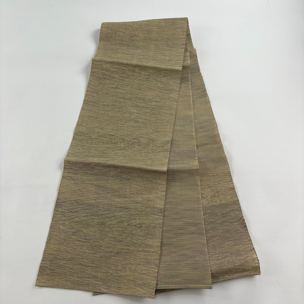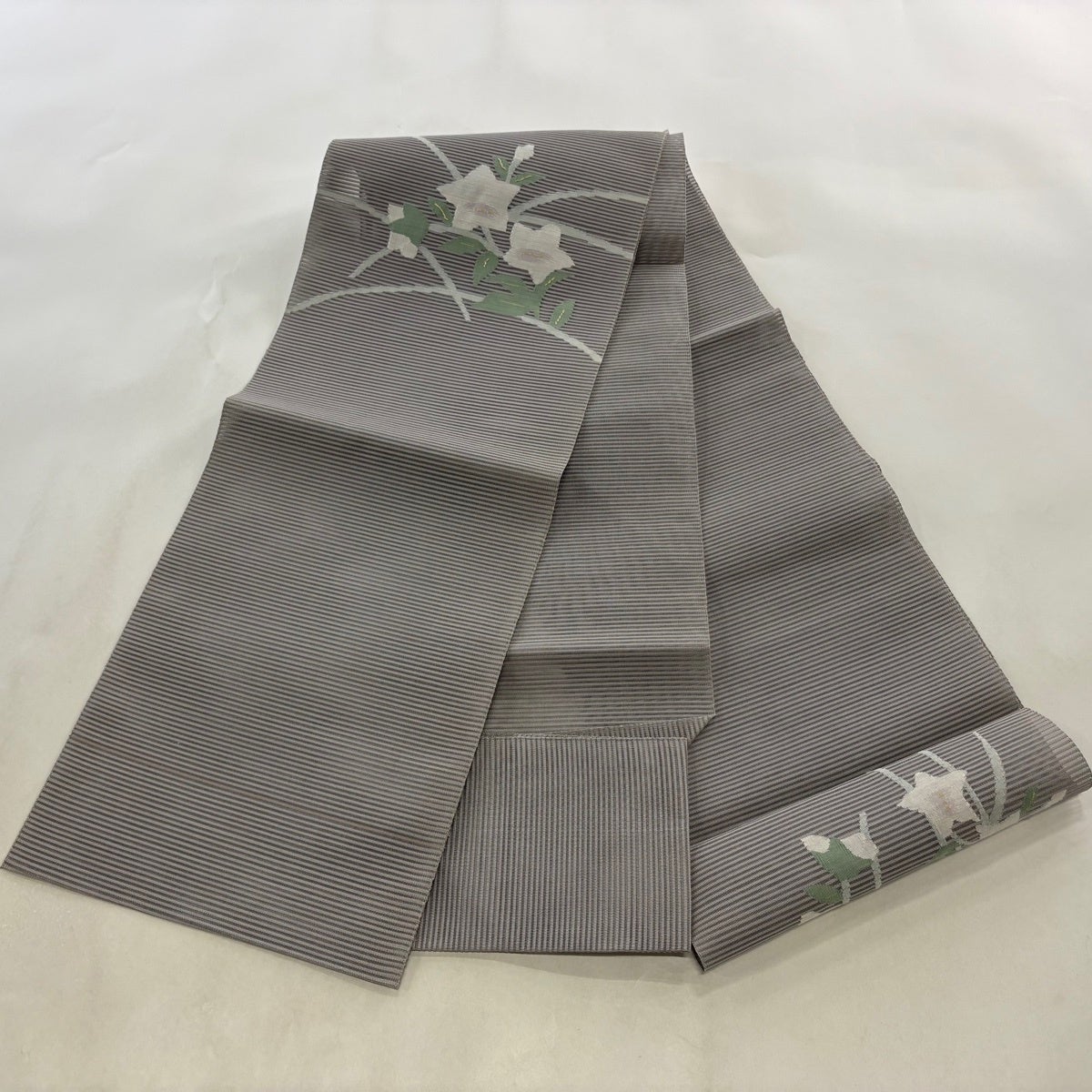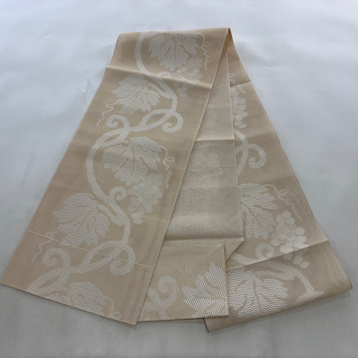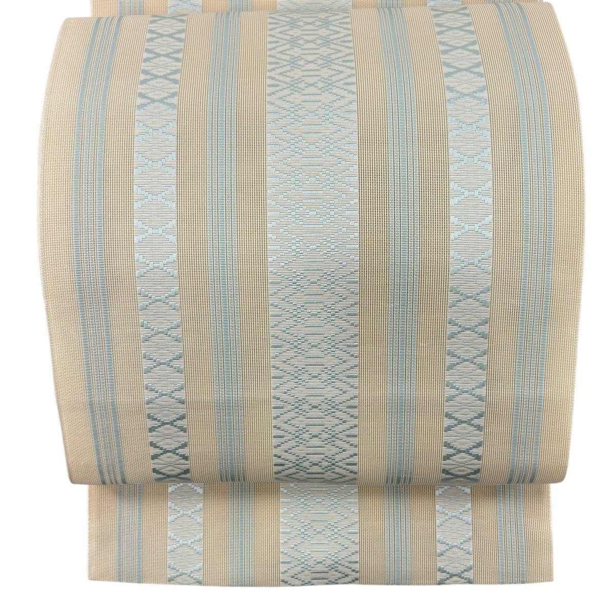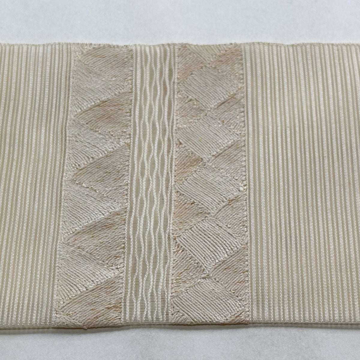 帯の格は着物とは逆で染よりも織のほうが格式が高く、名古屋帯は袋帯よりも格が低く様々な技法や生地で作成されているため組み合わせ数も多く場面によって使い分けることでセミフォーマルからカジュアルまで幅広く着用する事ができる帯です。 名古屋帯の名前の由来は名古屋の女学校の先生が考案したと言われるため名古屋帯という名前で呼ばれるようになりました。 形状はお太鼓部分までは通常の帯幅ですがそれ以降は幅が半分になっていることが多く、袋帯よりも短い作りになっているため一重太鼓でしか結ぶ事ができません。