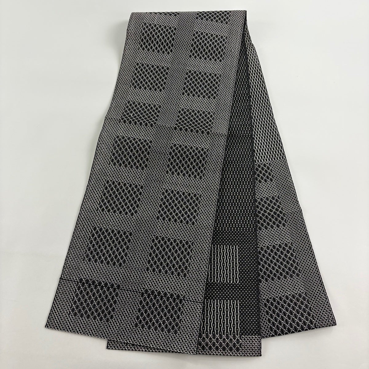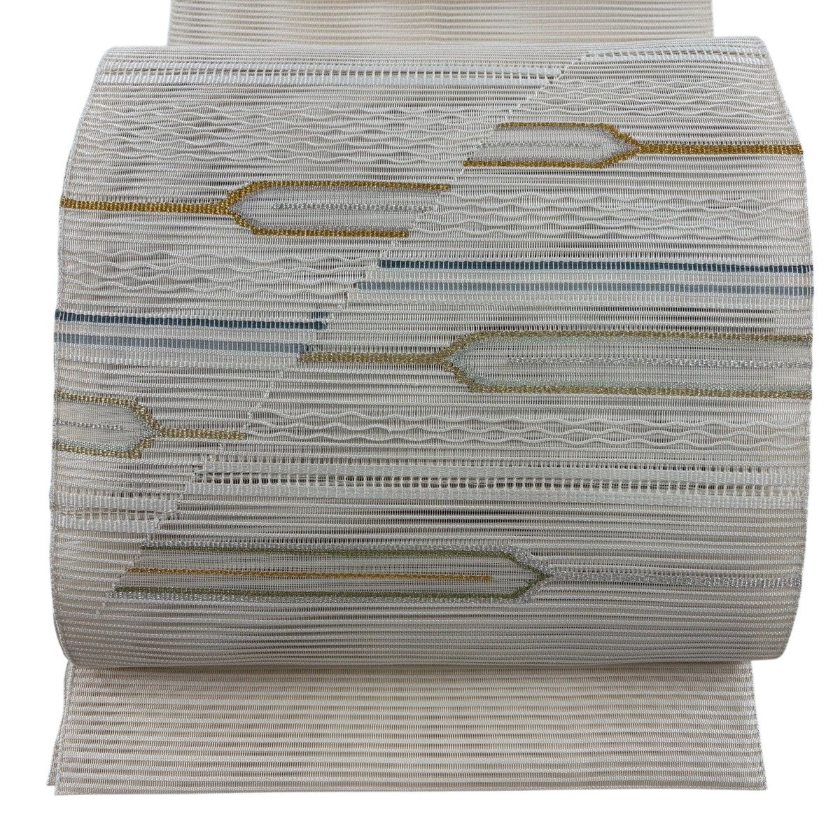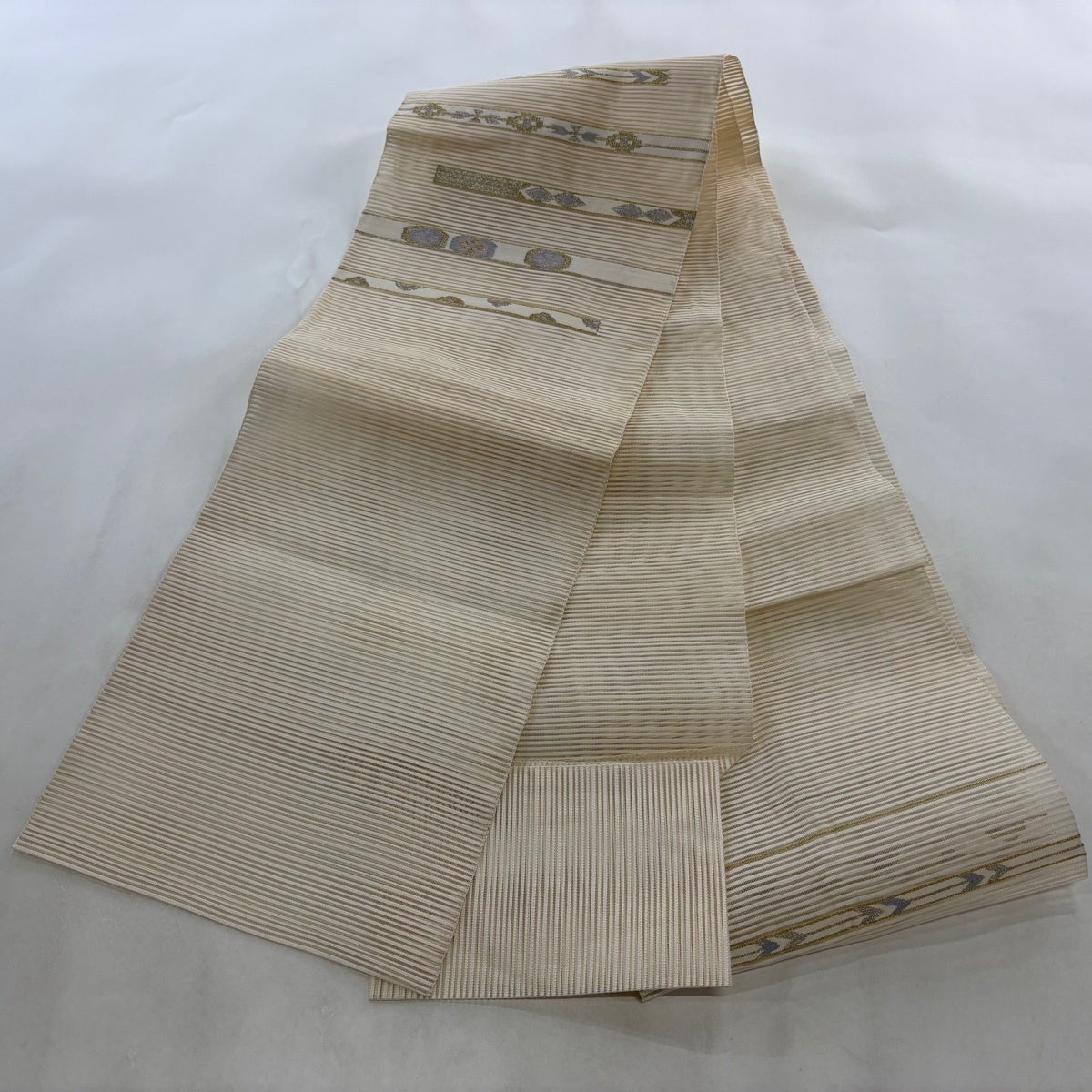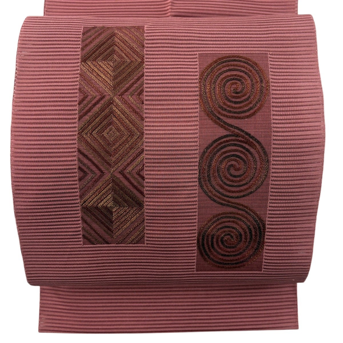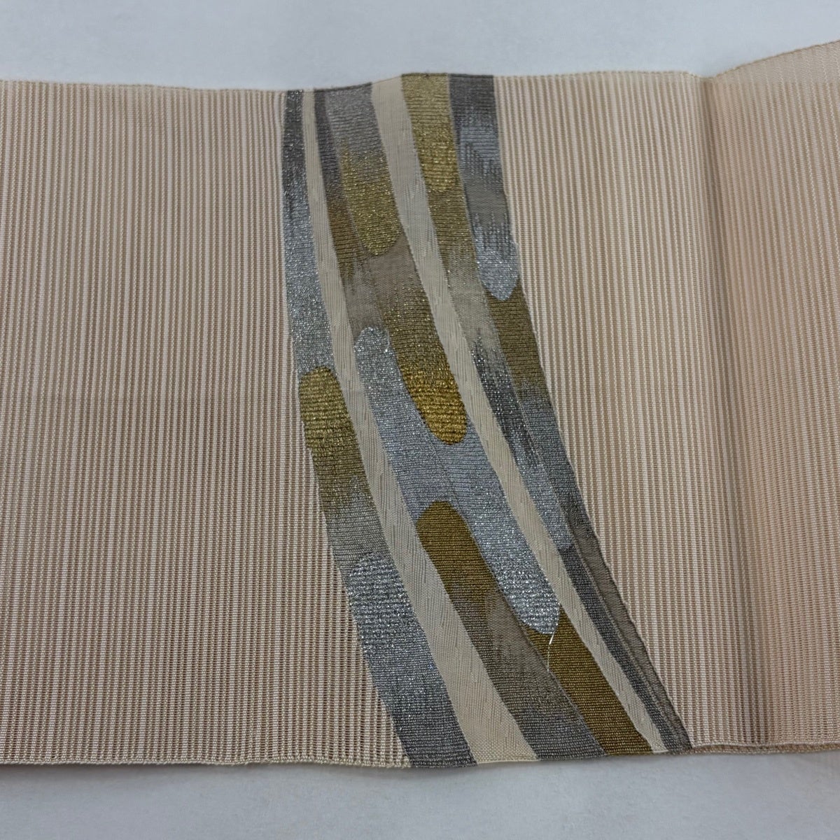 帯の格は着物とは逆で染よりも織のほうが格式が高く、名古屋帯は袋帯よりも格が低く様々な技法や生地で作成されているため組み合わせ数も多く場面によって使い分けることでセミフォーマルからカジュアルまで幅広く着用する事ができる帯です。 名古屋帯の名前の由来は名古屋の女学校の先生が考案したと言われるため名古屋帯という名前で呼ばれるようになりました。 形状はお太鼓部分までは通常の帯幅ですがそれ以降は幅が半分になっていることが多く、袋帯よりも短い作りになっているため一重太鼓でしか結ぶ事ができません。