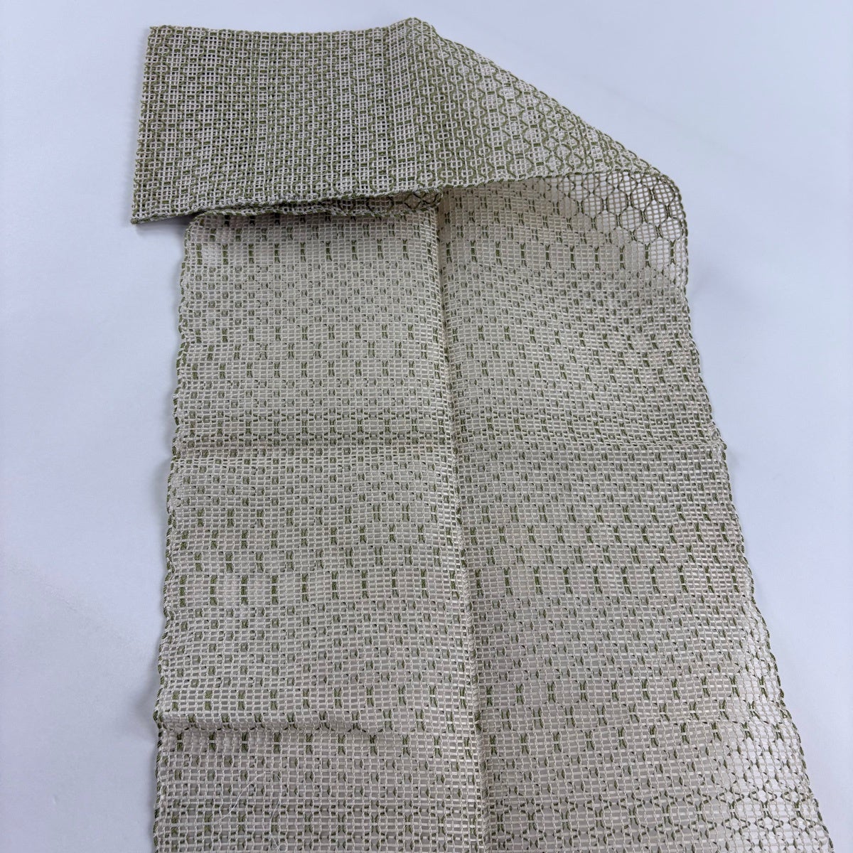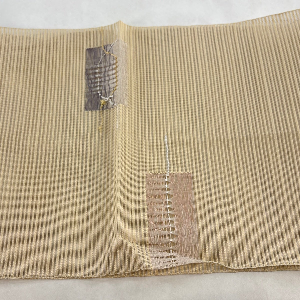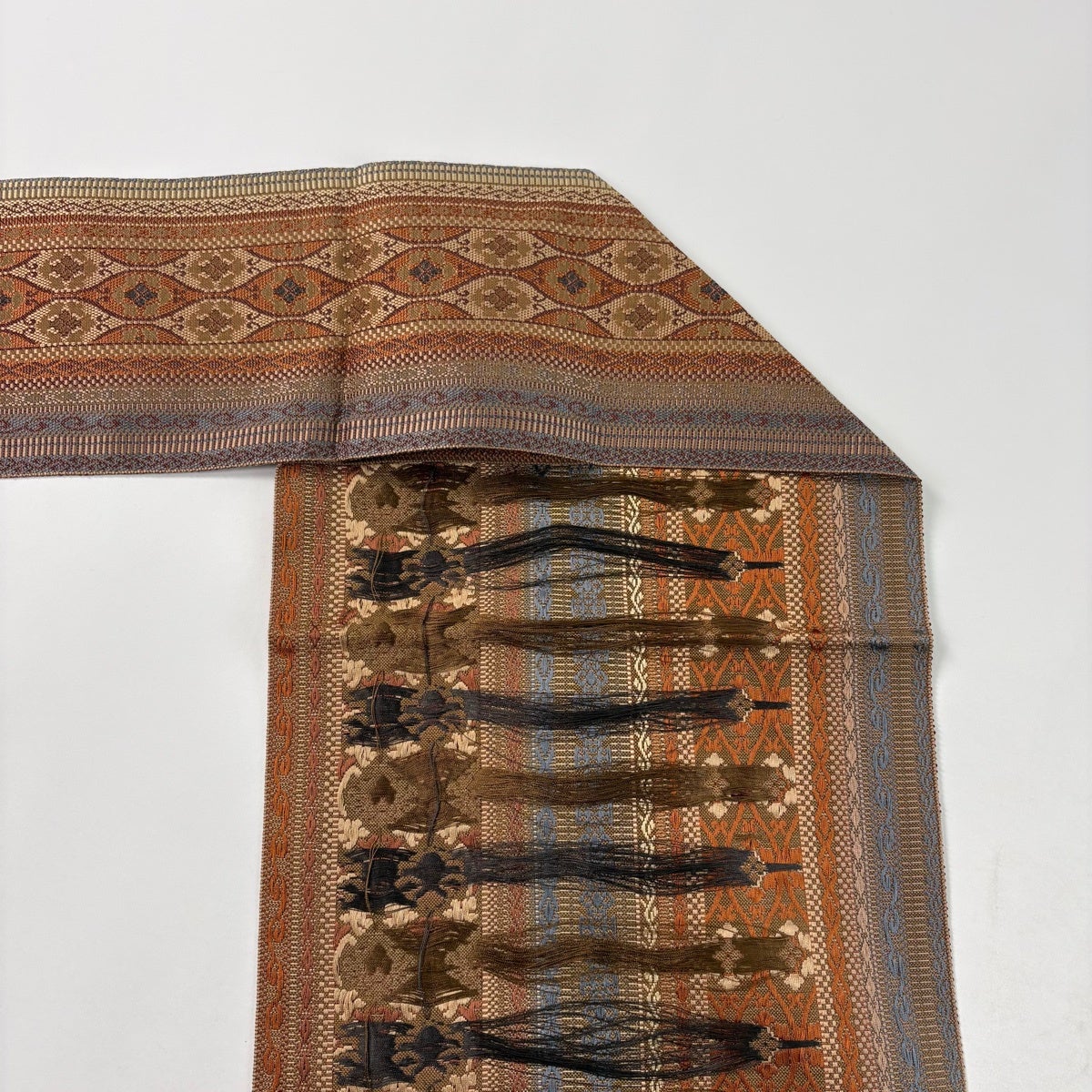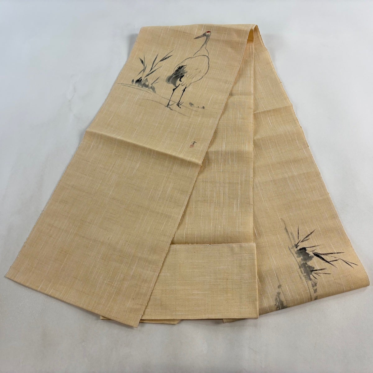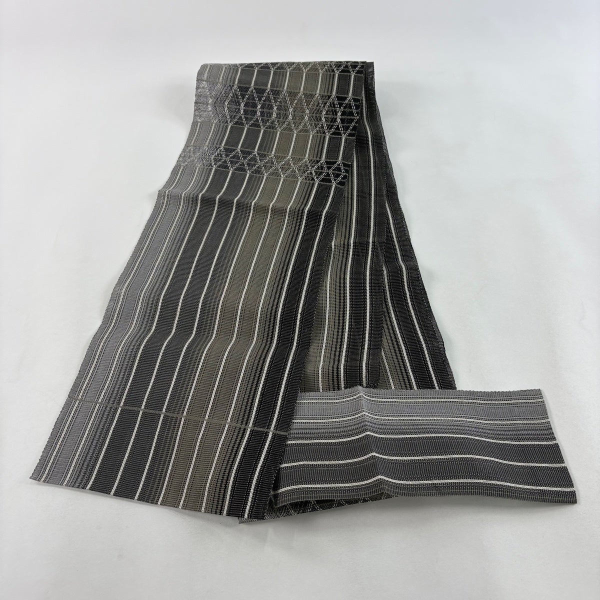 帯の格は着物とは逆で染よりも織のほうが格式が高く、名古屋帯は袋帯よりも格が低く様々な技法や生地で作成されているため組み合わせ数も多く場面によって使い分けることでセミフォーマルからカジュアルまで幅広く着用する事ができる帯です。 名古屋帯の名前の由来は名古屋の女学校の先生が考案したと言われるため名古屋帯という名前で呼ばれるようになりました。 形状はお太鼓部分までは通常の帯幅ですがそれ以降は幅が半分になっていることが多く、袋帯よりも短い作りになっているため一重太鼓でしか結ぶ事ができません。
