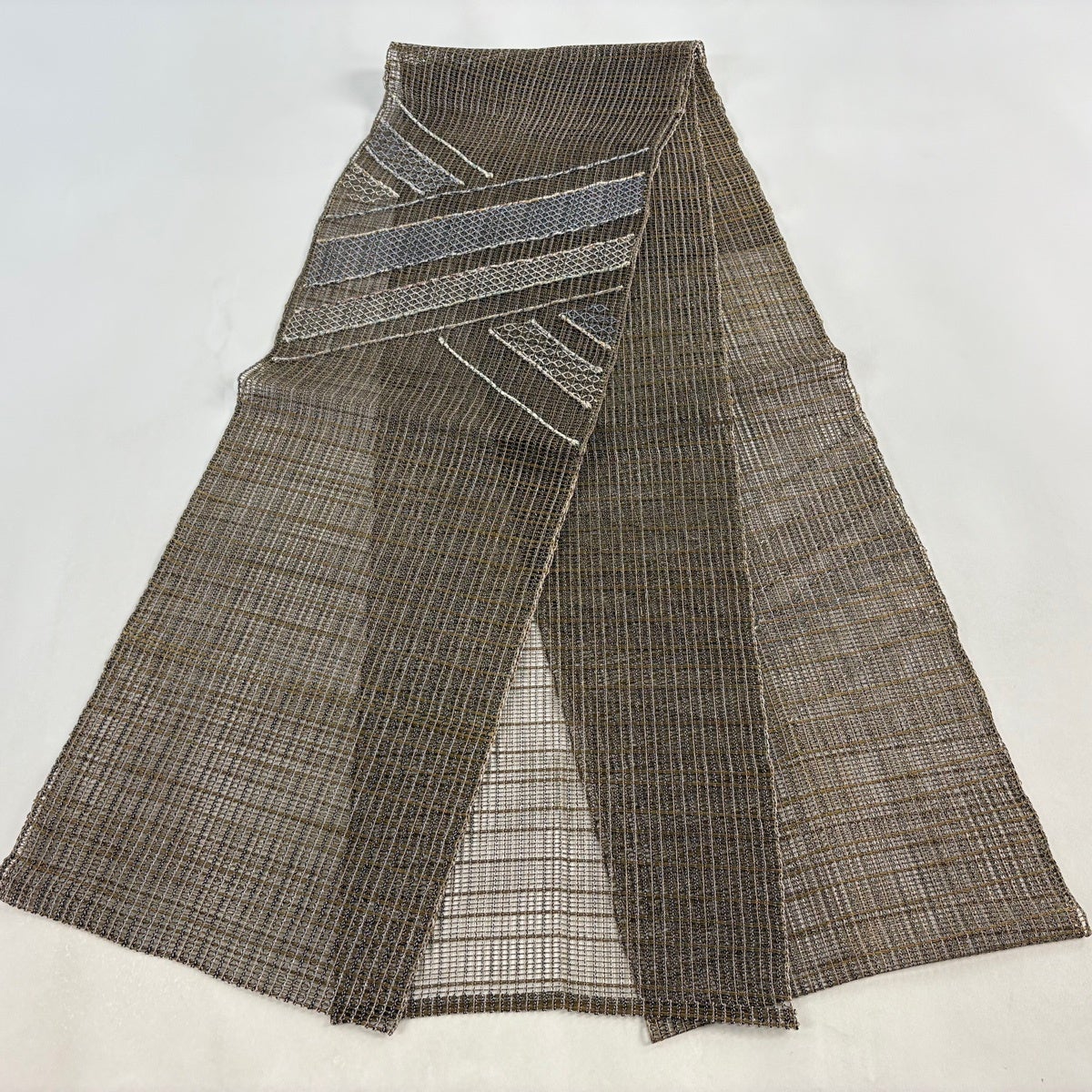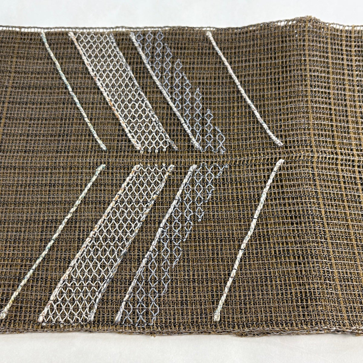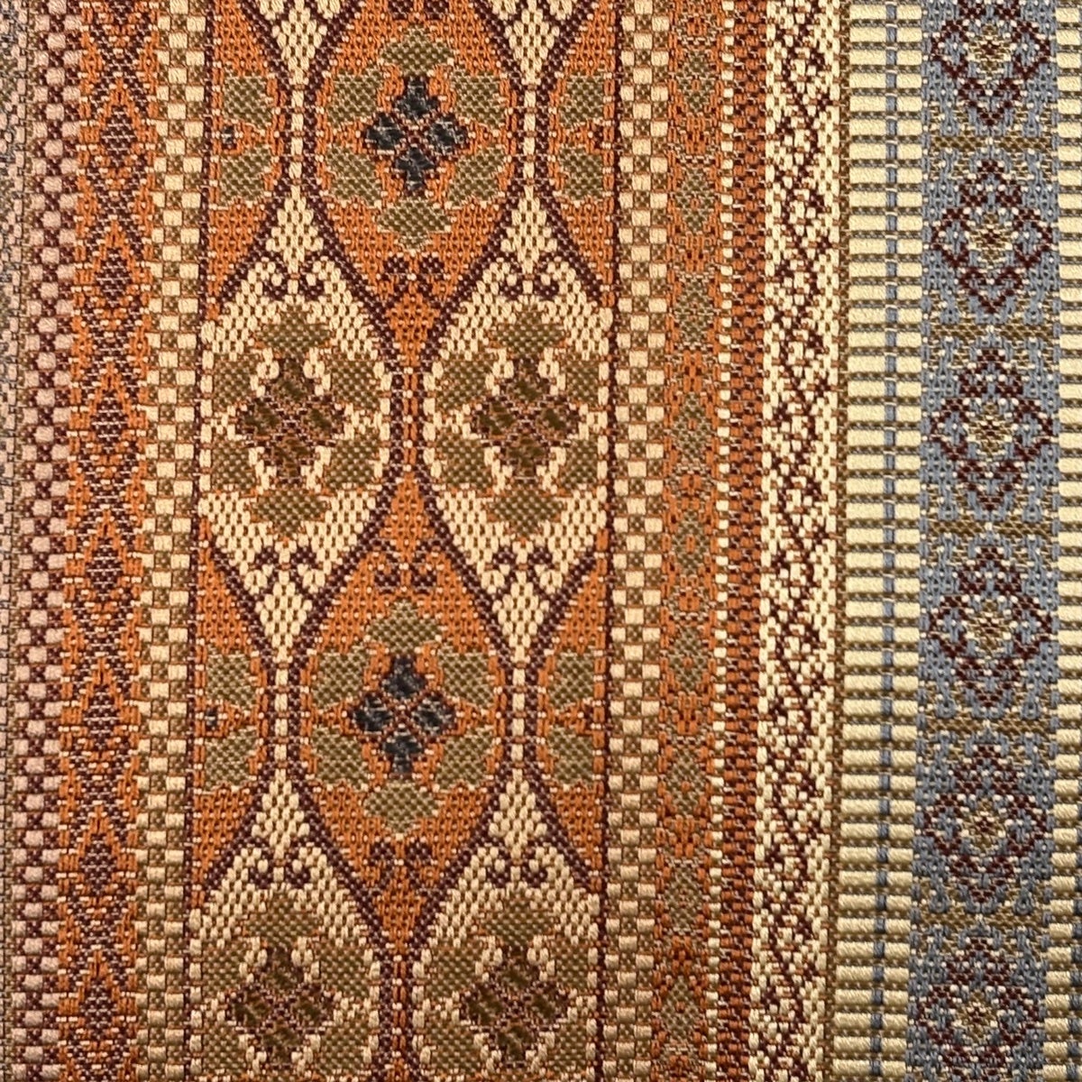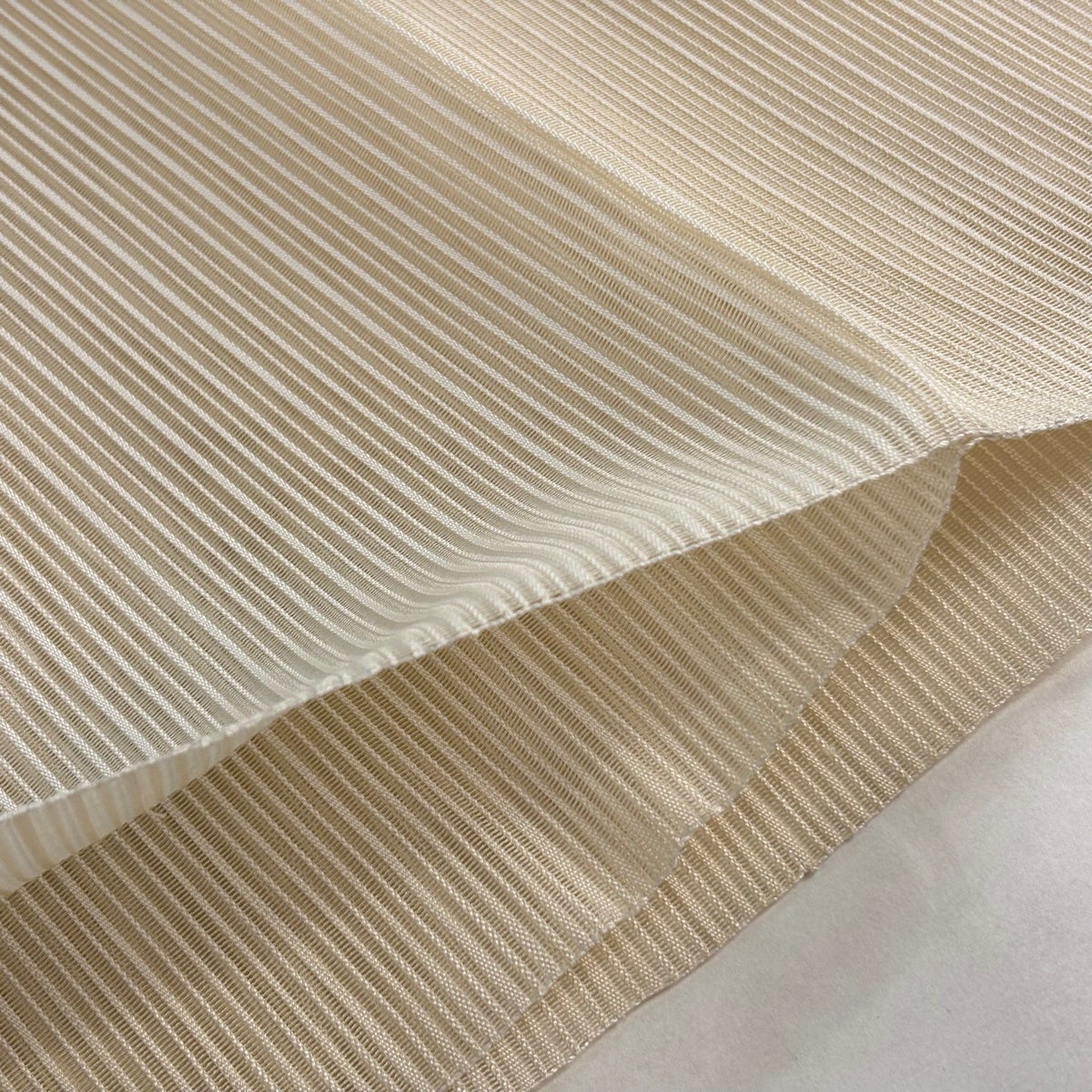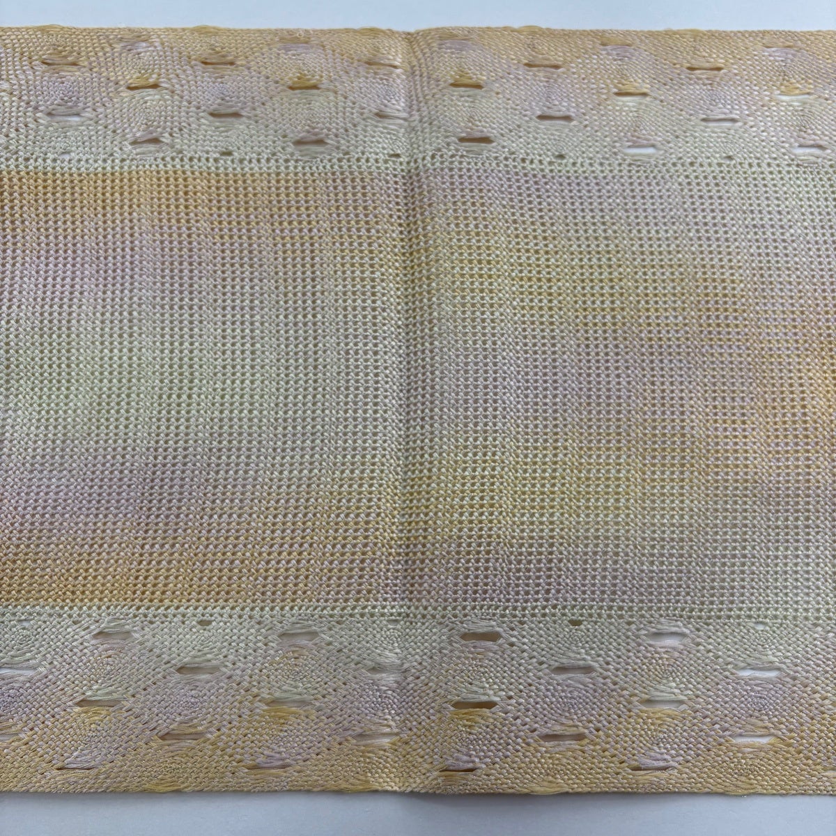 帯の格は着物とは逆で染よりも織のほうが格式が高く、名古屋帯は袋帯よりも格が低く様々な技法や生地で作成されているため組み合わせ数も多く場面によって使い分けることでセミフォーマルからカジュアルまで幅広く着用する事ができる帯です。 名古屋帯の名前の由来は名古屋の女学校の先生が考案したと言われるため名古屋帯という名前で呼ばれるようになりました。 形状はお太鼓部分までは通常の帯幅ですがそれ以降は幅が半分になっていることが多く、袋帯よりも短い作りになっているため一重太鼓でしか結ぶ事ができません。
