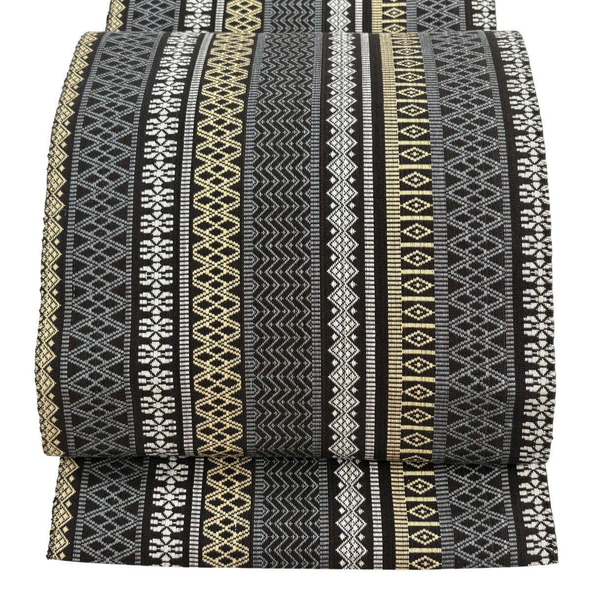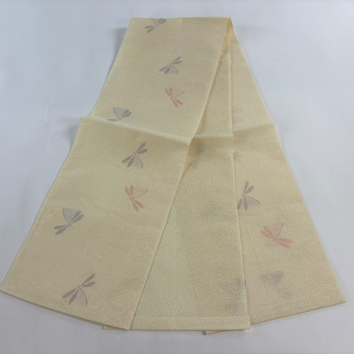 帯の格は着物とは逆で染よりも織のほうが格式が高く、名古屋帯は袋帯よりも格が低く様々な技法や生地で作成されているため組み合わせ数も多く場面によって使い分けることでセミフォーマルからカジュアルまで幅広く着用する事ができる帯です。 名古屋帯の名前の由来は名古屋の女学校の先生が考案したと言われるため名古屋帯という名前で呼ばれるようになりました。 形状はお太鼓部分までは通常の帯幅ですがそれ以降は幅が半分になっていることが多く、袋帯よりも短い作りになっているため一重太鼓でしか結ぶ事ができません。