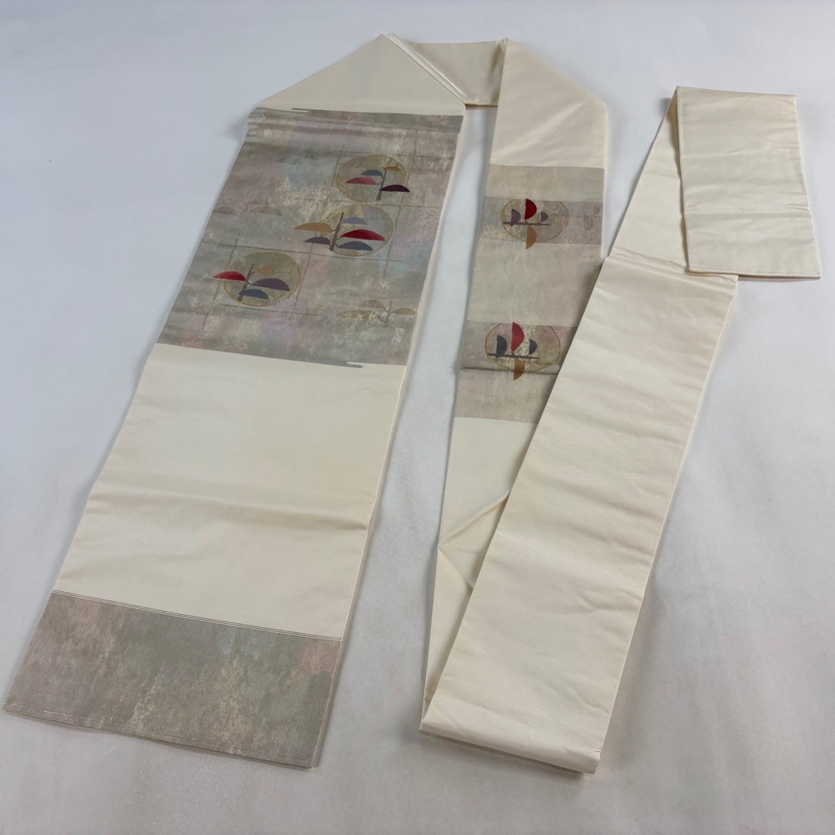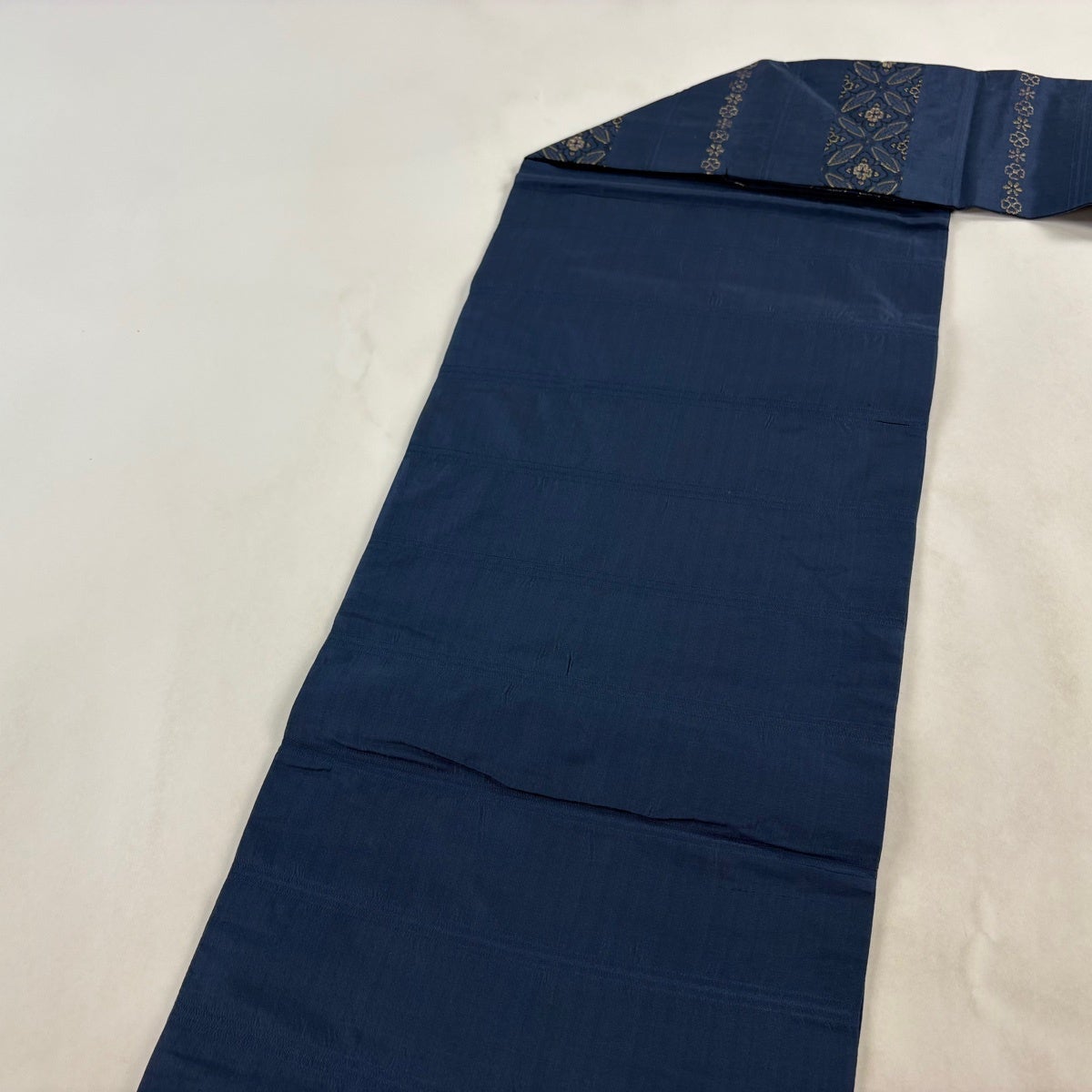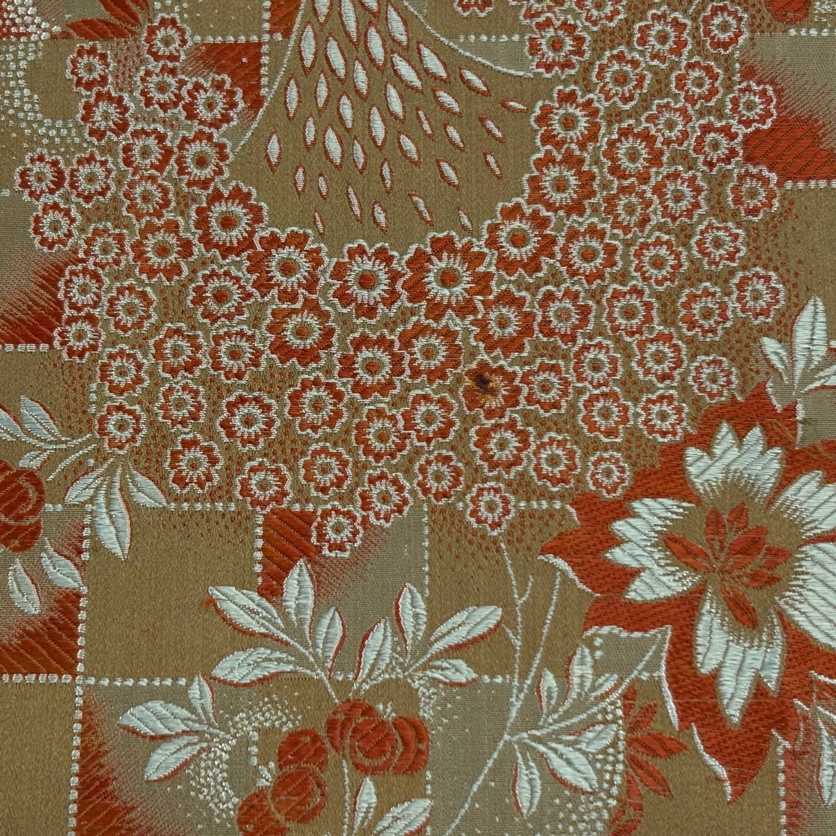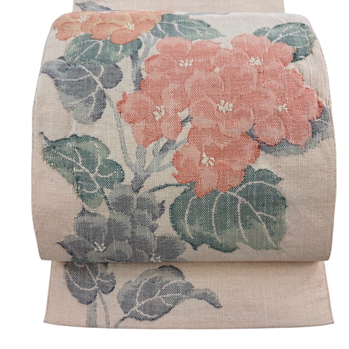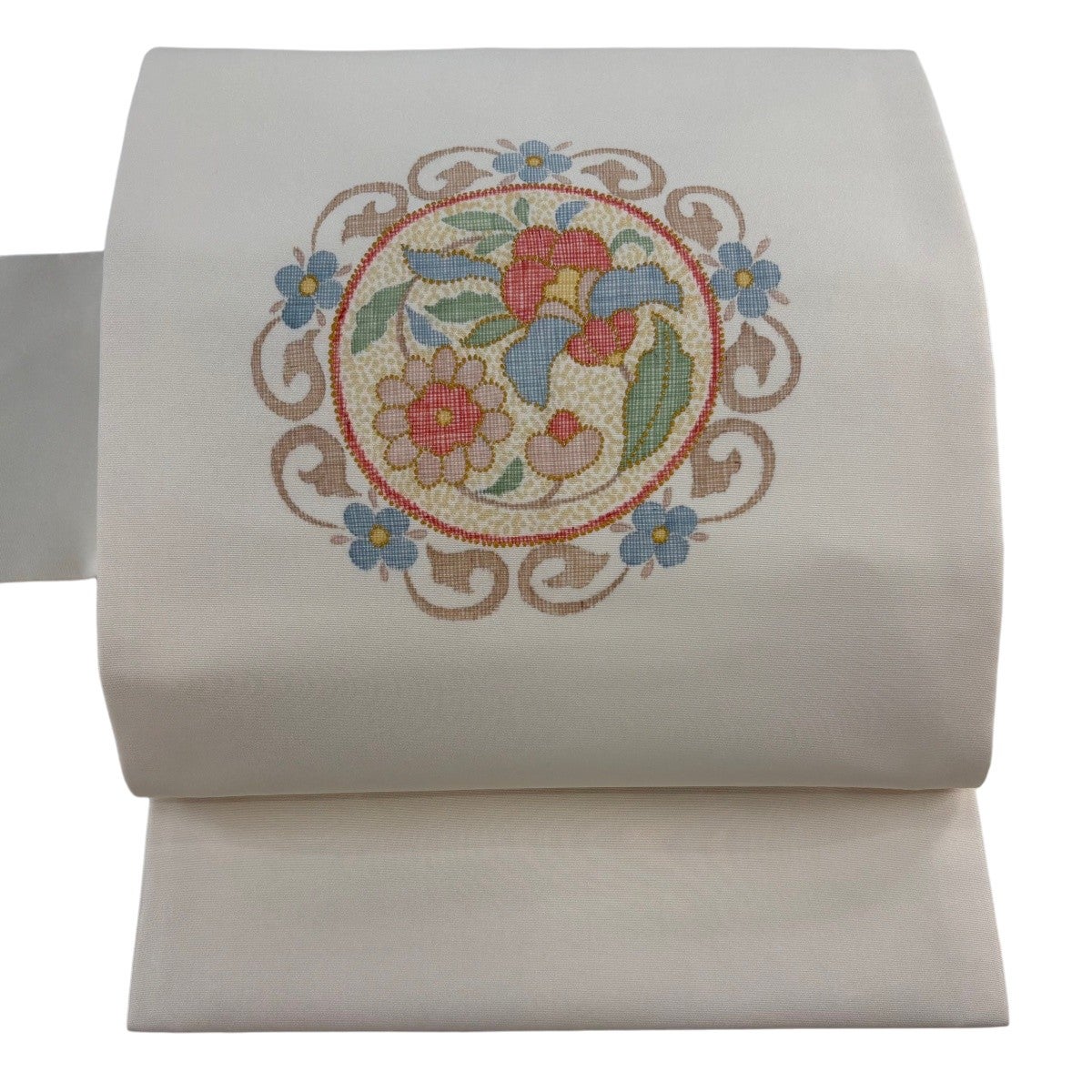 帯の格は着物とは逆で染よりも織のほうが格式が高く、名古屋帯は袋帯よりも格が低く様々な技法や生地で作成されているため組み合わせ数も多く場面によって使い分けることでセミフォーマルからカジュアルまで幅広く着用する事ができる帯です。 名古屋帯の名前の由来は名古屋の女学校の先生が考案したと言われるため名古屋帯という名前で呼ばれるようになりました。 形状はお太鼓部分までは通常の帯幅ですがそれ以降は幅が半分になっていることが多く、袋帯よりも短い作りになっているため一重太鼓でしか結ぶ事ができません。