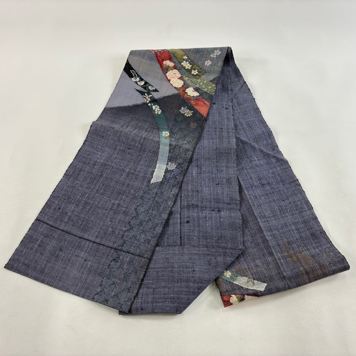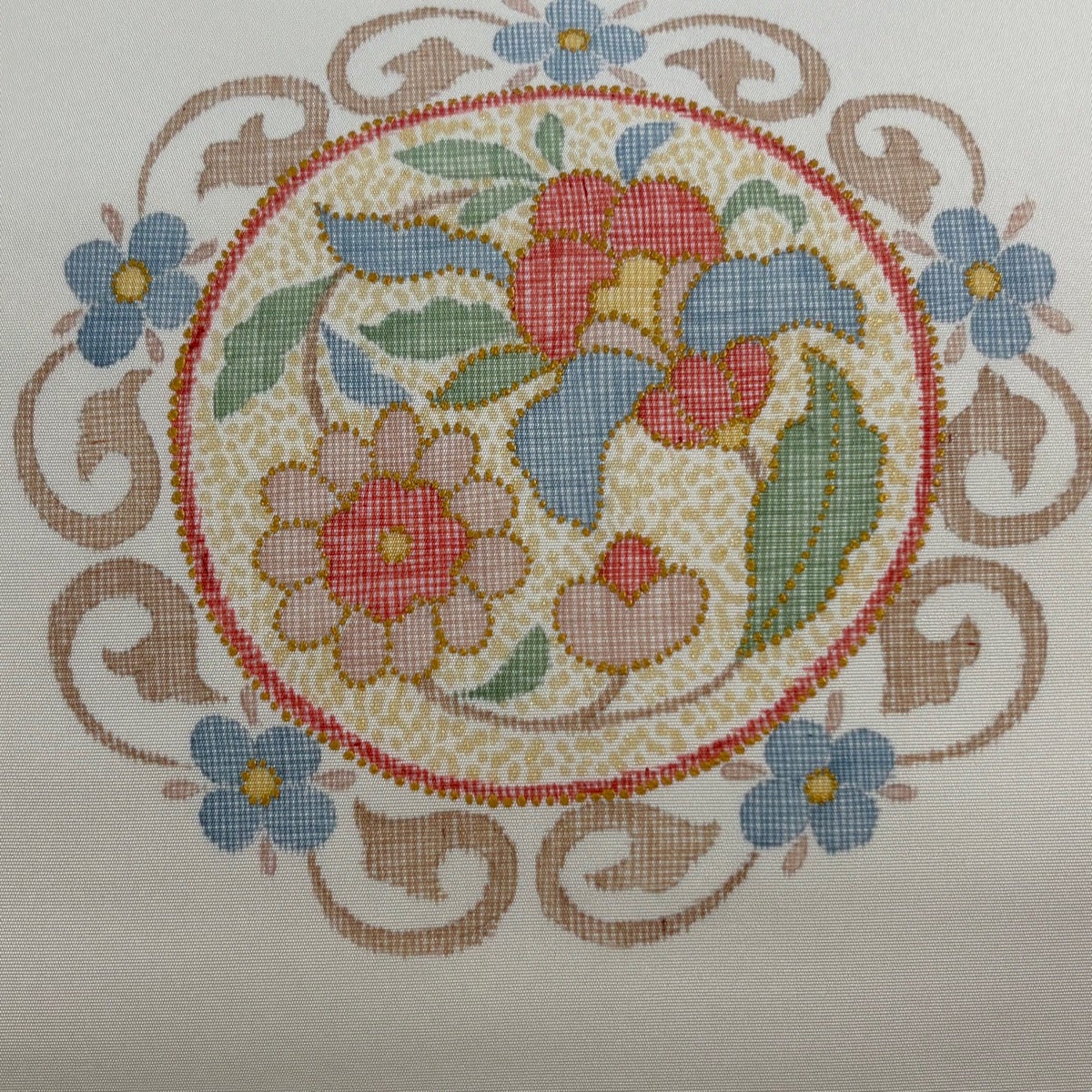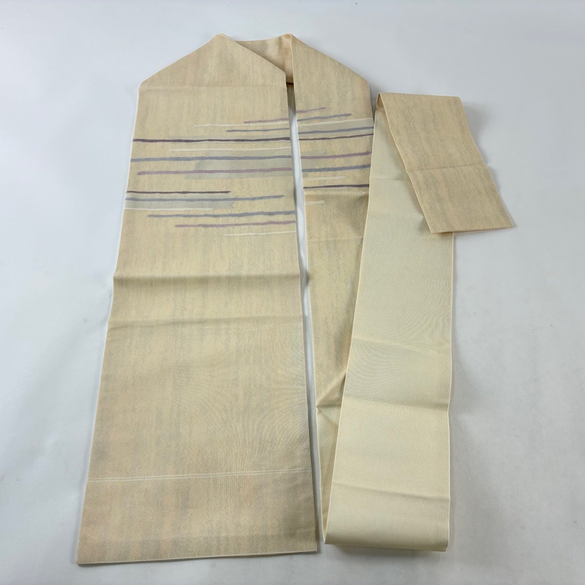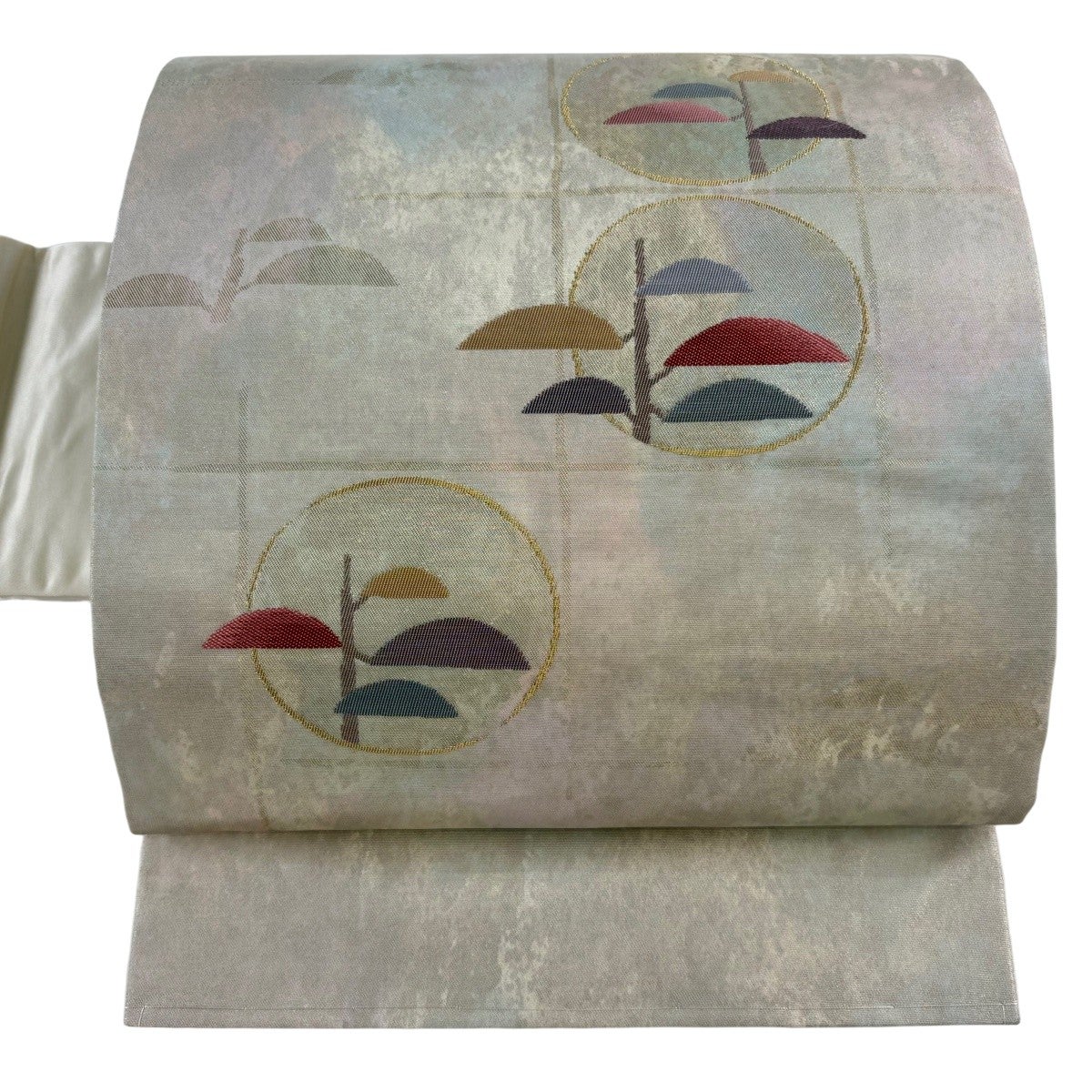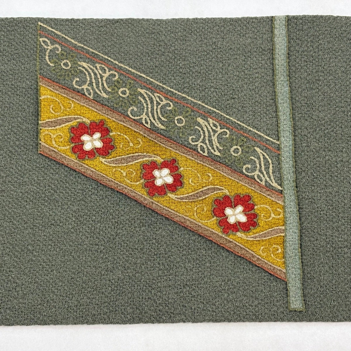 帯の格は着物とは逆で染よりも織のほうが格式が高く、名古屋帯は袋帯よりも格が低く様々な技法や生地で作成されているため組み合わせ数も多く場面によって使い分けることでセミフォーマルからカジュアルまで幅広く着用する事ができる帯です。 名古屋帯の名前の由来は名古屋の女学校の先生が考案したと言われるため名古屋帯という名前で呼ばれるようになりました。 形状はお太鼓部分までは通常の帯幅ですがそれ以降は幅が半分になっていることが多く、袋帯よりも短い作りになっているため一重太鼓でしか結ぶ事ができません。