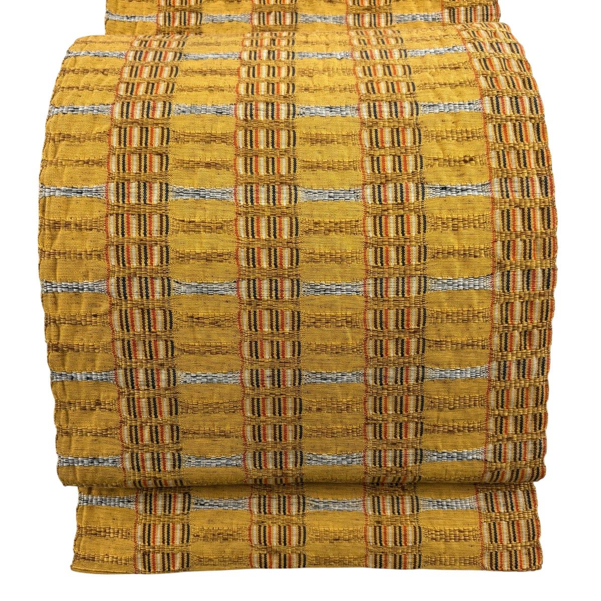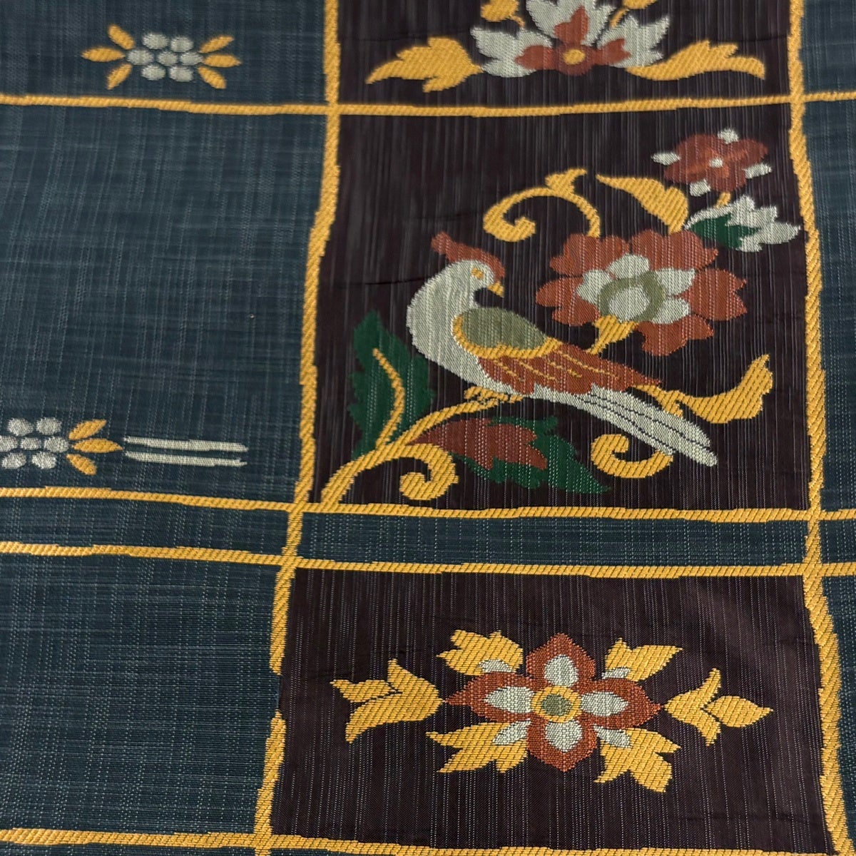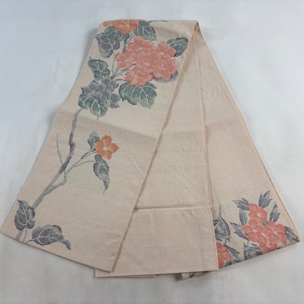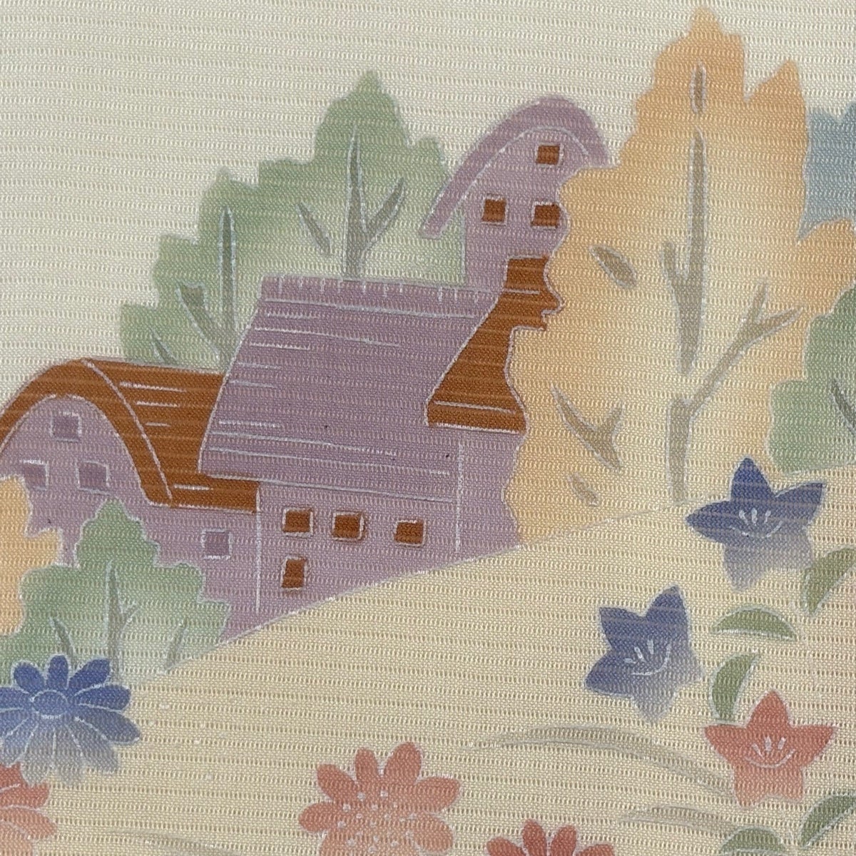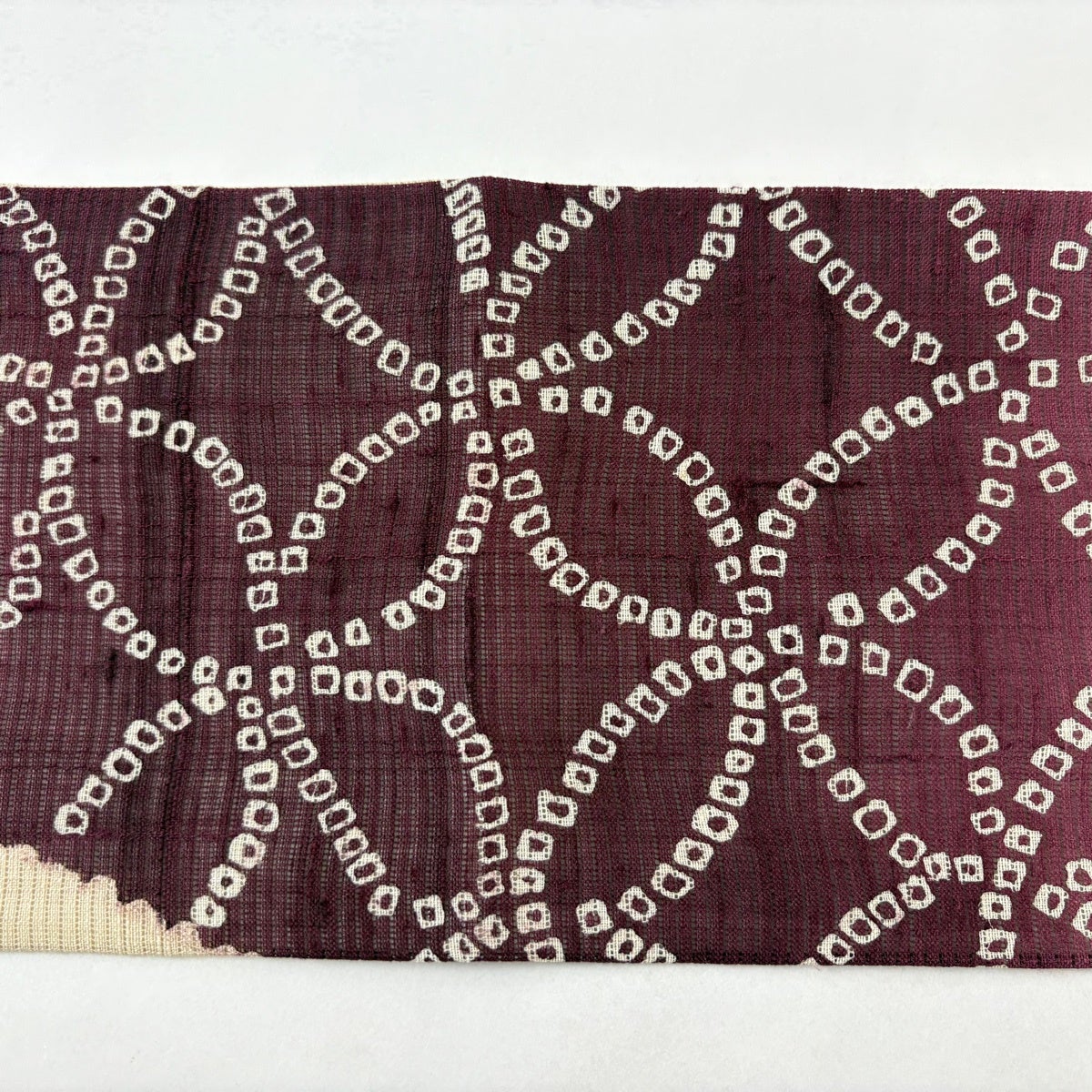 帯の格は着物とは逆で染よりも織のほうが格式が高く、名古屋帯は袋帯よりも格が低く様々な技法や生地で作成されているため組み合わせ数も多く場面によって使い分けることでセミフォーマルからカジュアルまで幅広く着用する事ができる帯です。 名古屋帯の名前の由来は名古屋の女学校の先生が考案したと言われるため名古屋帯という名前で呼ばれるようになりました。 形状はお太鼓部分までは通常の帯幅ですがそれ以降は幅が半分になっていることが多く、袋帯よりも短い作りになっているため一重太鼓でしか結ぶ事ができません。
