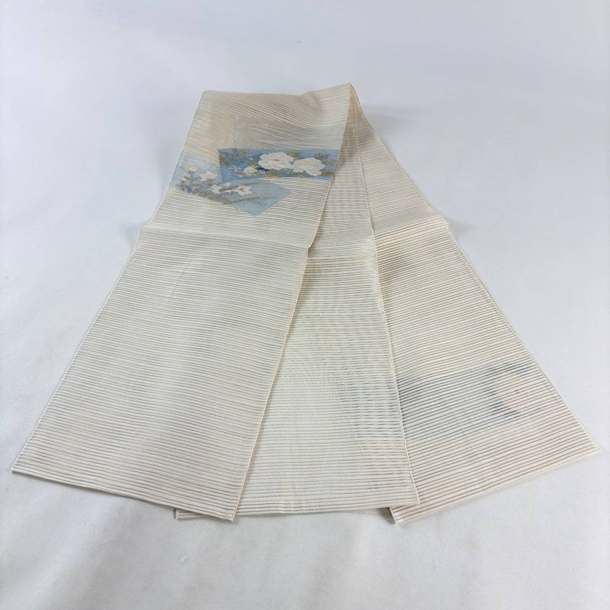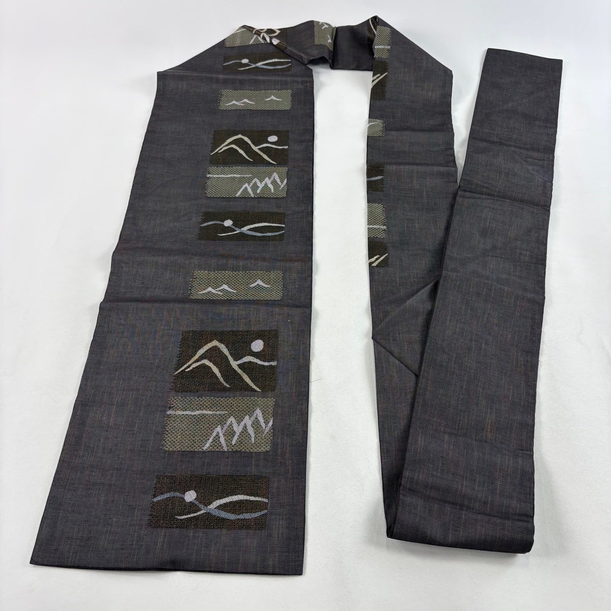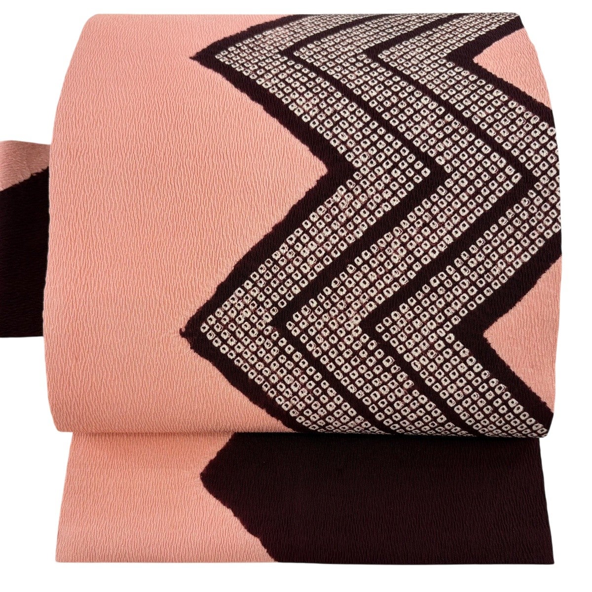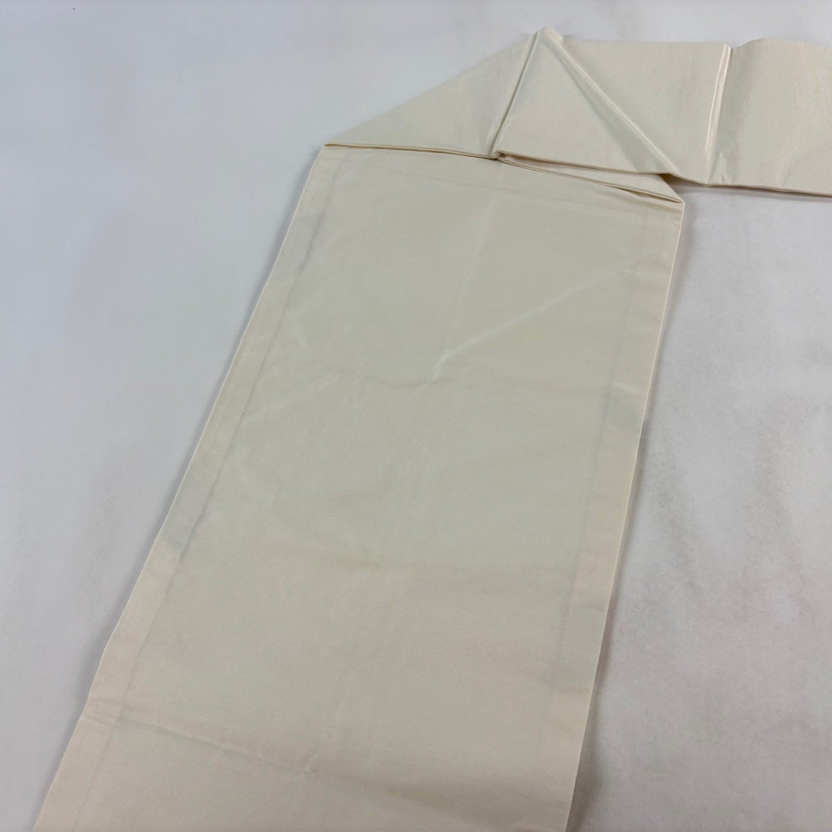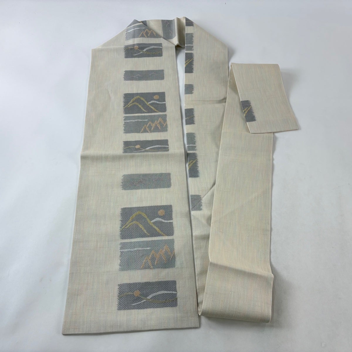 帯の格は着物とは逆で染よりも織のほうが格式が高く、名古屋帯は袋帯よりも格が低く様々な技法や生地で作成されているため組み合わせ数も多く場面によって使い分けることでセミフォーマルからカジュアルまで幅広く着用する事ができる帯です。 名古屋帯の名前の由来は名古屋の女学校の先生が考案したと言われるため名古屋帯という名前で呼ばれるようになりました。 形状はお太鼓部分までは通常の帯幅ですがそれ以降は幅が半分になっていることが多く、袋帯よりも短い作りになっているため一重太鼓でしか結ぶ事ができません。