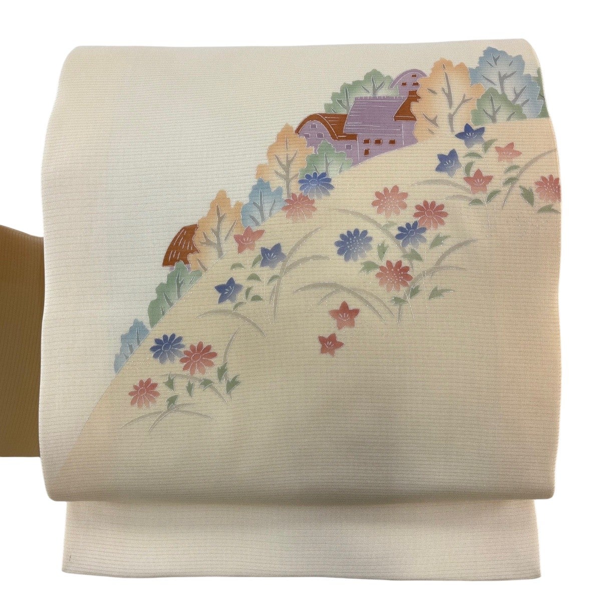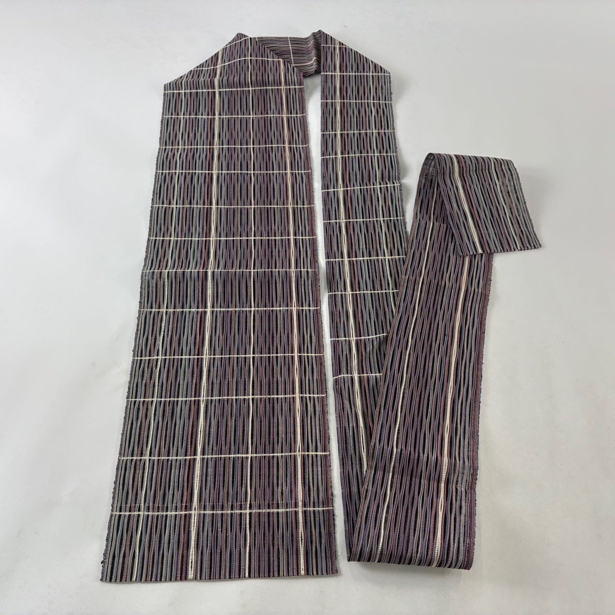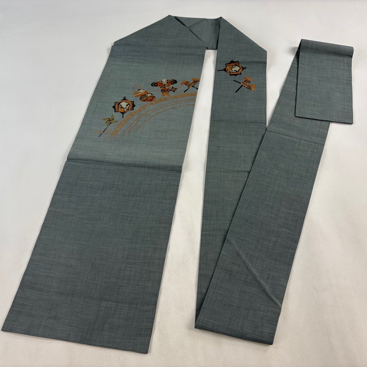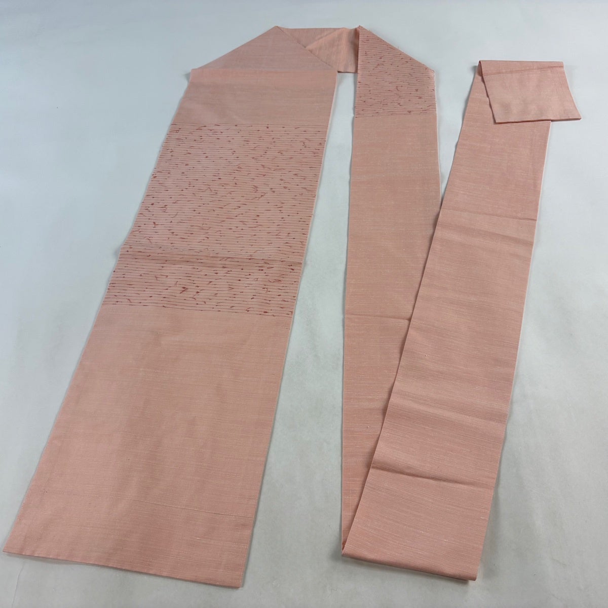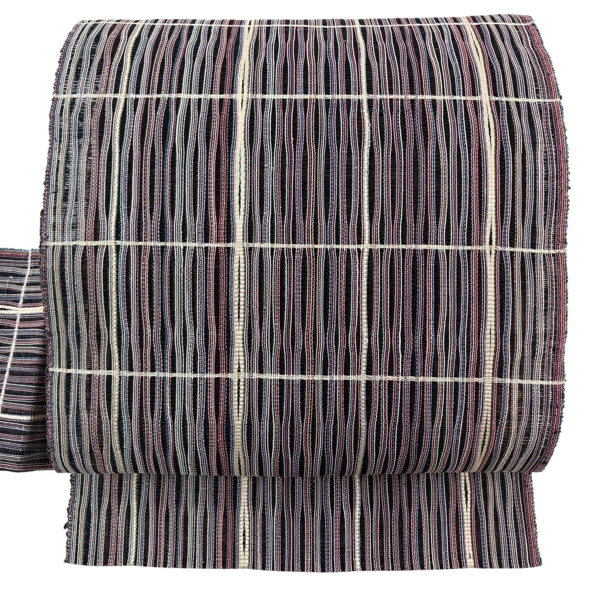 帯の格は着物とは逆で染よりも織のほうが格式が高く、名古屋帯は袋帯よりも格が低く様々な技法や生地で作成されているため組み合わせ数も多く場面によって使い分けることでセミフォーマルからカジュアルまで幅広く着用する事ができる帯です。 名古屋帯の名前の由来は名古屋の女学校の先生が考案したと言われるため名古屋帯という名前で呼ばれるようになりました。 形状はお太鼓部分までは通常の帯幅ですがそれ以降は幅が半分になっていることが多く、袋帯よりも短い作りになっているため一重太鼓でしか結ぶ事ができません。