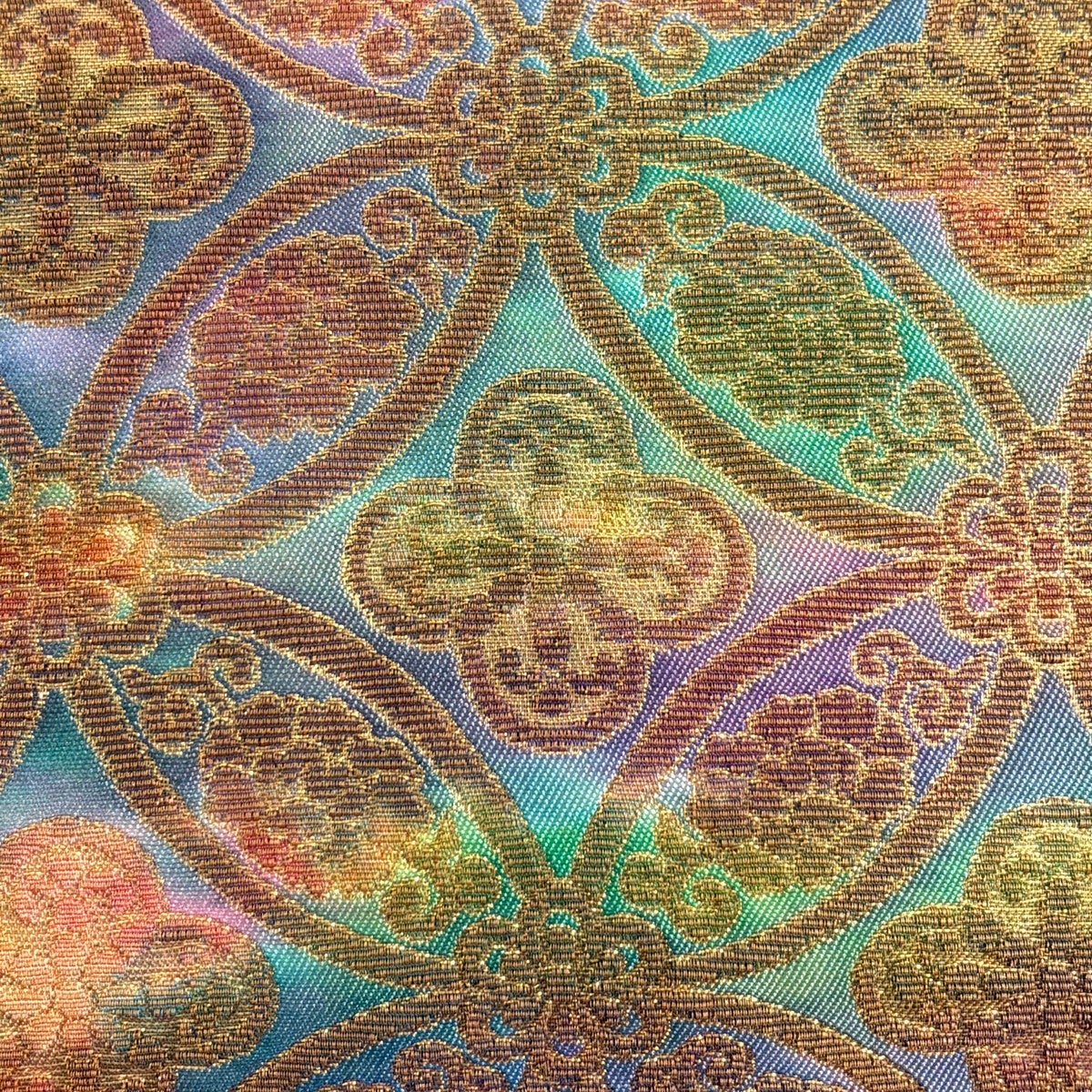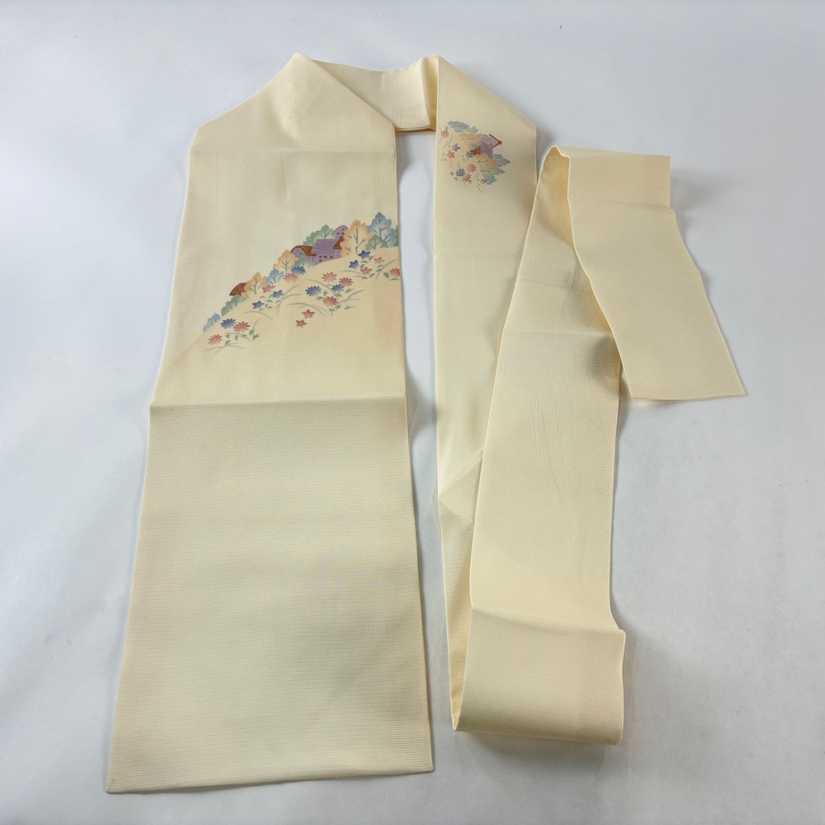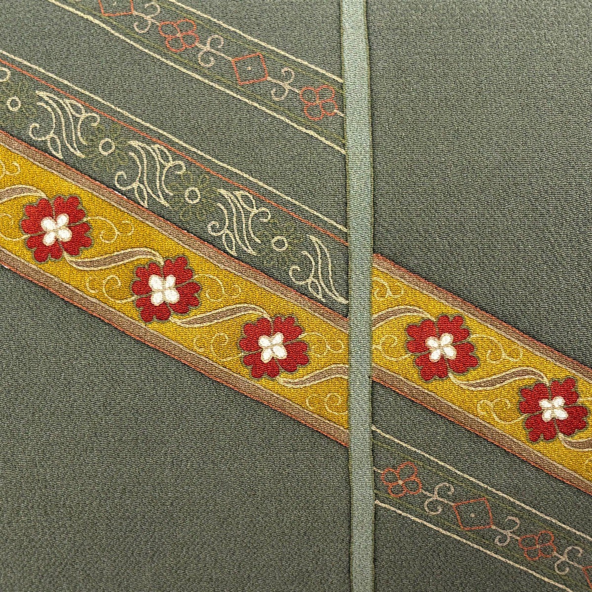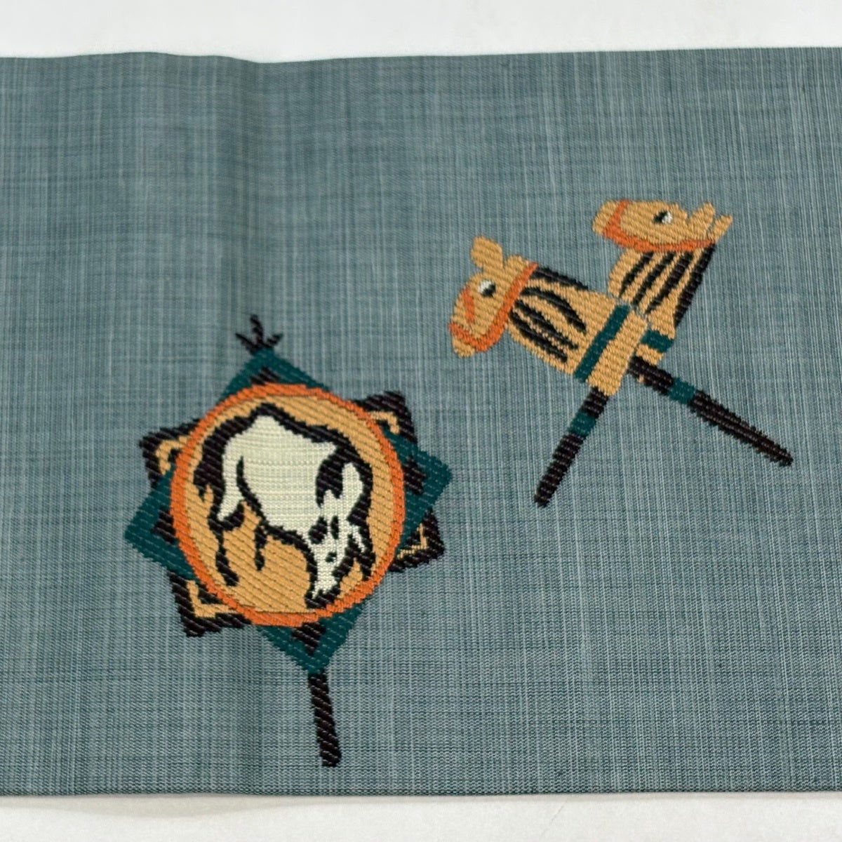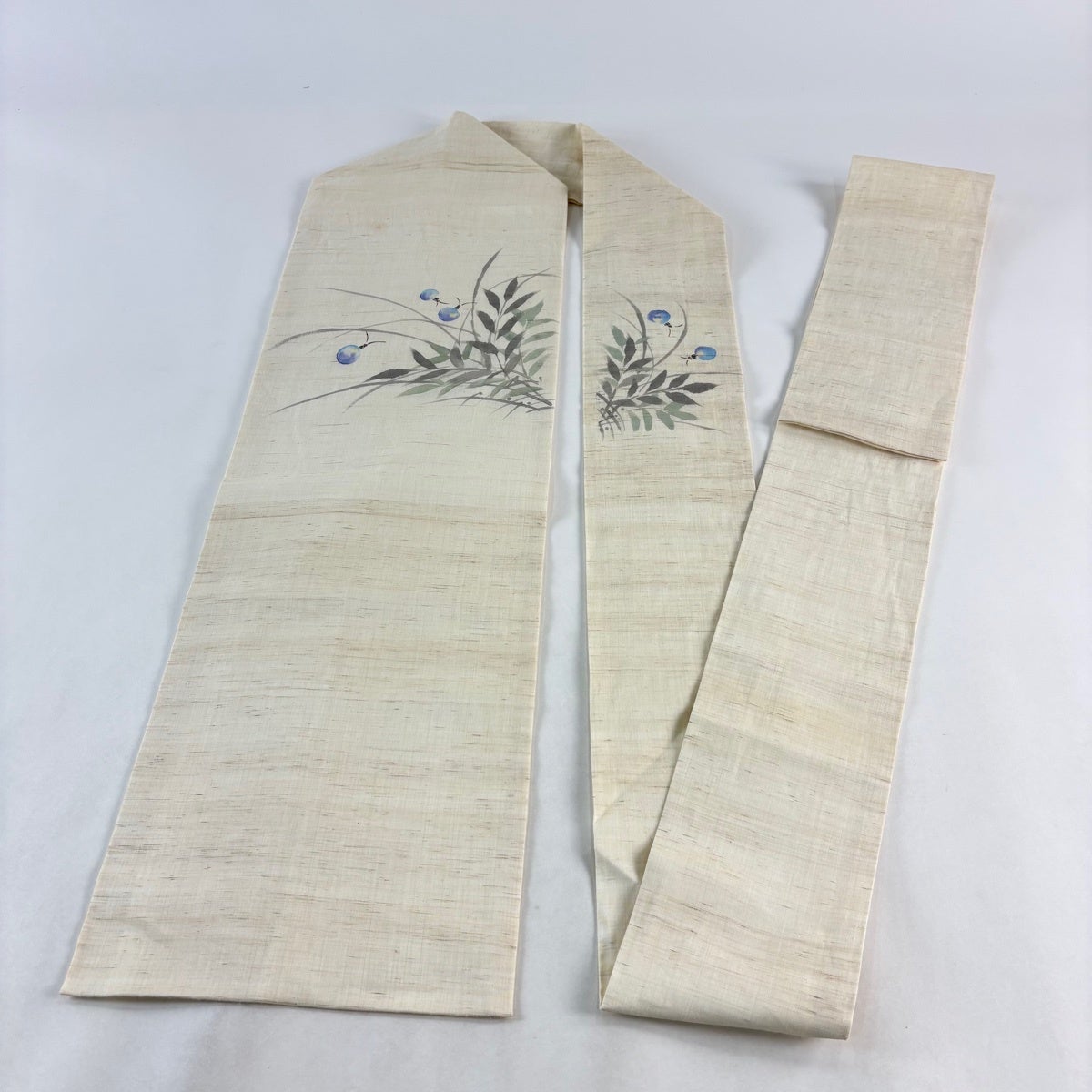 帯の格は着物とは逆で染よりも織のほうが格式が高く、名古屋帯は袋帯よりも格が低く様々な技法や生地で作成されているため組み合わせ数も多く場面によって使い分けることでセミフォーマルからカジュアルまで幅広く着用する事ができる帯です。 名古屋帯の名前の由来は名古屋の女学校の先生が考案したと言われるため名古屋帯という名前で呼ばれるようになりました。 形状はお太鼓部分までは通常の帯幅ですがそれ以降は幅が半分になっていることが多く、袋帯よりも短い作りになっているため一重太鼓でしか結ぶ事ができません。