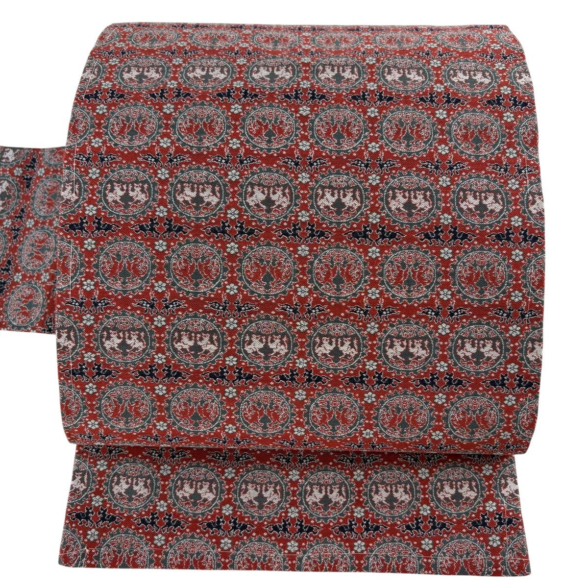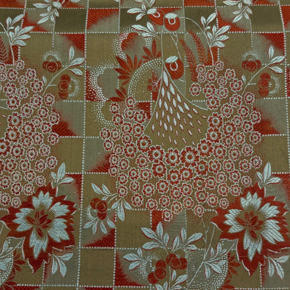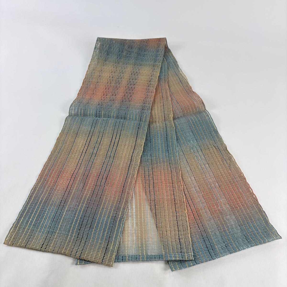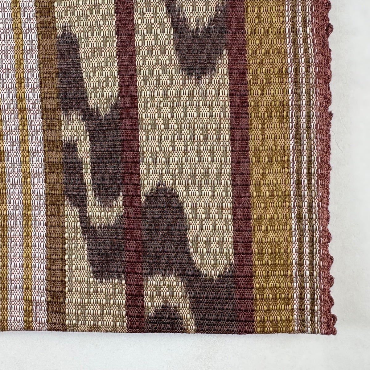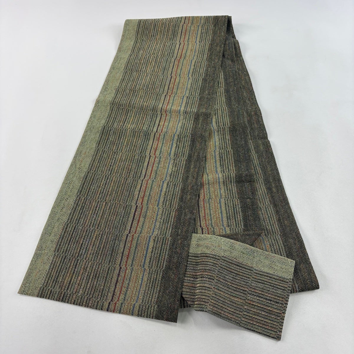 帯の格は着物とは逆で染よりも織のほうが格式が高く、名古屋帯は袋帯よりも格が低く様々な技法や生地で作成されているため組み合わせ数も多く場面によって使い分けることでセミフォーマルからカジュアルまで幅広く着用する事ができる帯です。 名古屋帯の名前の由来は名古屋の女学校の先生が考案したと言われるため名古屋帯という名前で呼ばれるようになりました。 形状はお太鼓部分までは通常の帯幅ですがそれ以降は幅が半分になっていることが多く、袋帯よりも短い作りになっているため一重太鼓でしか結ぶ事ができません。