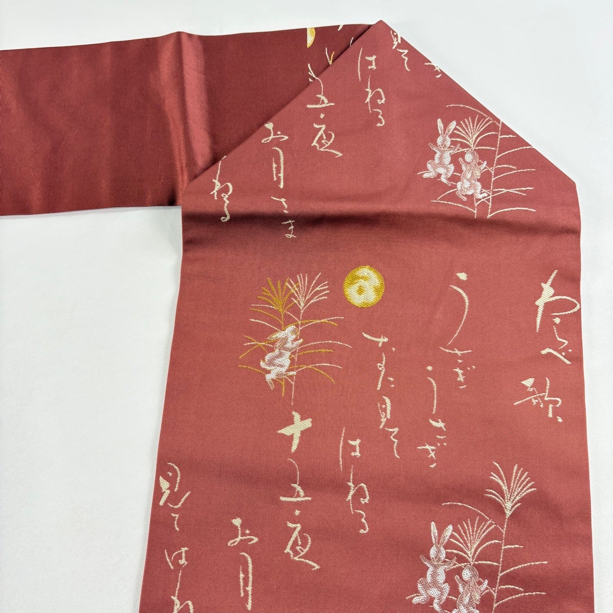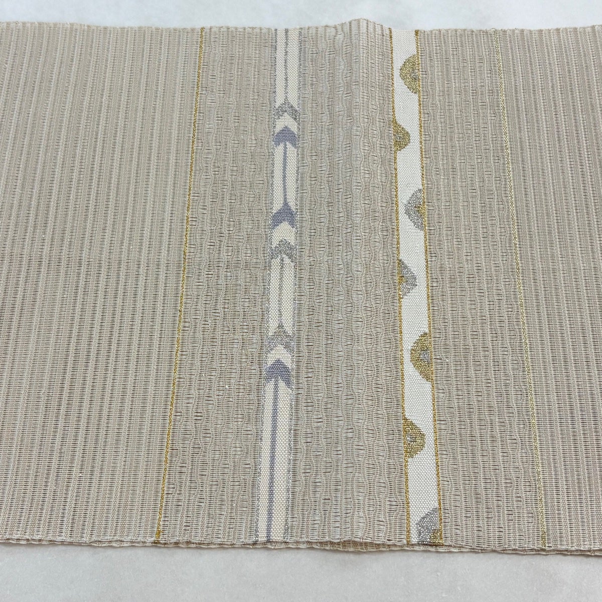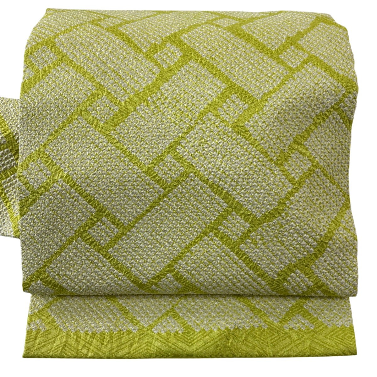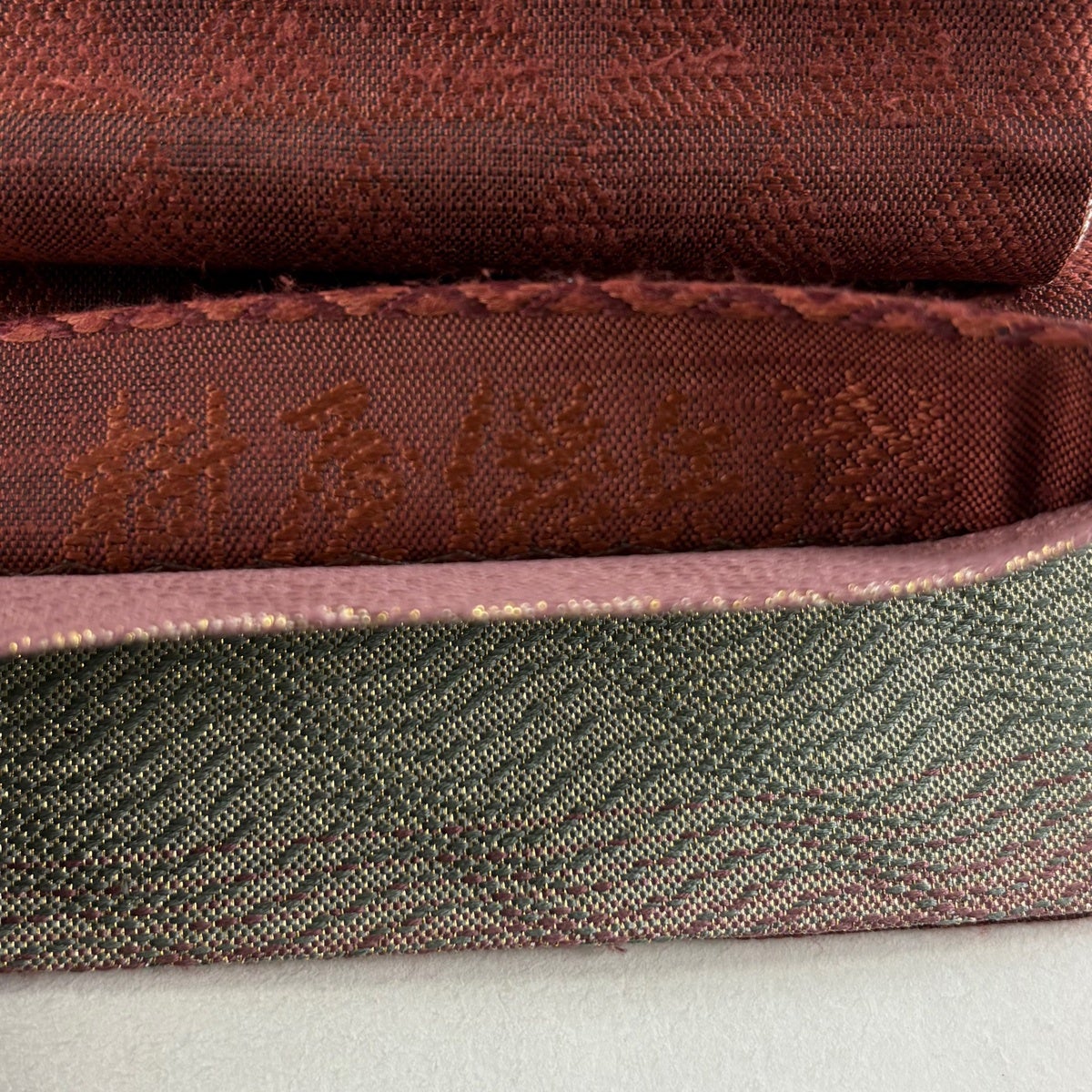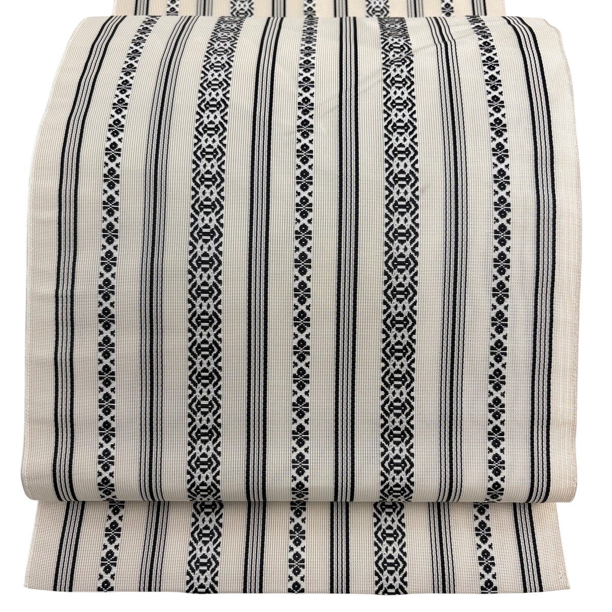 帯の格は着物とは逆で染よりも織のほうが格式が高く、名古屋帯は袋帯よりも格が低く様々な技法や生地で作成されているため組み合わせ数も多く場面によって使い分けることでセミフォーマルからカジュアルまで幅広く着用する事ができる帯です。 名古屋帯の名前の由来は名古屋の女学校の先生が考案したと言われるため名古屋帯という名前で呼ばれるようになりました。 形状はお太鼓部分までは通常の帯幅ですがそれ以降は幅が半分になっていることが多く、袋帯よりも短い作りになっているため一重太鼓でしか結ぶ事ができません。