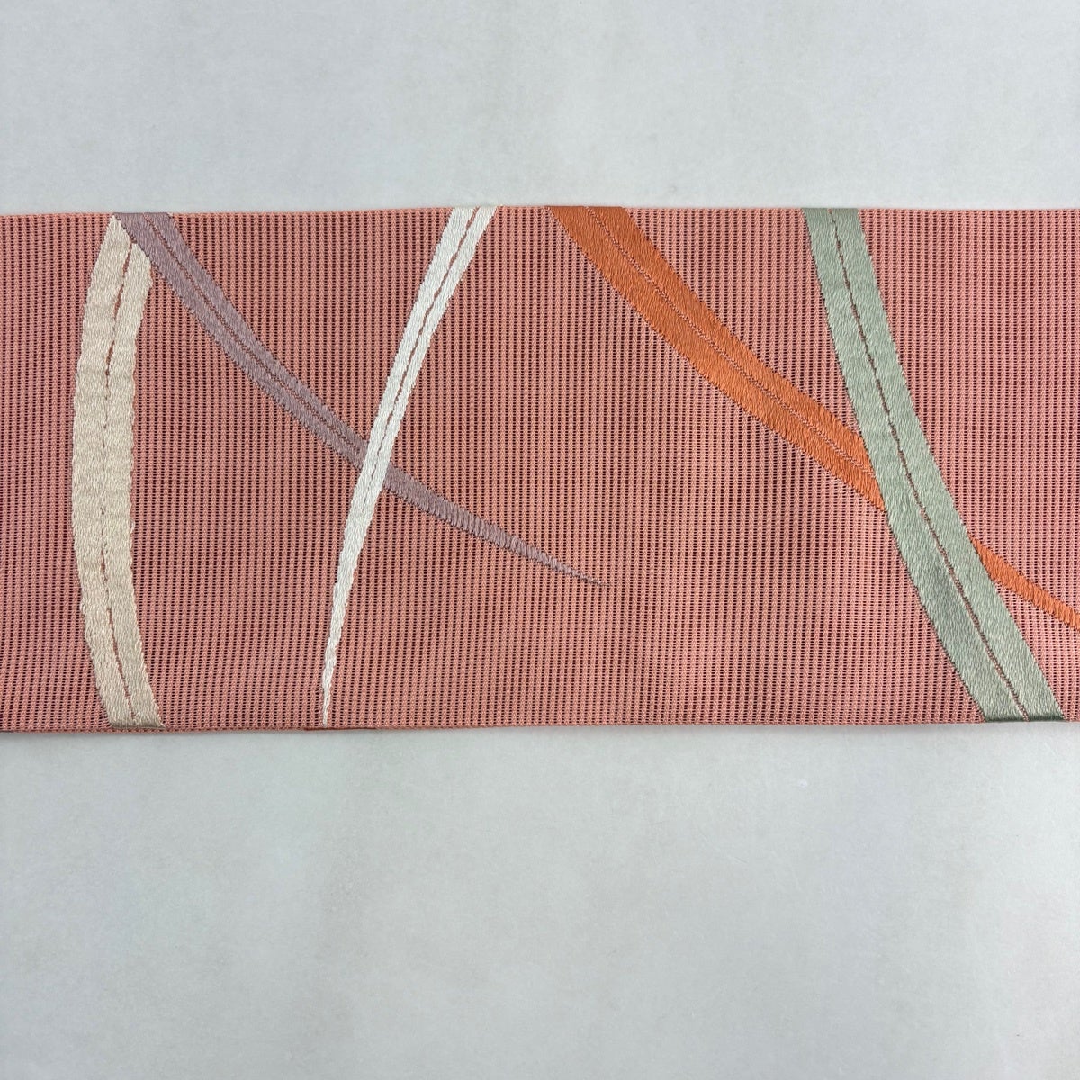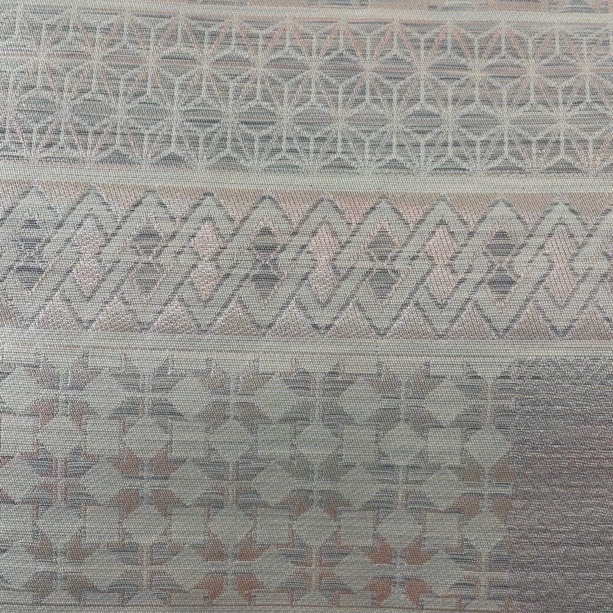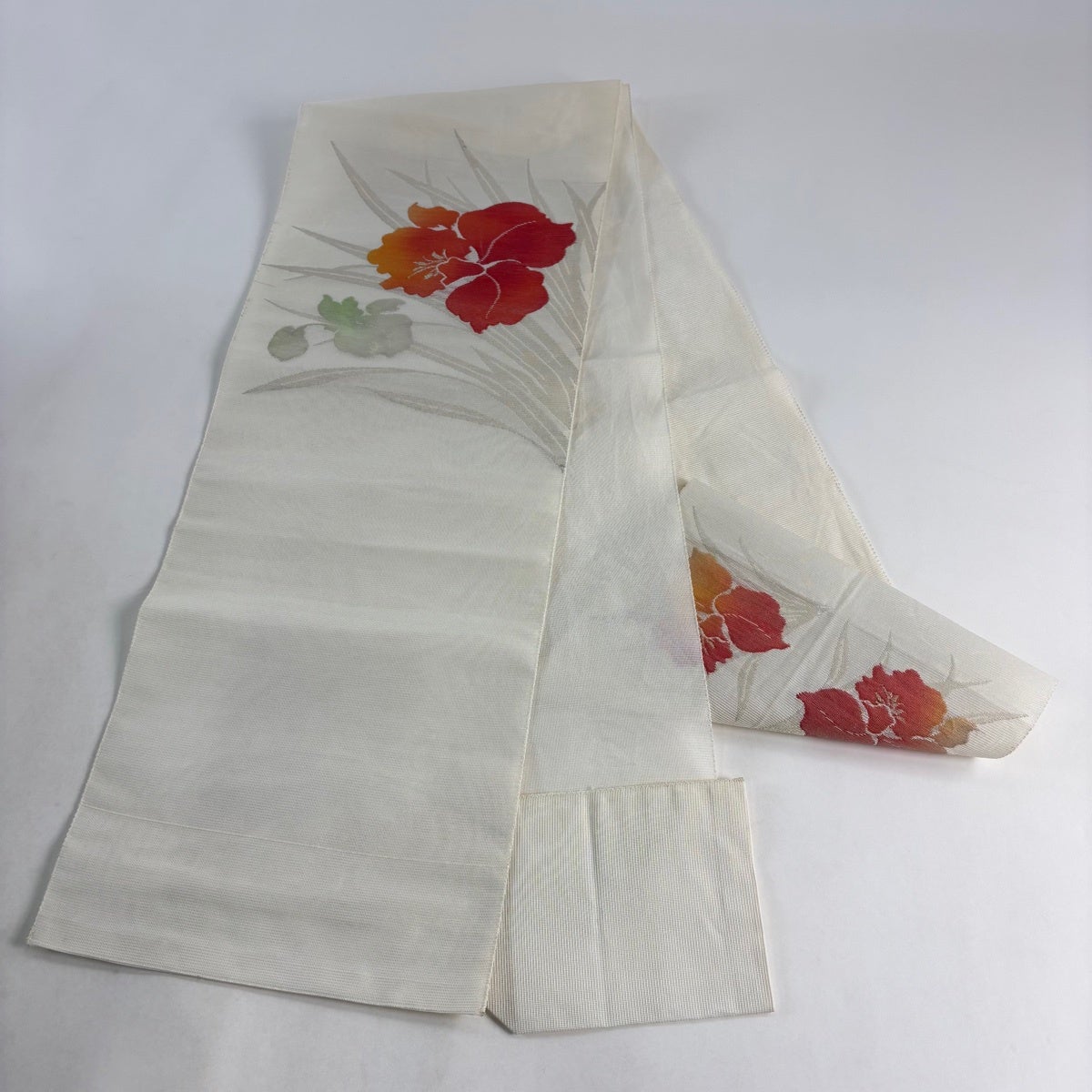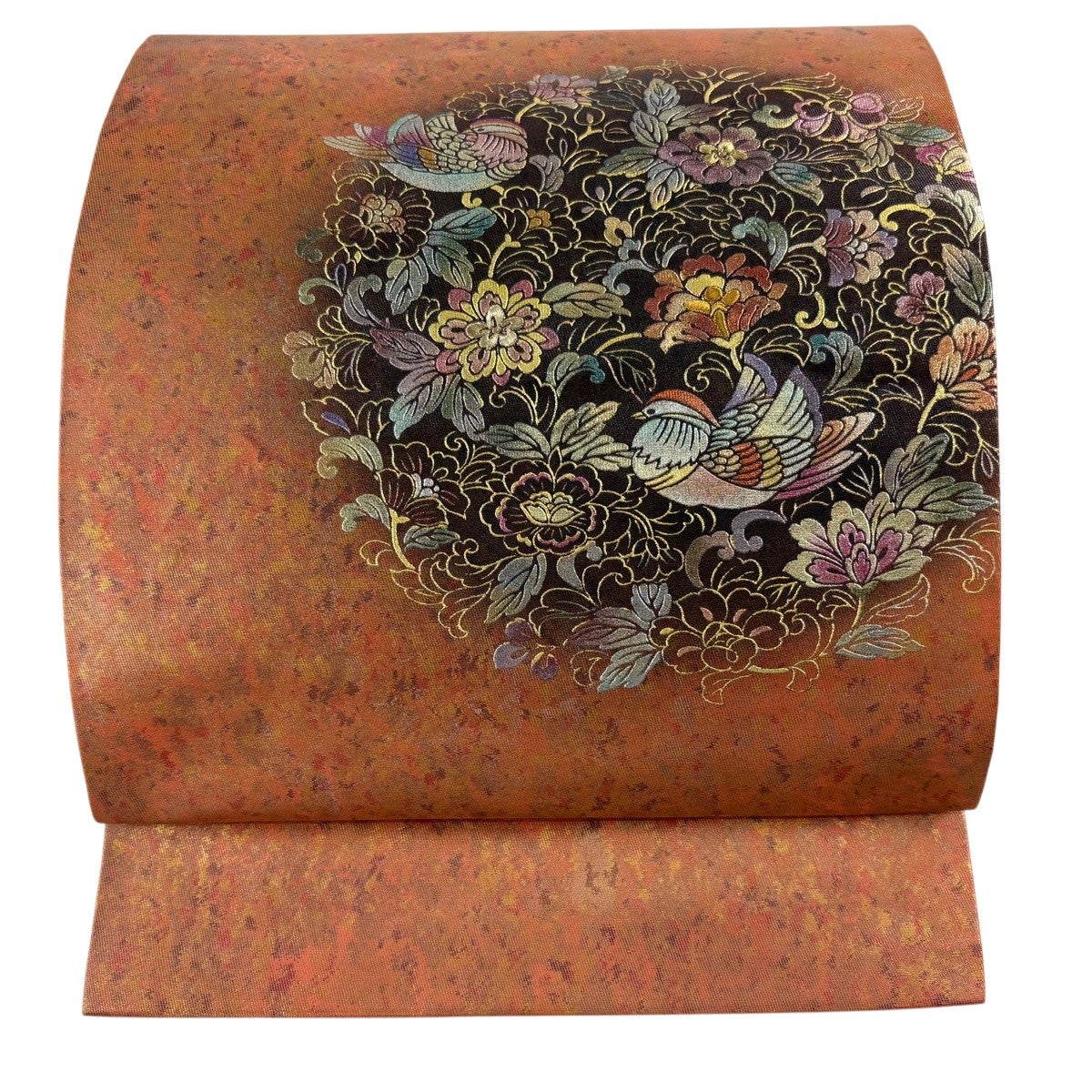 帯の格は着物とは逆で染よりも織のほうが格式が高く、名古屋帯は袋帯よりも格が低く様々な技法や生地で作成されているため組み合わせ数も多く場面によって使い分けることでセミフォーマルからカジュアルまで幅広く着用する事ができる帯です。 名古屋帯の名前の由来は名古屋の女学校の先生が考案したと言われるため名古屋帯という名前で呼ばれるようになりました。 形状はお太鼓部分までは通常の帯幅ですがそれ以降は幅が半分になっていることが多く、袋帯よりも短い作りになっているため一重太鼓でしか結ぶ事ができません。