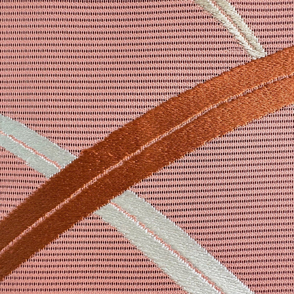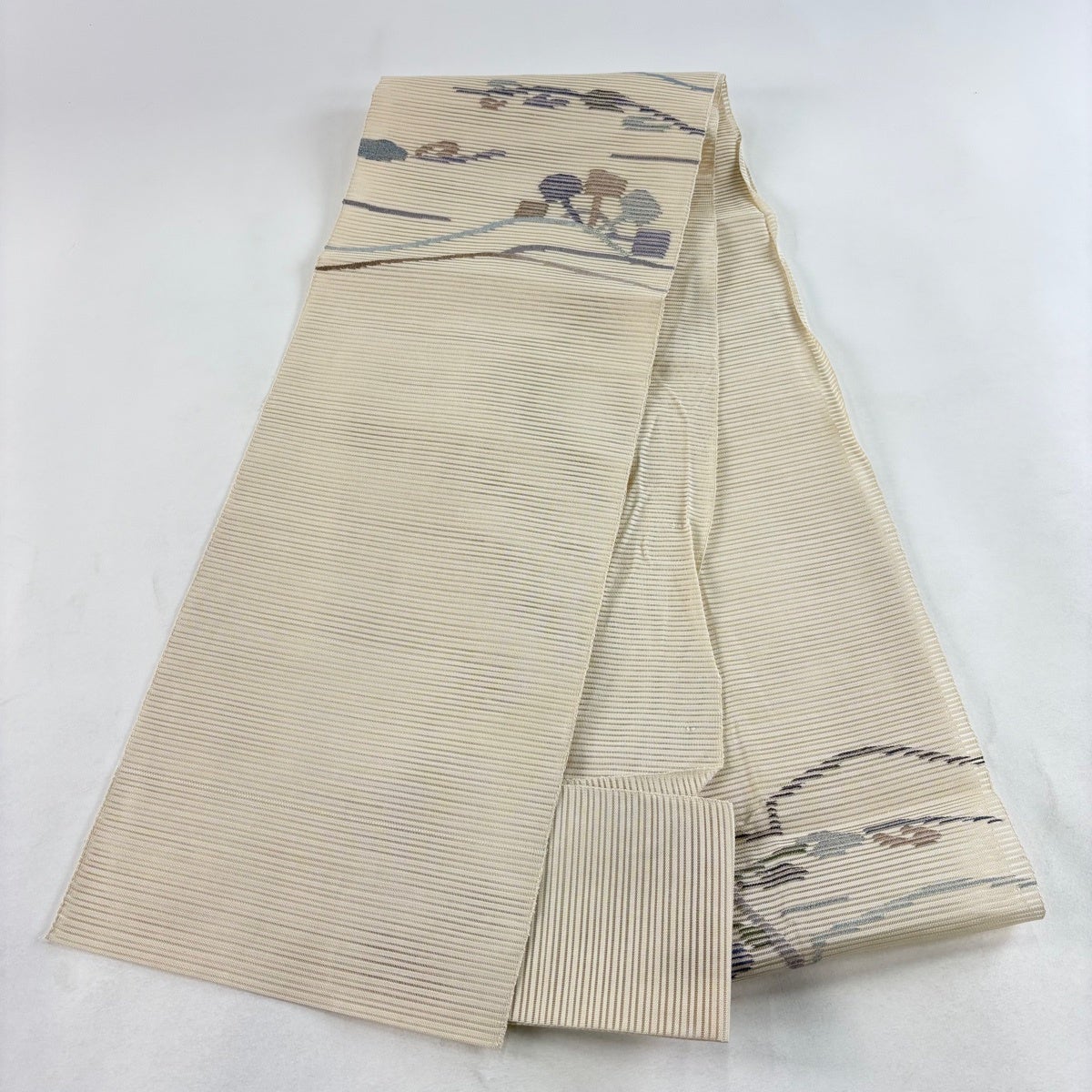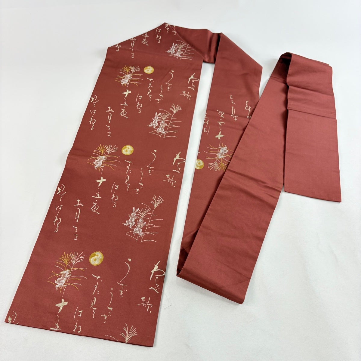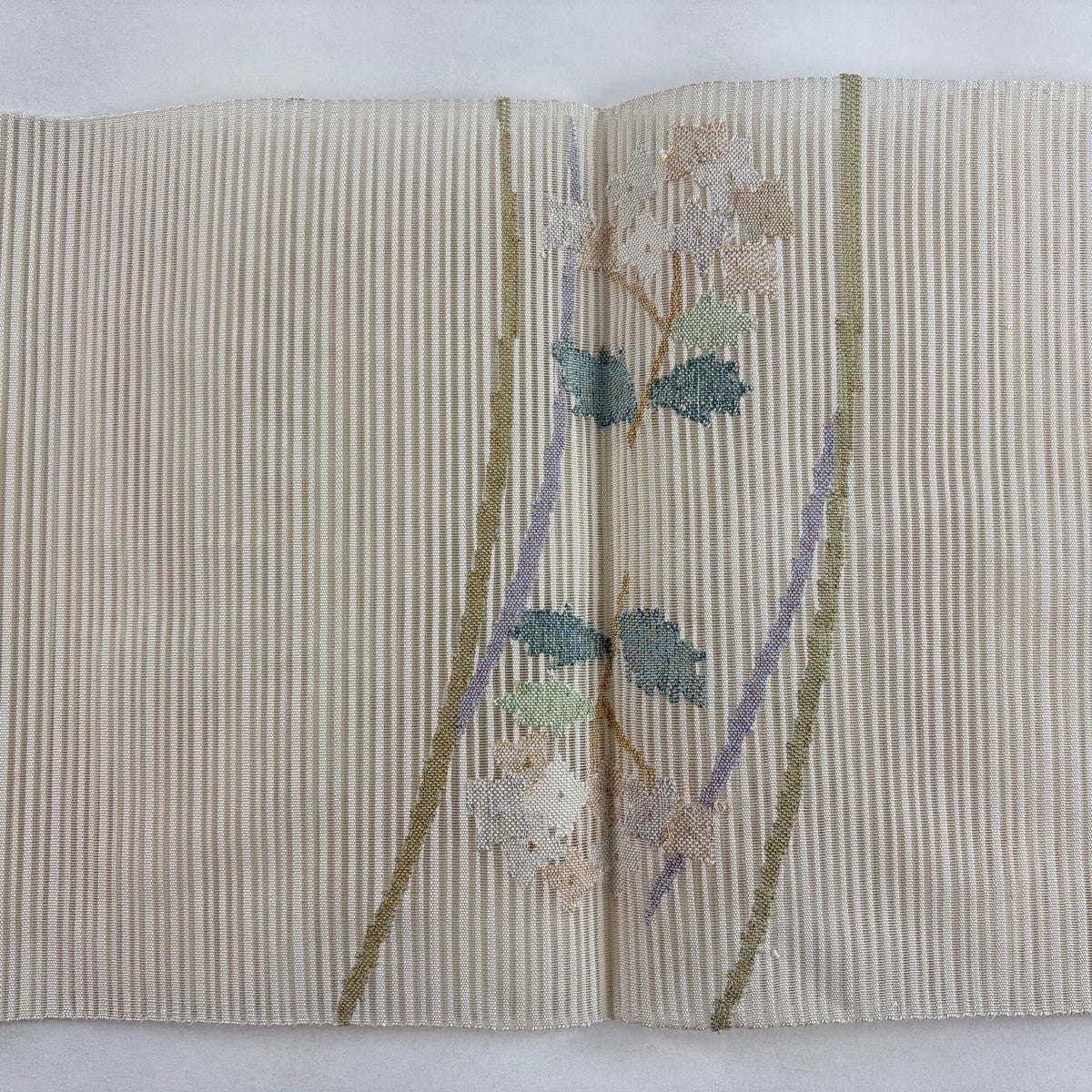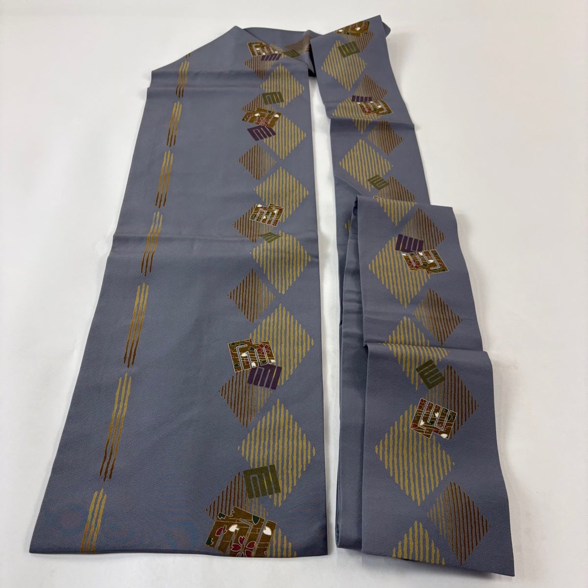 帯の格は着物とは逆で染よりも織のほうが格式が高く、名古屋帯は袋帯よりも格が低く様々な技法や生地で作成されているため組み合わせ数も多く場面によって使い分けることでセミフォーマルからカジュアルまで幅広く着用する事ができる帯です。 名古屋帯の名前の由来は名古屋の女学校の先生が考案したと言われるため名古屋帯という名前で呼ばれるようになりました。 形状はお太鼓部分までは通常の帯幅ですがそれ以降は幅が半分になっていることが多く、袋帯よりも短い作りになっているため一重太鼓でしか結ぶ事ができません。