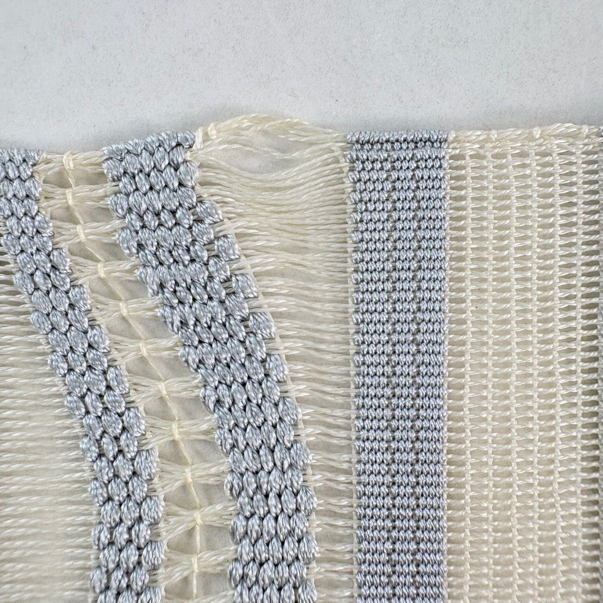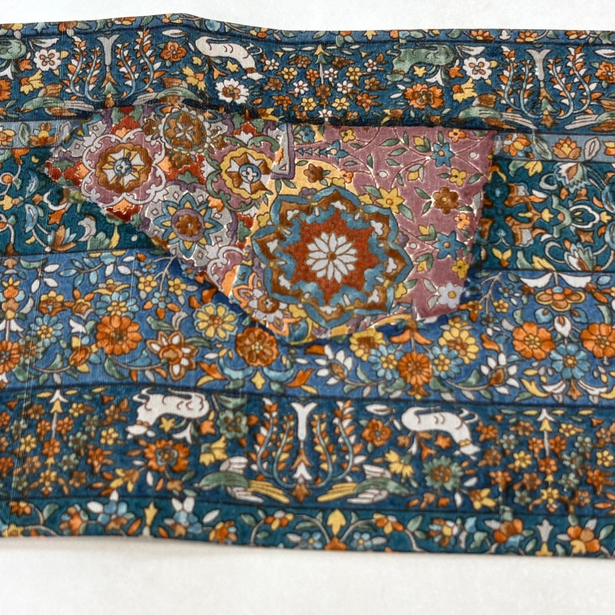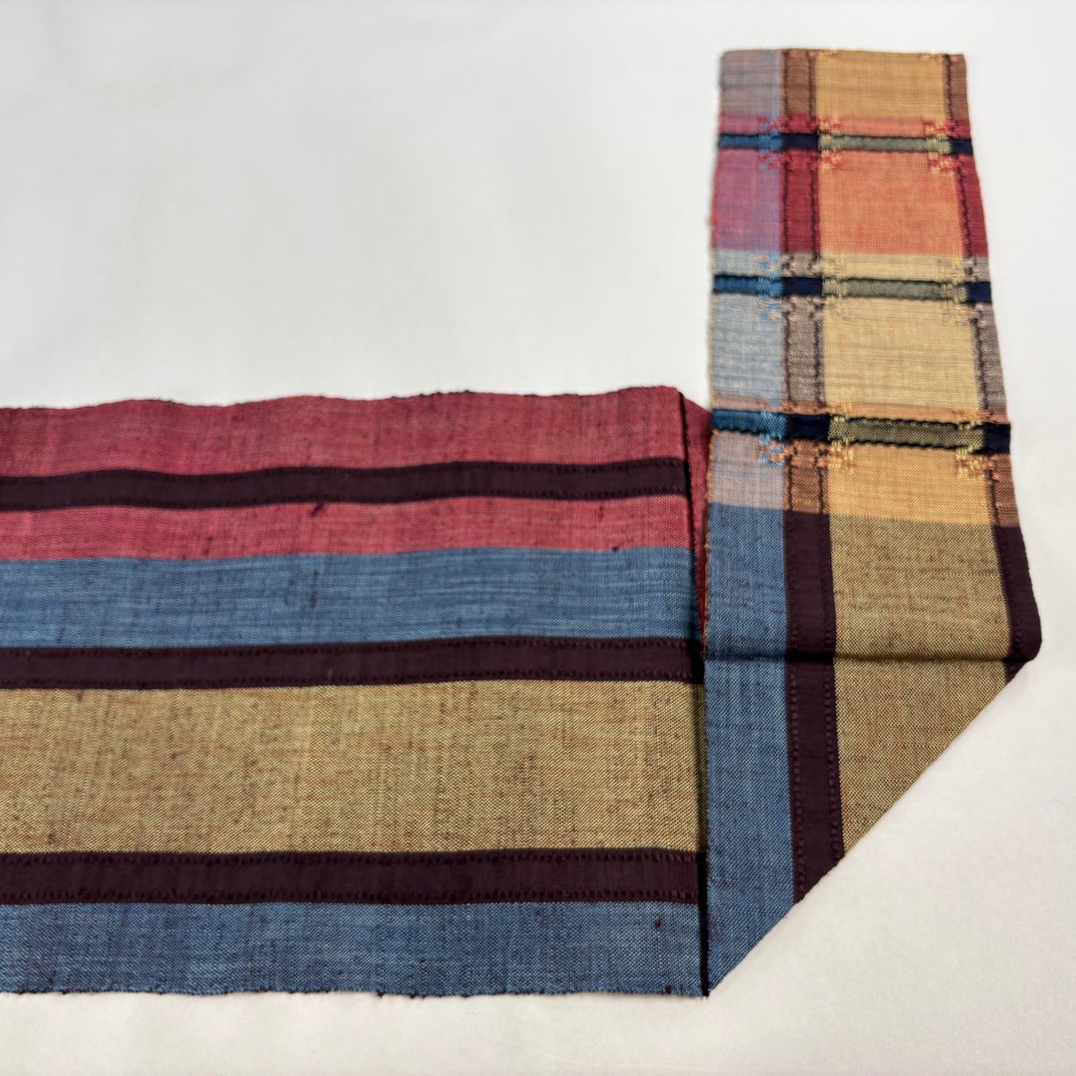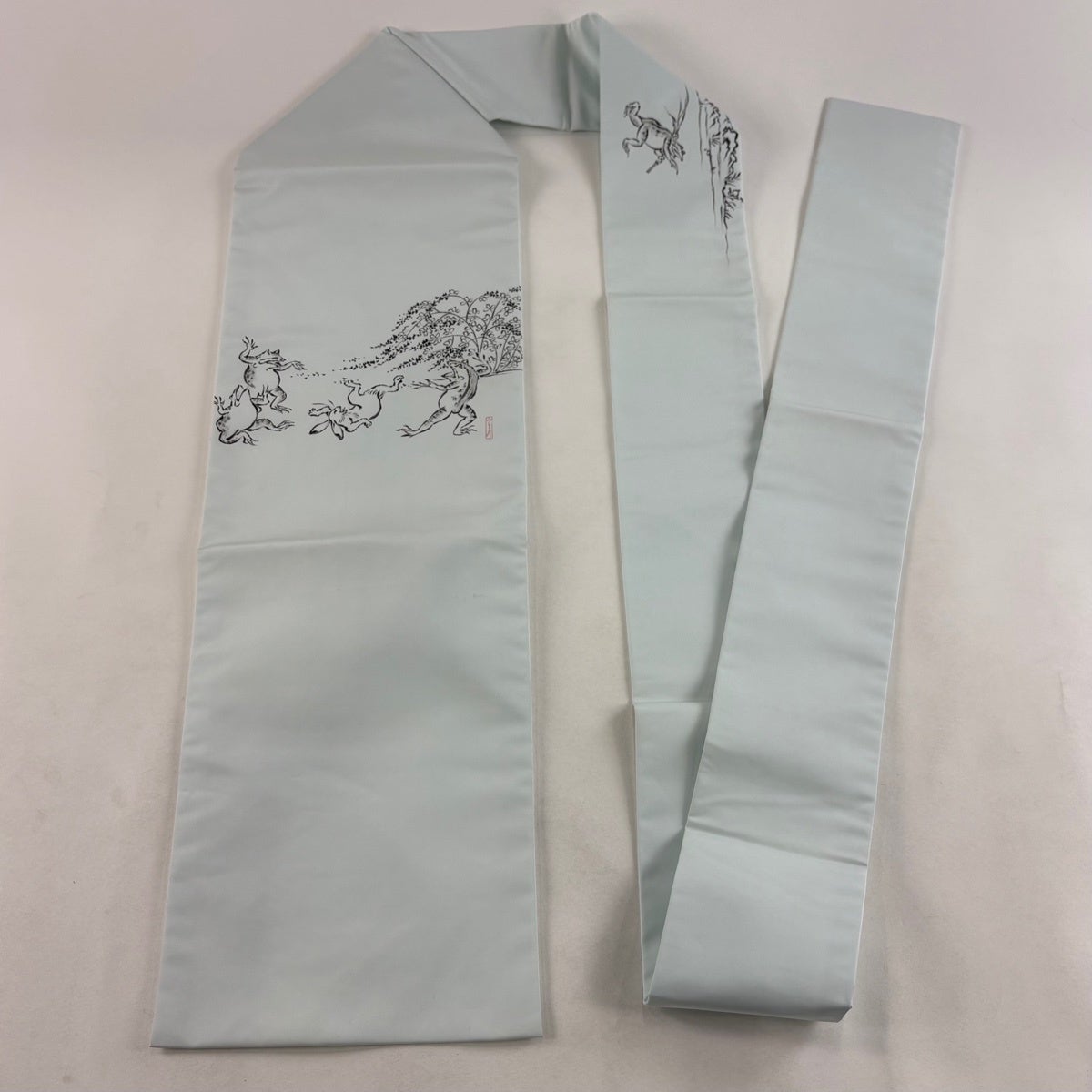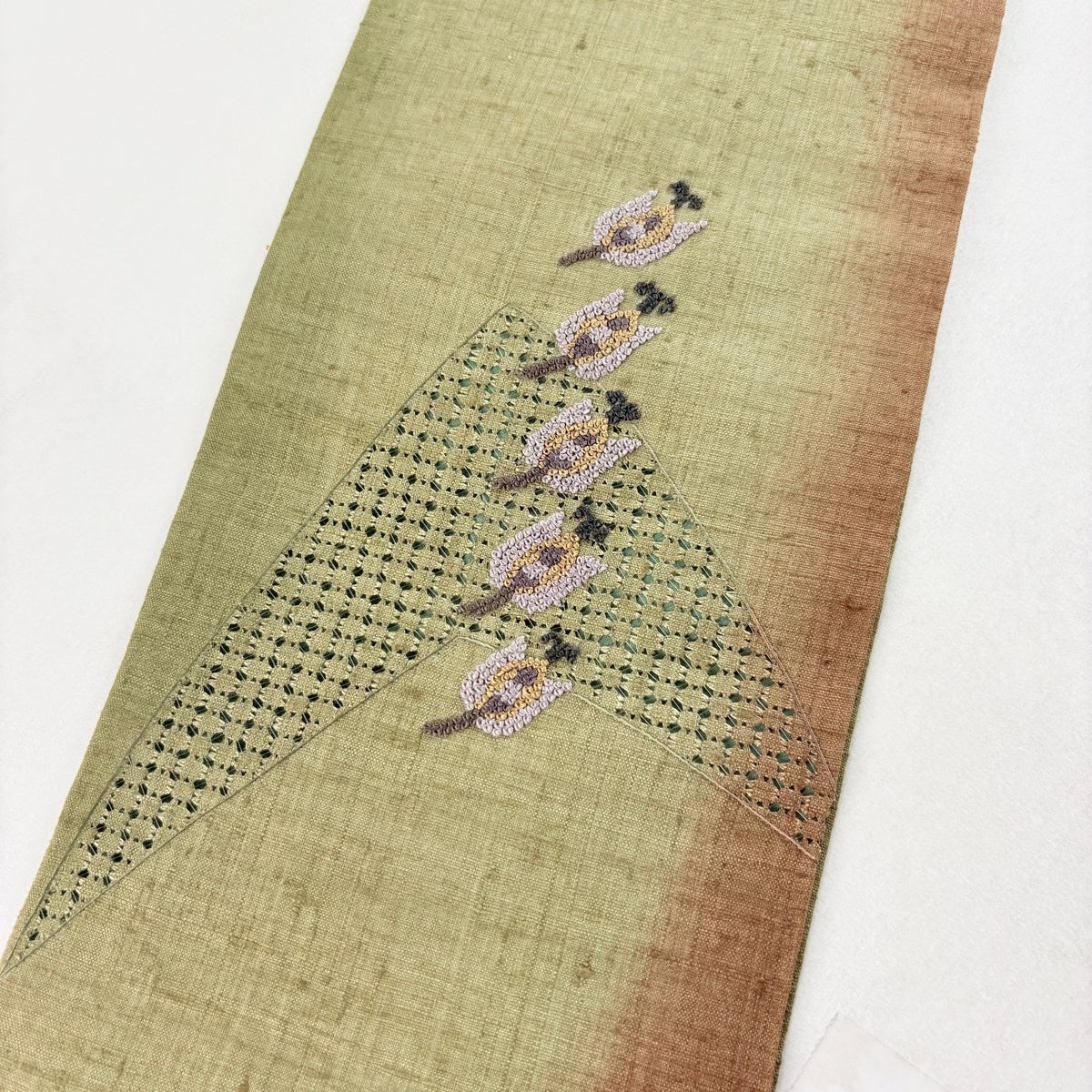 帯の格は着物とは逆で染よりも織のほうが格式が高く、名古屋帯は袋帯よりも格が低く様々な技法や生地で作成されているため組み合わせ数も多く場面によって使い分けることでセミフォーマルからカジュアルまで幅広く着用する事ができる帯です。 名古屋帯の名前の由来は名古屋の女学校の先生が考案したと言われるため名古屋帯という名前で呼ばれるようになりました。 形状はお太鼓部分までは通常の帯幅ですがそれ以降は幅が半分になっていることが多く、袋帯よりも短い作りになっているため一重太鼓でしか結ぶ事ができません。