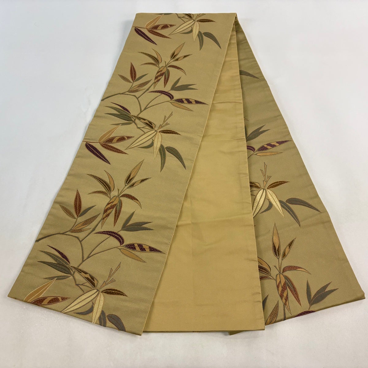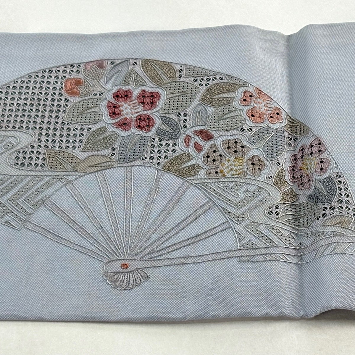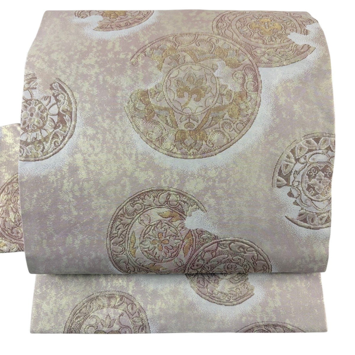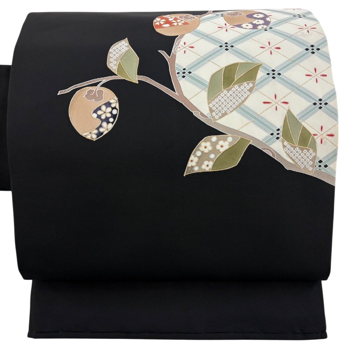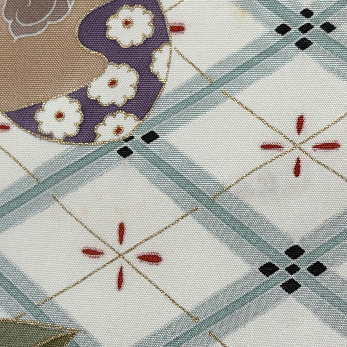 帯の格は着物とは逆で染よりも織のほうが格式が高く、名古屋帯は袋帯よりも格が低く様々な技法や生地で作成されているため組み合わせ数も多く場面によって使い分けることでセミフォーマルからカジュアルまで幅広く着用する事ができる帯です。 名古屋帯の名前の由来は名古屋の女学校の先生が考案したと言われるため名古屋帯という名前で呼ばれるようになりました。 形状はお太鼓部分までは通常の帯幅ですがそれ以降は幅が半分になっていることが多く、袋帯よりも短い作りになっているため一重太鼓でしか結ぶ事ができません。