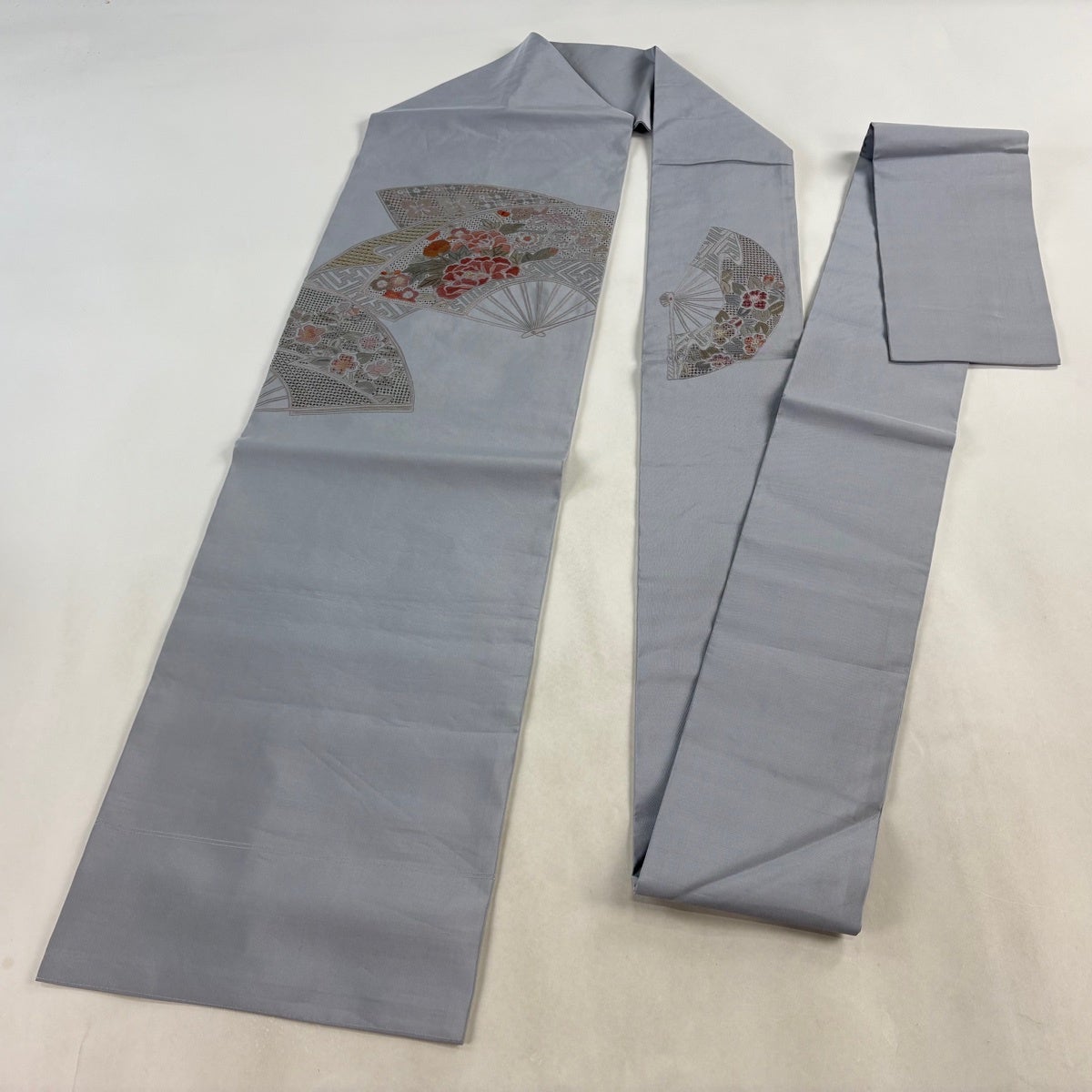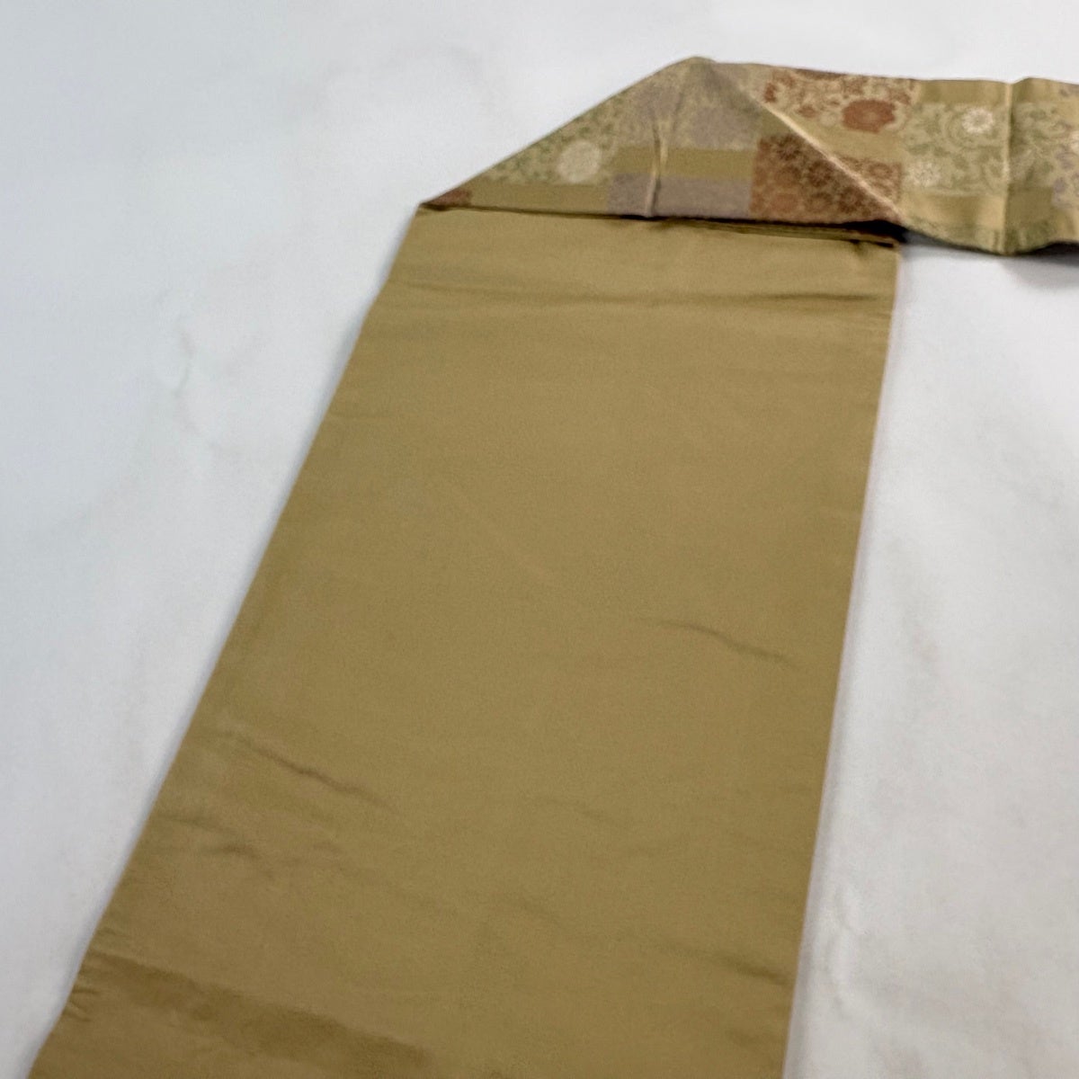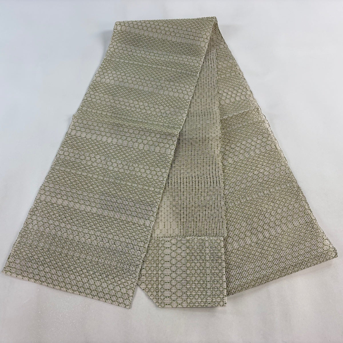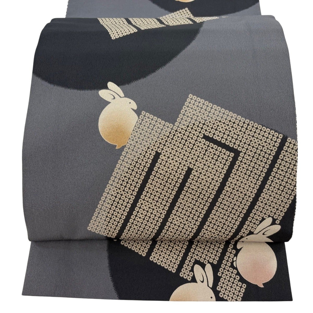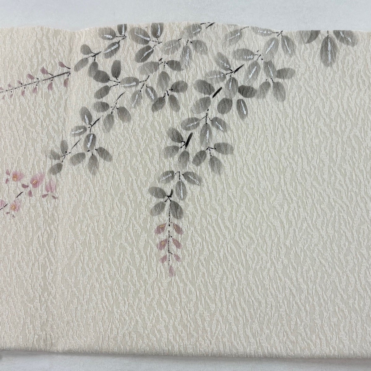帯の格は着物とは逆で染よりも織のほうが格式が高く、名古屋帯は袋帯よりも格が低く様々な技法や生地で作成されているため組み合わせ数も多く場面によって使い分けることでセミフォーマルからカジュアルまで幅広く着用する事ができる帯です。 名古屋帯の名前の由来は名古屋の女学校の先生が考案したと言われるため名古屋帯という名前で呼ばれるようになりました。 形状はお太鼓部分までは通常の帯幅ですがそれ以降は幅が半分になっていることが多く、袋帯よりも短い作りになっているため一重太鼓でしか結ぶ事ができません。