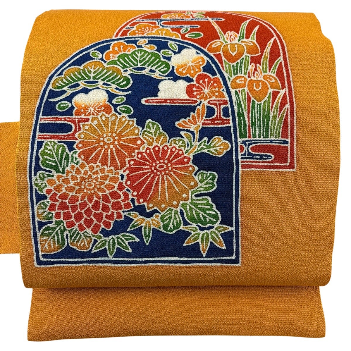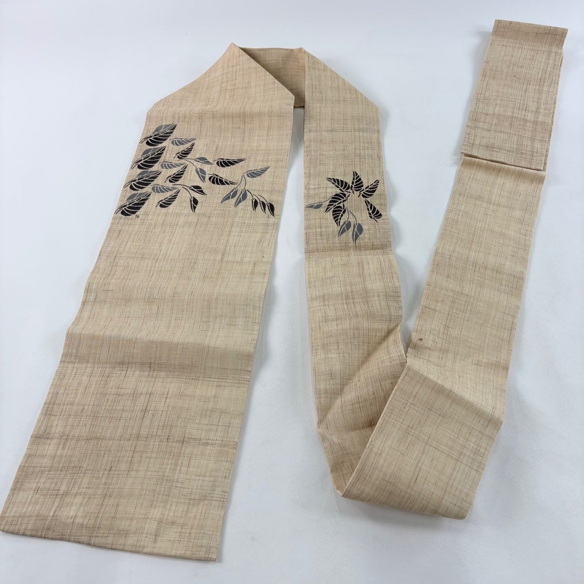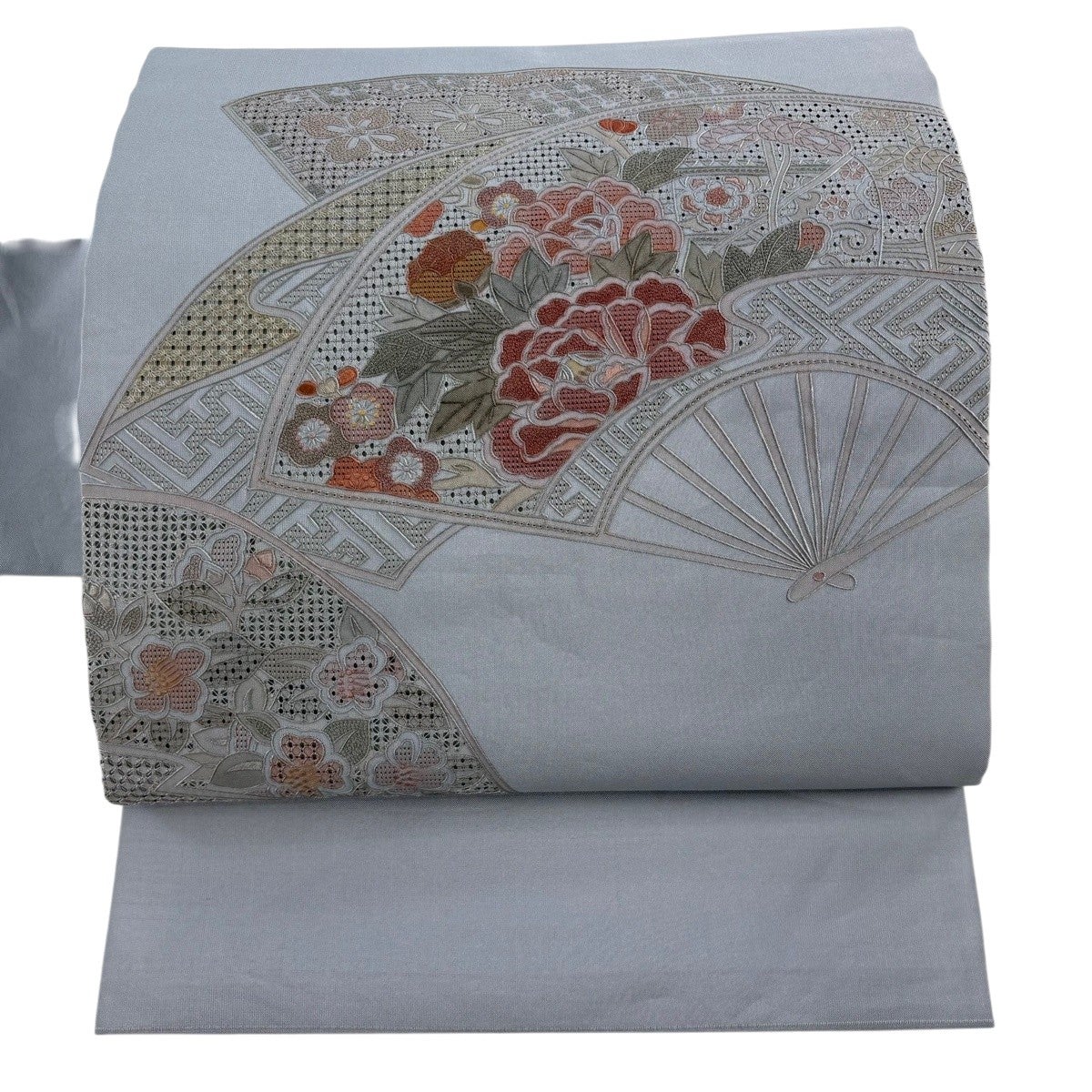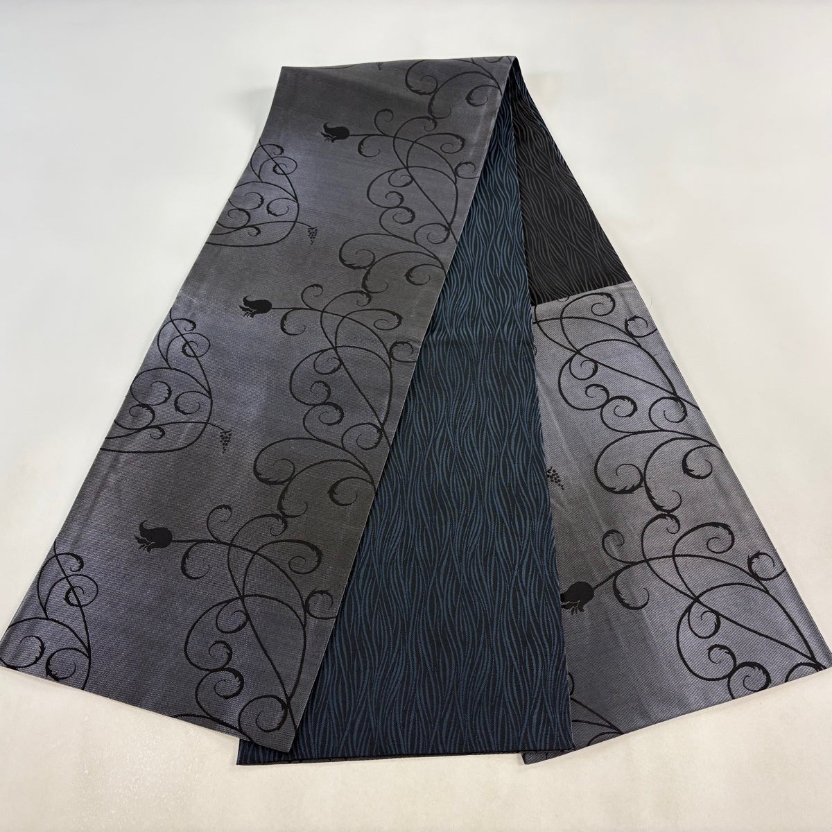 帯の格は着物とは逆で染よりも織のほうが格式が高く、名古屋帯は袋帯よりも格が低く様々な技法や生地で作成されているため組み合わせ数も多く場面によって使い分けることでセミフォーマルからカジュアルまで幅広く着用する事ができる帯です。 名古屋帯の名前の由来は名古屋の女学校の先生が考案したと言われるため名古屋帯という名前で呼ばれるようになりました。 形状はお太鼓部分までは通常の帯幅ですがそれ以降は幅が半分になっていることが多く、袋帯よりも短い作りになっているため一重太鼓でしか結ぶ事ができません。