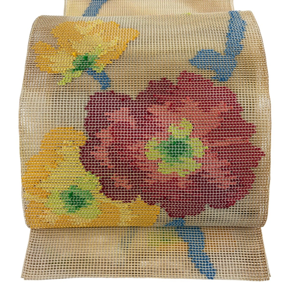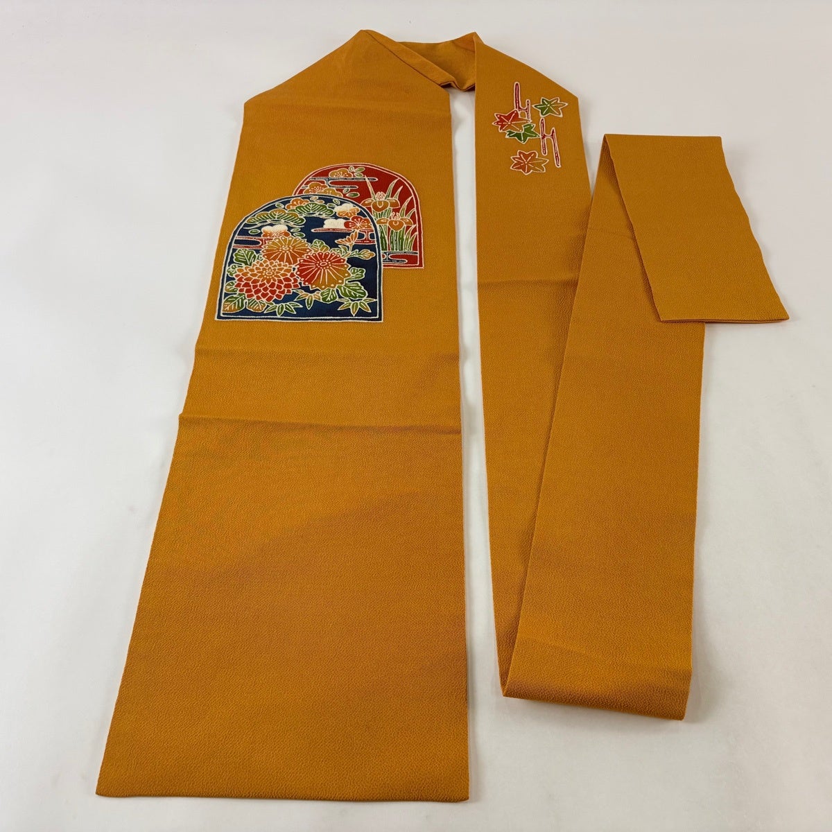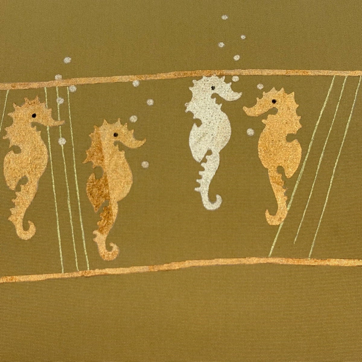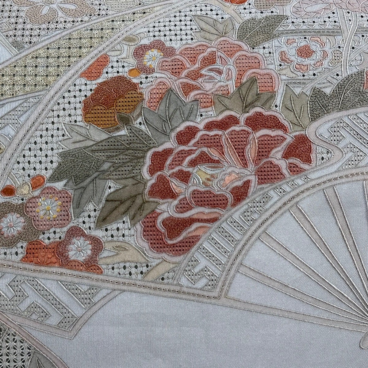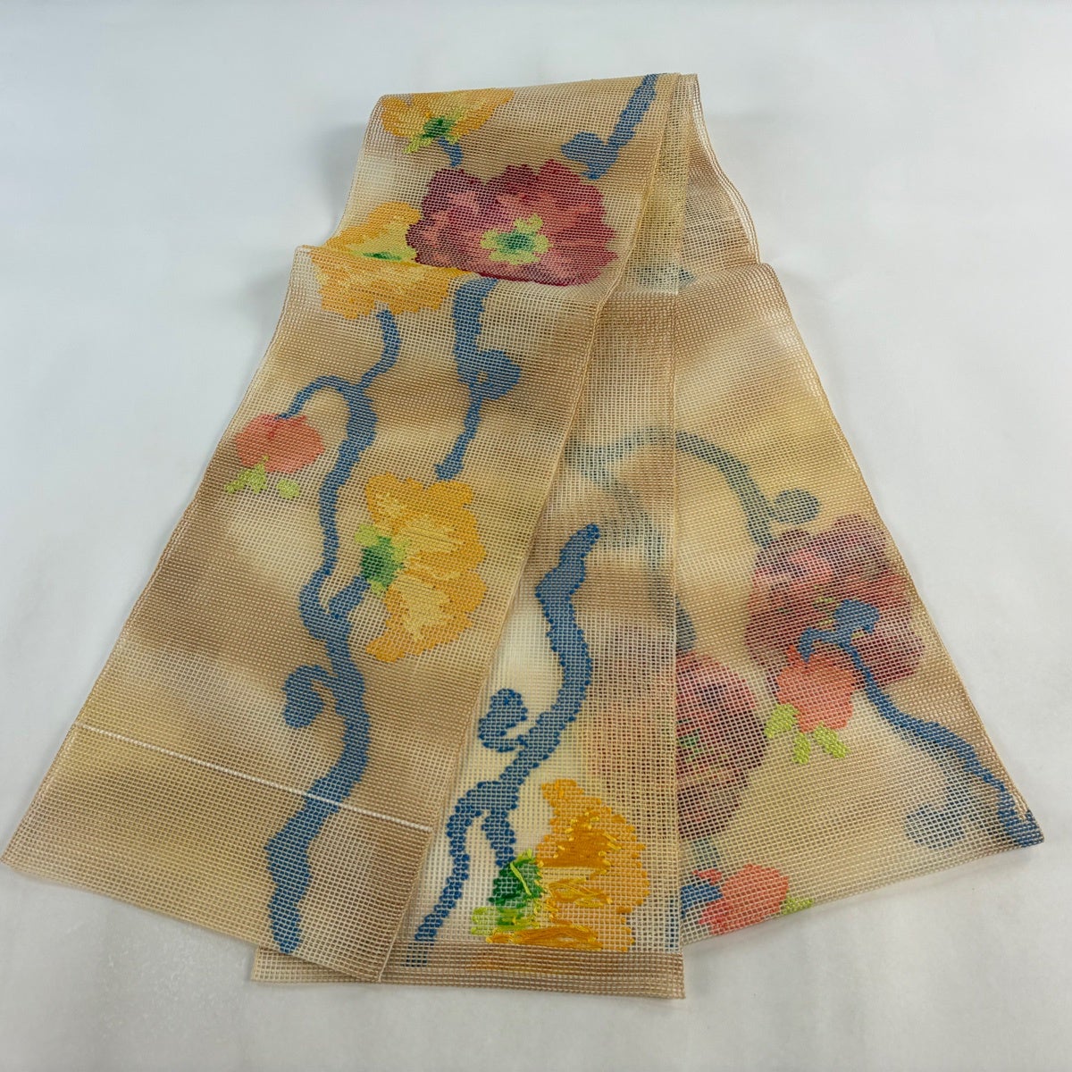 帯の格は着物とは逆で染よりも織のほうが格式が高く、名古屋帯は袋帯よりも格が低く様々な技法や生地で作成されているため組み合わせ数も多く場面によって使い分けることでセミフォーマルからカジュアルまで幅広く着用する事ができる帯です。 名古屋帯の名前の由来は名古屋の女学校の先生が考案したと言われるため名古屋帯という名前で呼ばれるようになりました。 形状はお太鼓部分までは通常の帯幅ですがそれ以降は幅が半分になっていることが多く、袋帯よりも短い作りになっているため一重太鼓でしか結ぶ事ができません。