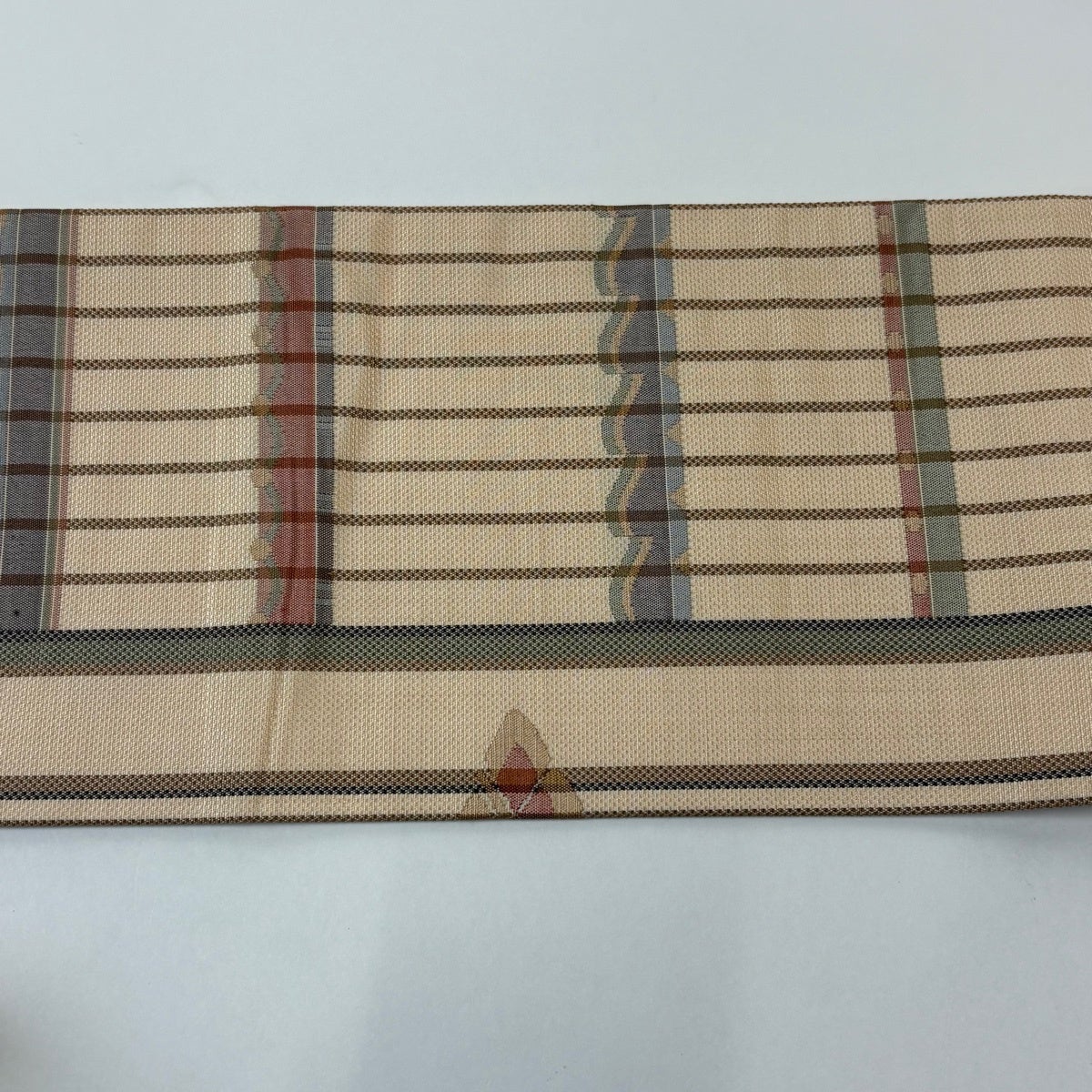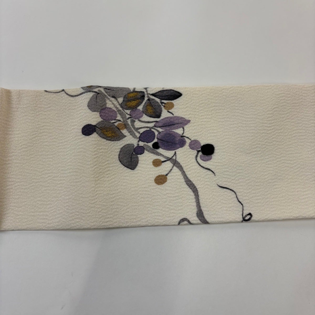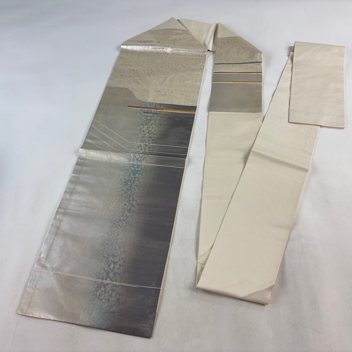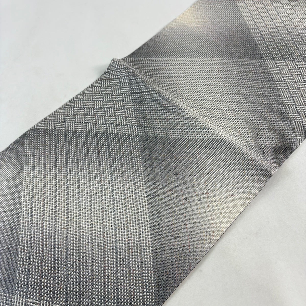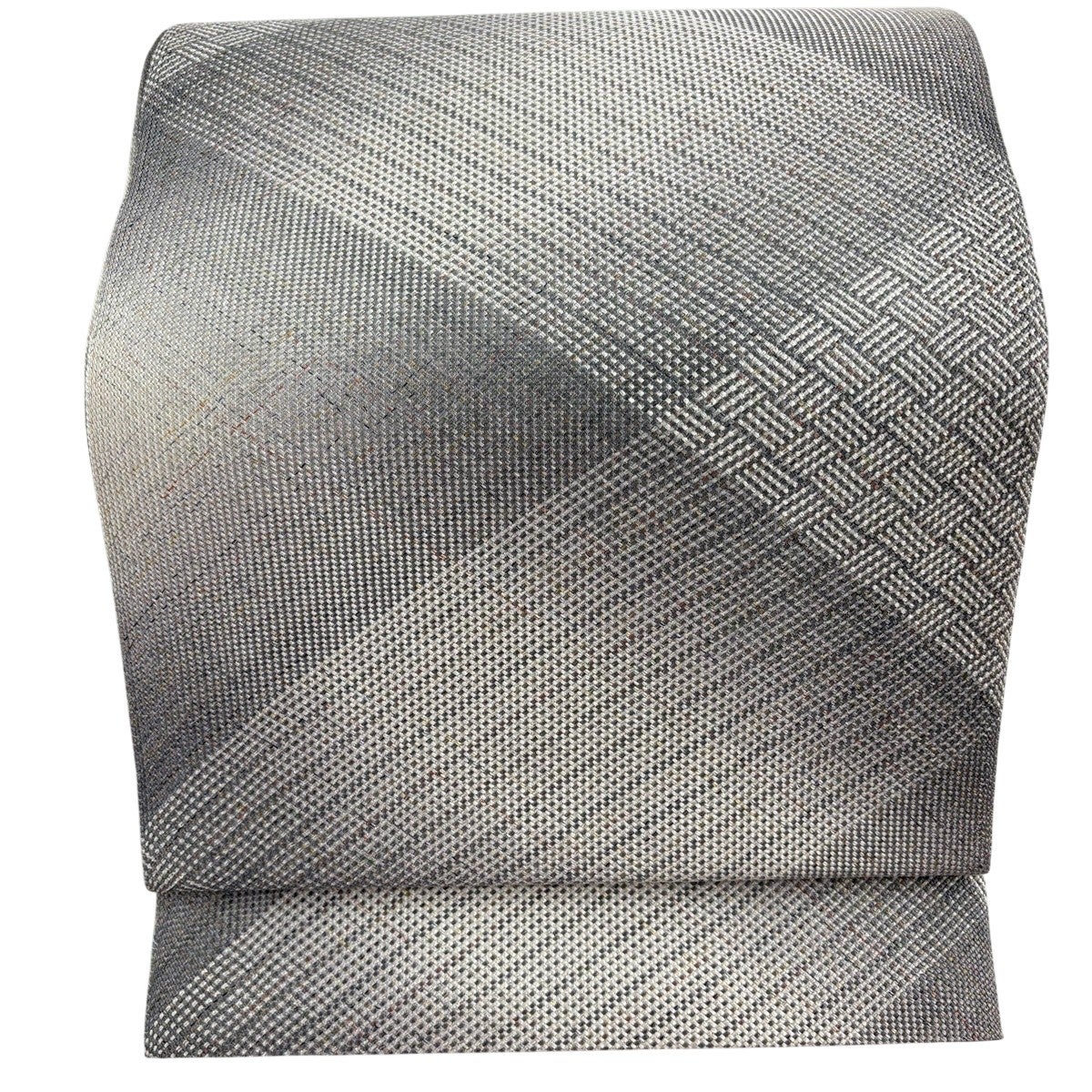 帯の格は着物とは逆で染よりも織のほうが格式が高く、名古屋帯は袋帯よりも格が低く様々な技法や生地で作成されているため組み合わせ数も多く場面によって使い分けることでセミフォーマルからカジュアルまで幅広く着用する事ができる帯です。 名古屋帯の名前の由来は名古屋の女学校の先生が考案したと言われるため名古屋帯という名前で呼ばれるようになりました。 形状はお太鼓部分までは通常の帯幅ですがそれ以降は幅が半分になっていることが多く、袋帯よりも短い作りになっているため一重太鼓でしか結ぶ事ができません。