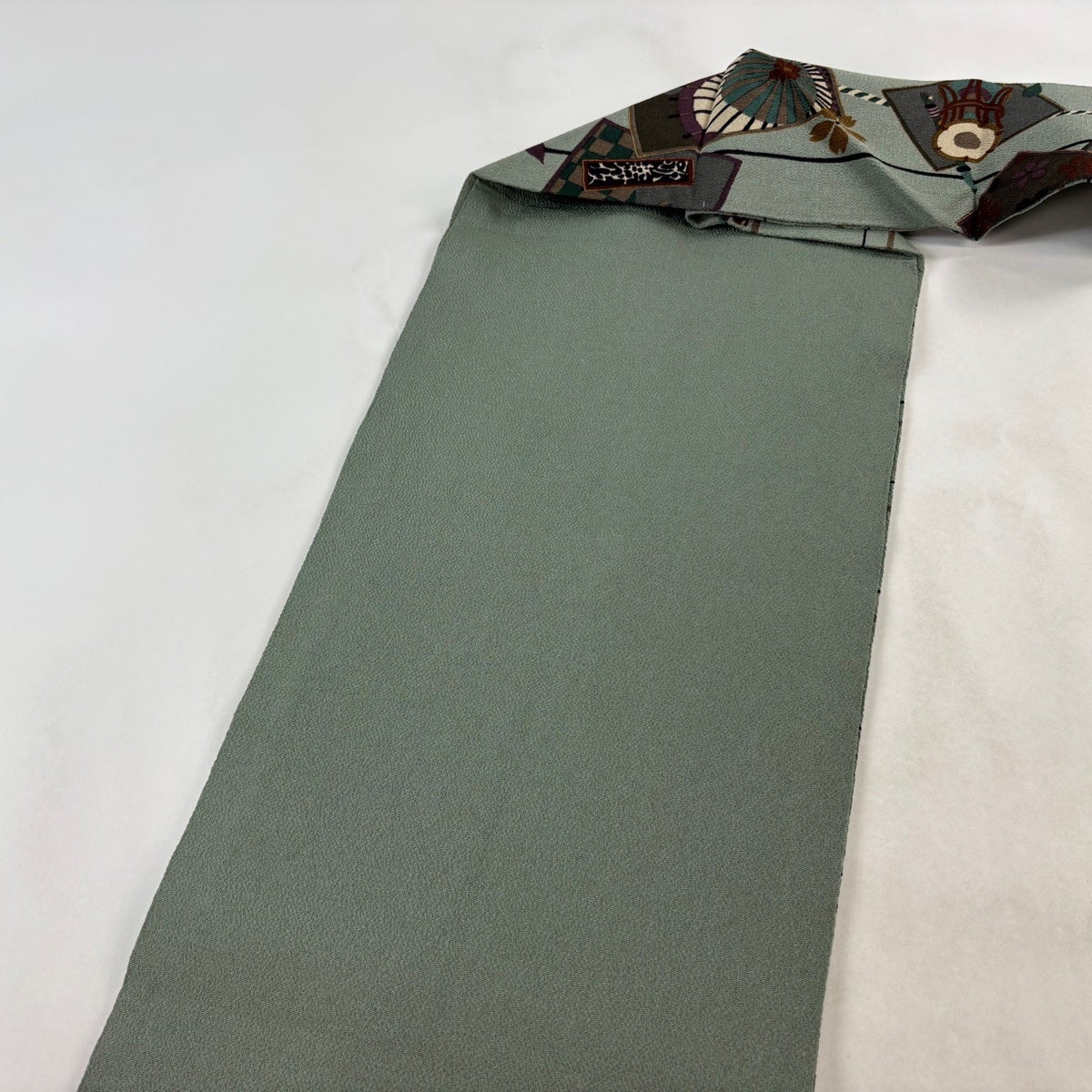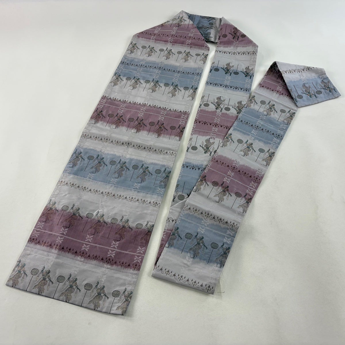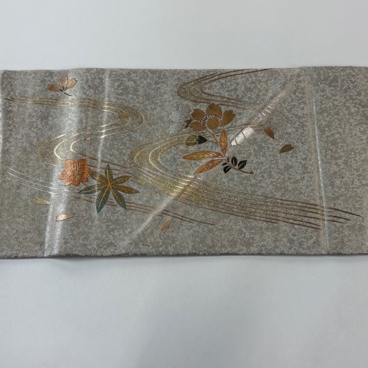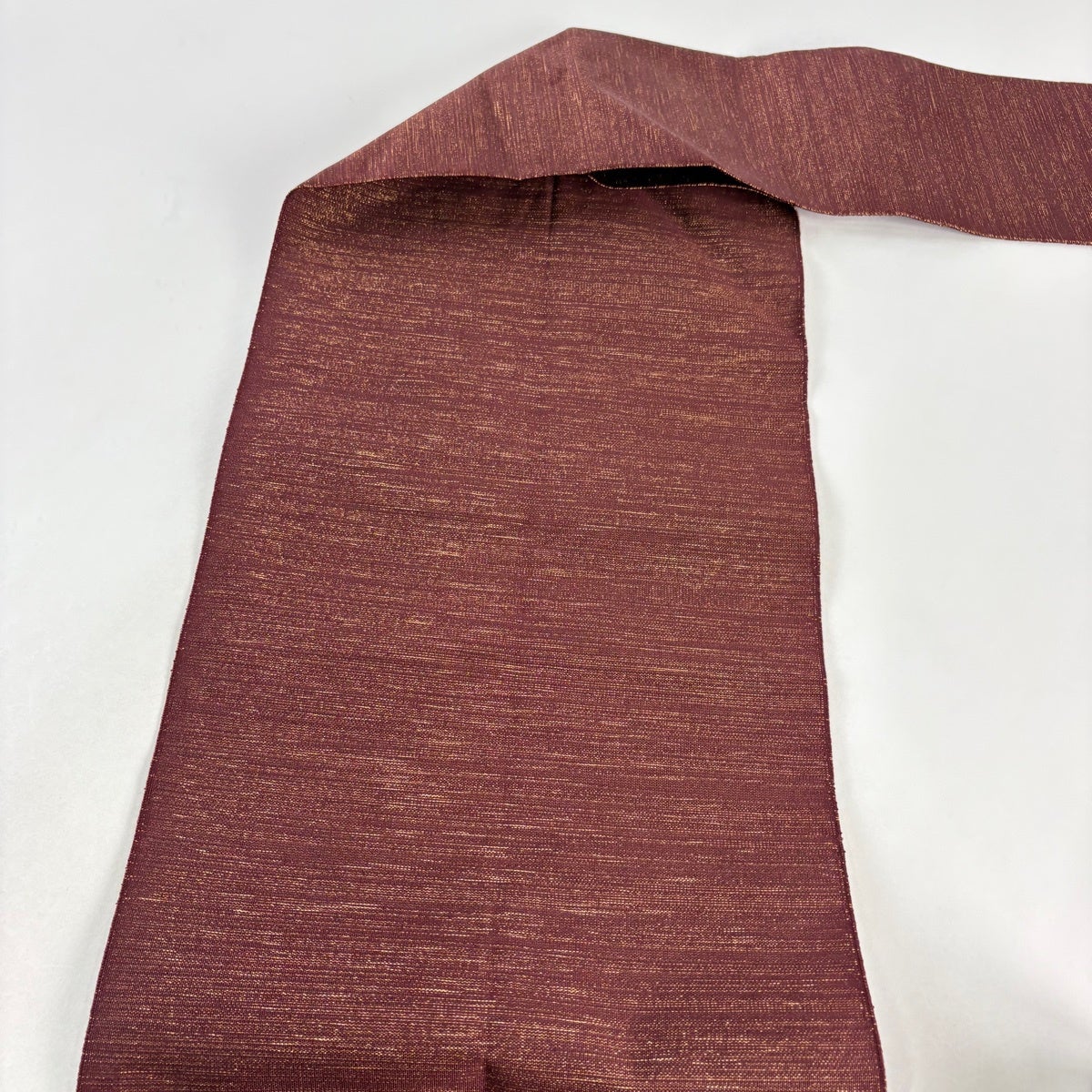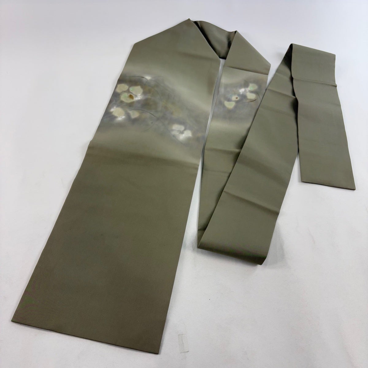 帯の格は着物とは逆で染よりも織のほうが格式が高く、名古屋帯は袋帯よりも格が低く様々な技法や生地で作成されているため組み合わせ数も多く場面によって使い分けることでセミフォーマルからカジュアルまで幅広く着用する事ができる帯です。 名古屋帯の名前の由来は名古屋の女学校の先生が考案したと言われるため名古屋帯という名前で呼ばれるようになりました。 形状はお太鼓部分までは通常の帯幅ですがそれ以降は幅が半分になっていることが多く、袋帯よりも短い作りになっているため一重太鼓でしか結ぶ事ができません。