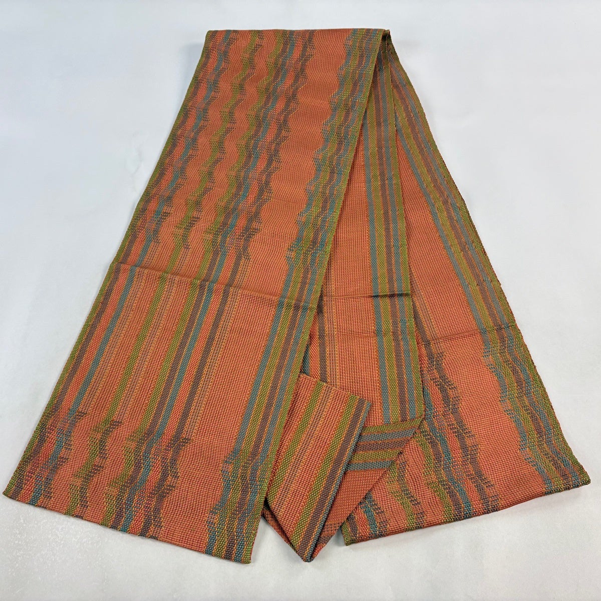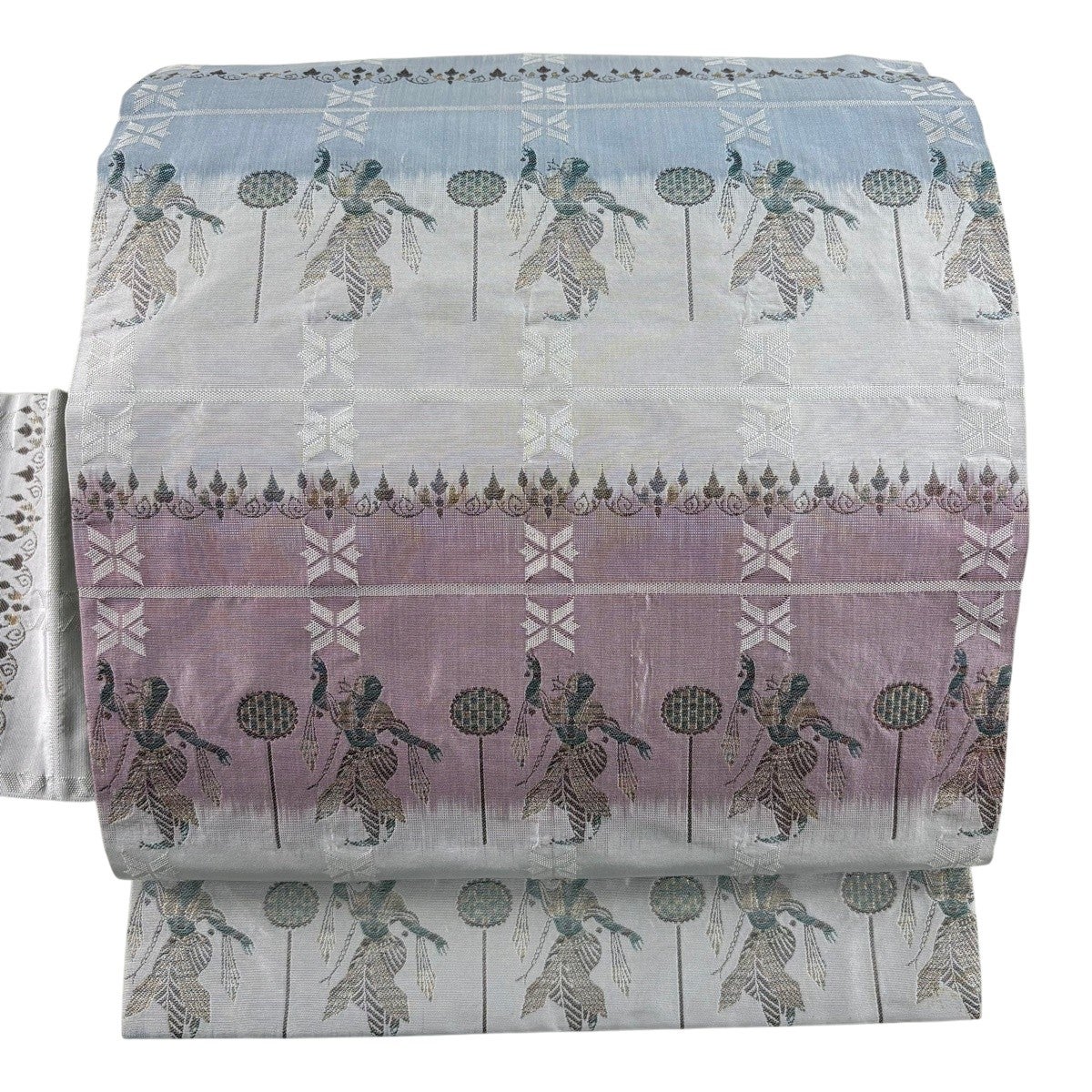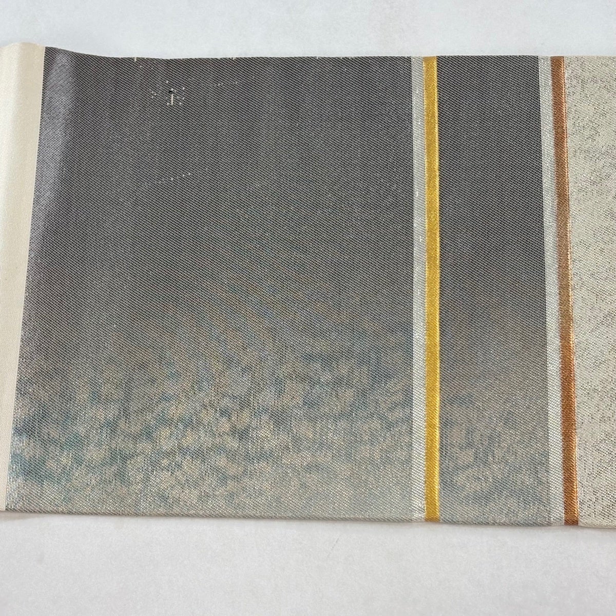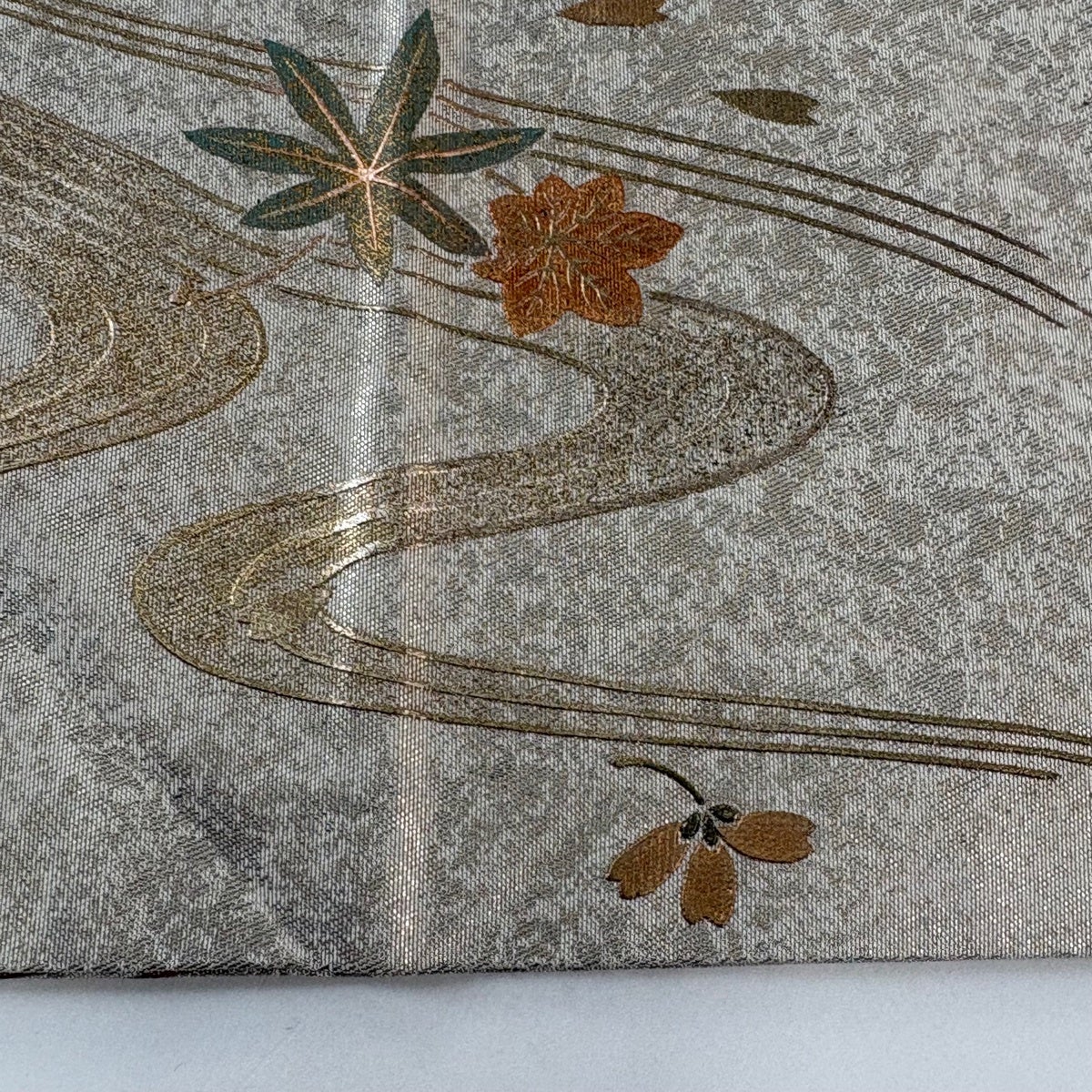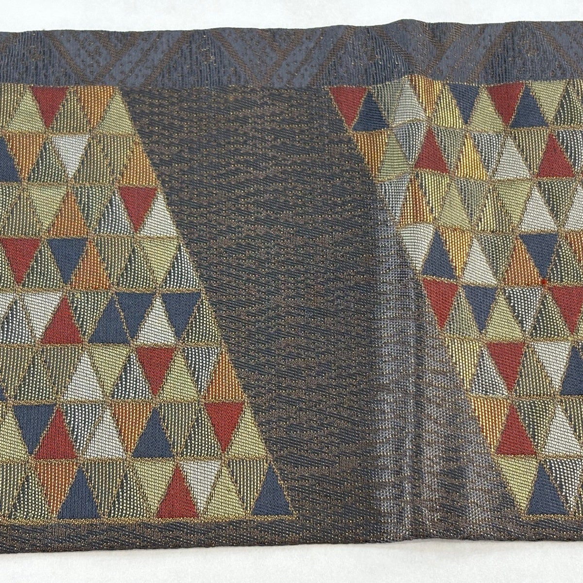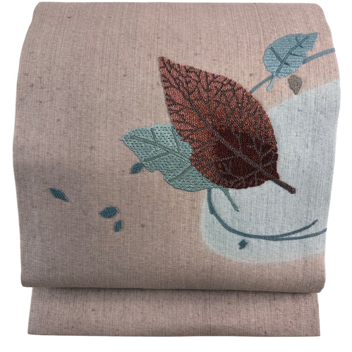 帯の格は着物とは逆で染よりも織のほうが格式が高く、名古屋帯は袋帯よりも格が低く様々な技法や生地で作成されているため組み合わせ数も多く場面によって使い分けることでセミフォーマルからカジュアルまで幅広く着用する事ができる帯です。 名古屋帯の名前の由来は名古屋の女学校の先生が考案したと言われるため名古屋帯という名前で呼ばれるようになりました。 形状はお太鼓部分までは通常の帯幅ですがそれ以降は幅が半分になっていることが多く、袋帯よりも短い作りになっているため一重太鼓でしか結ぶ事ができません。