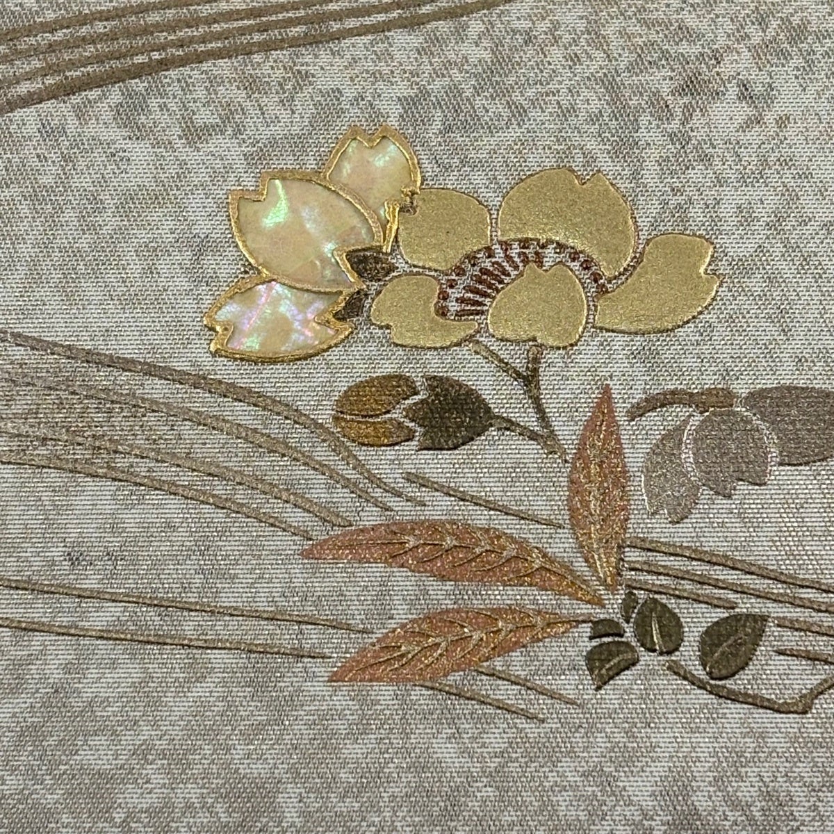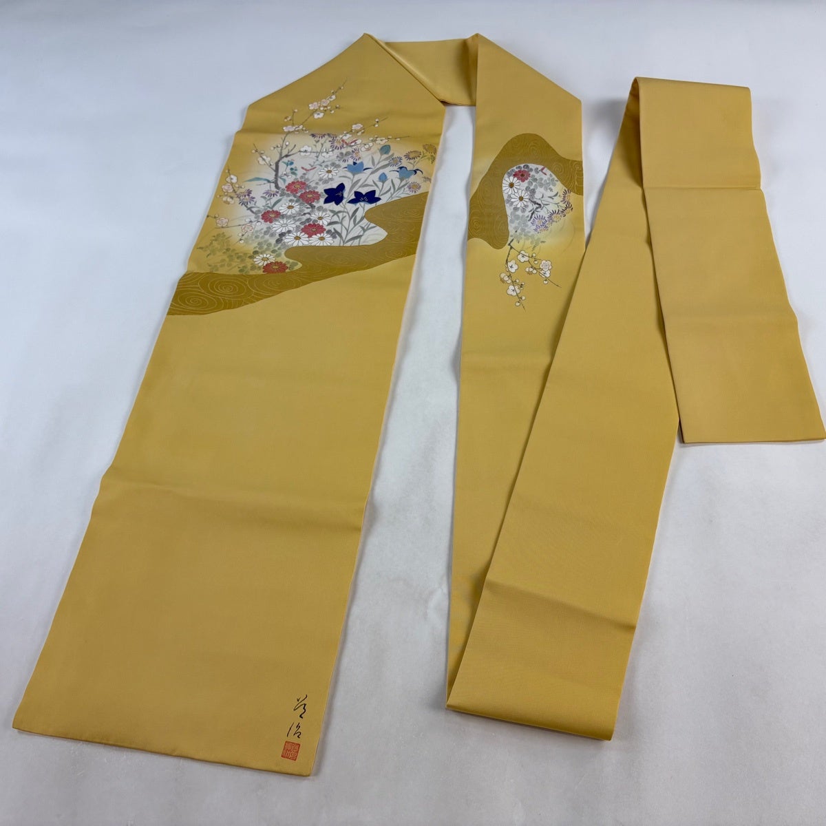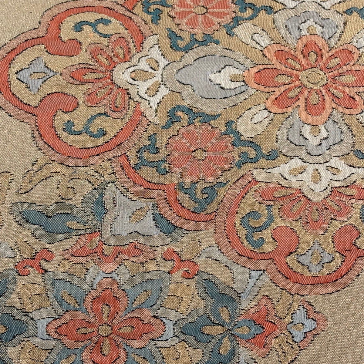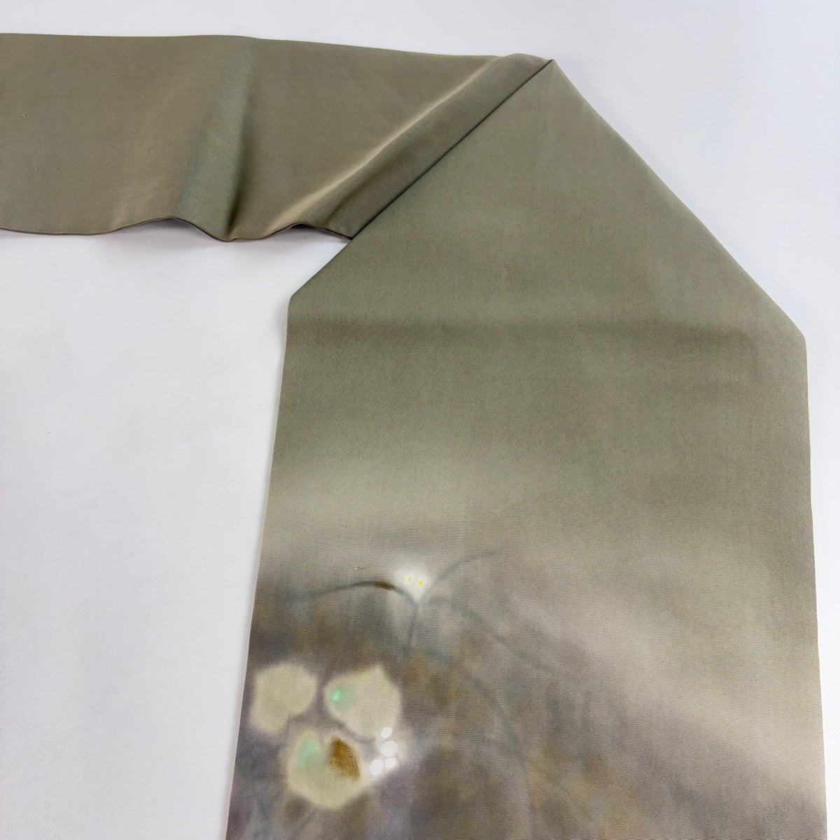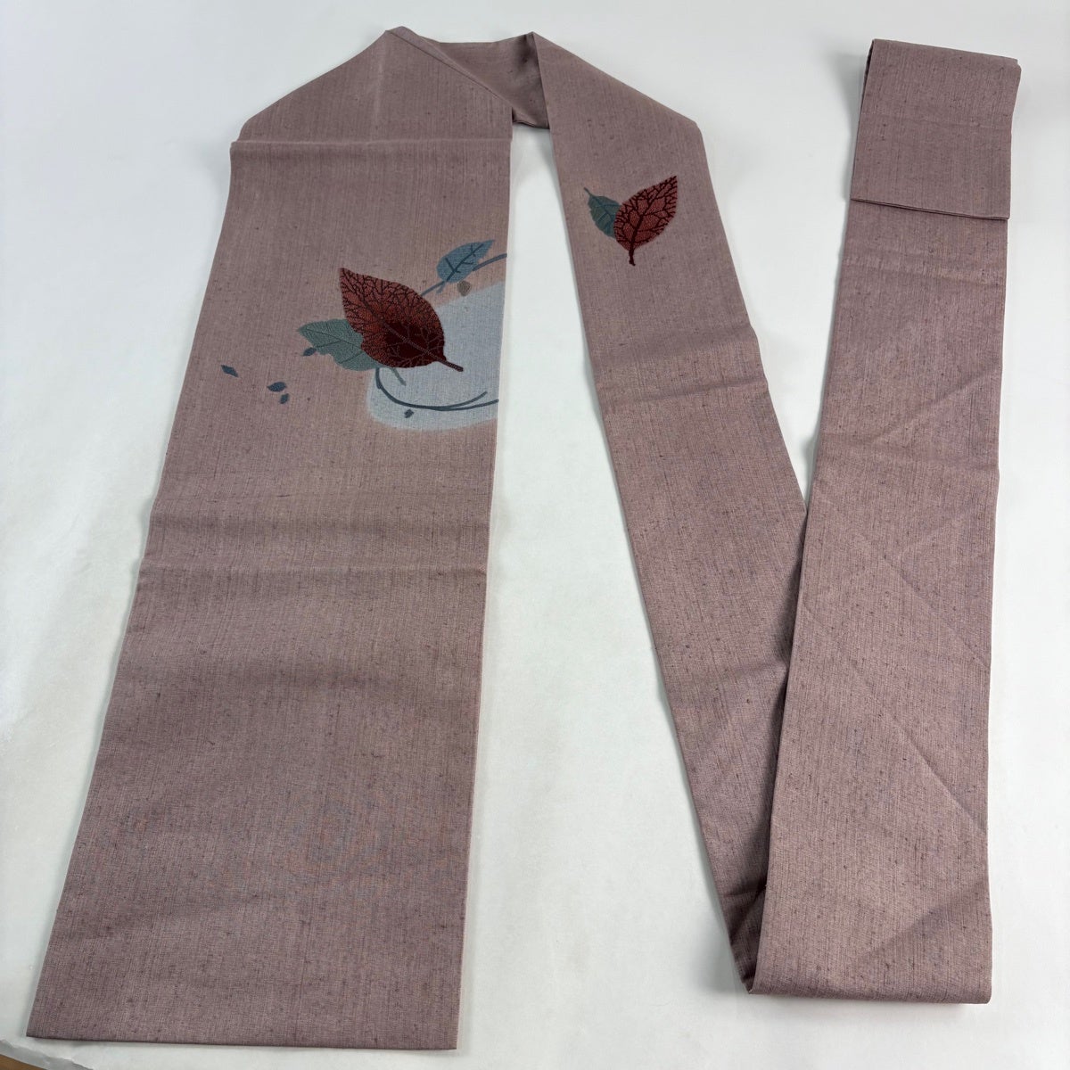 帯の格は着物とは逆で染よりも織のほうが格式が高く、名古屋帯は袋帯よりも格が低く様々な技法や生地で作成されているため組み合わせ数も多く場面によって使い分けることでセミフォーマルからカジュアルまで幅広く着用する事ができる帯です。 名古屋帯の名前の由来は名古屋の女学校の先生が考案したと言われるため名古屋帯という名前で呼ばれるようになりました。 形状はお太鼓部分までは通常の帯幅ですがそれ以降は幅が半分になっていることが多く、袋帯よりも短い作りになっているため一重太鼓でしか結ぶ事ができません。