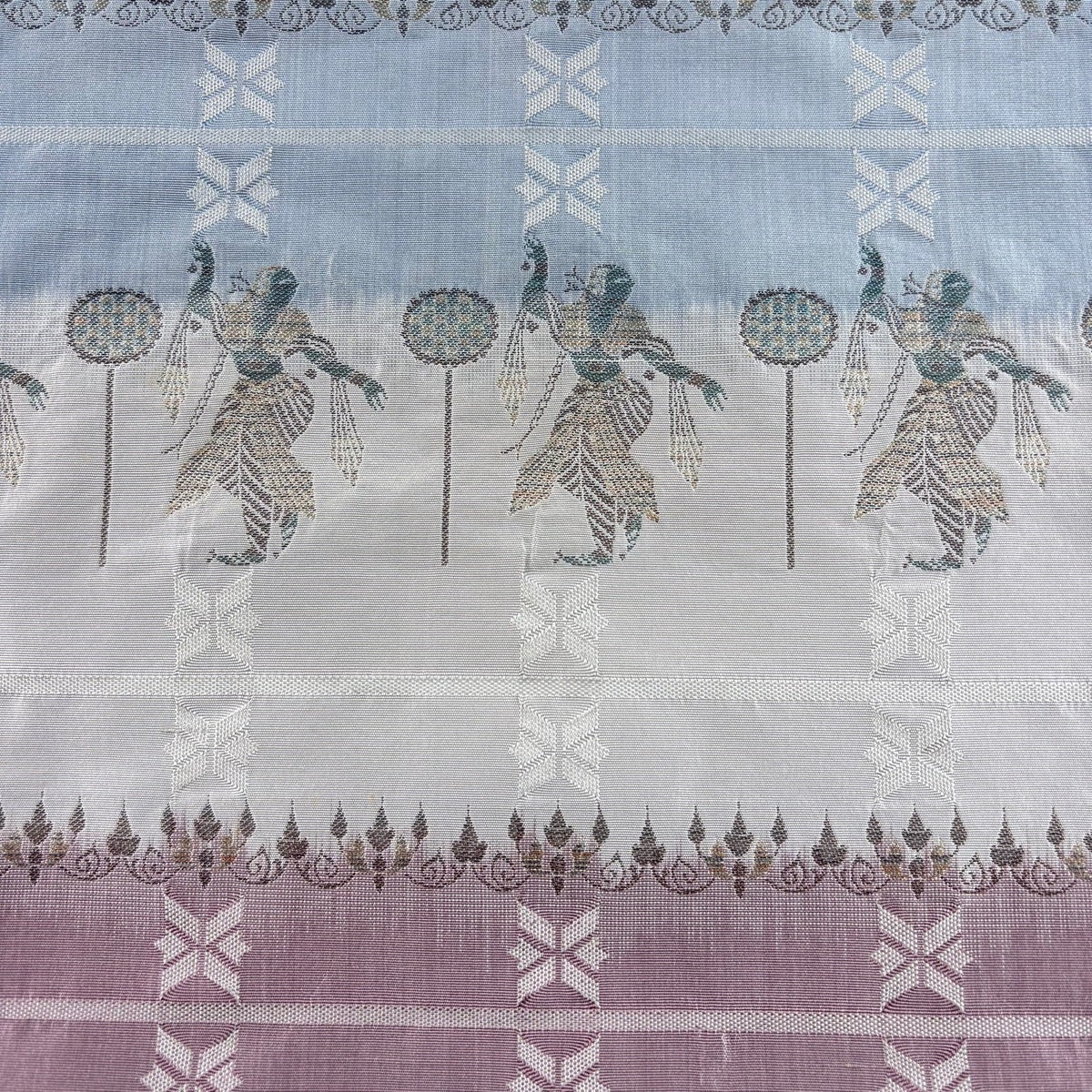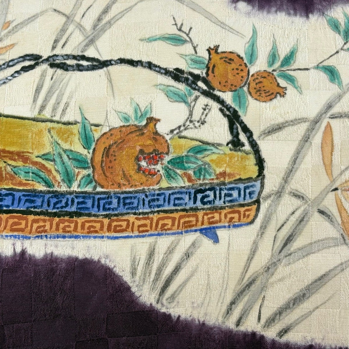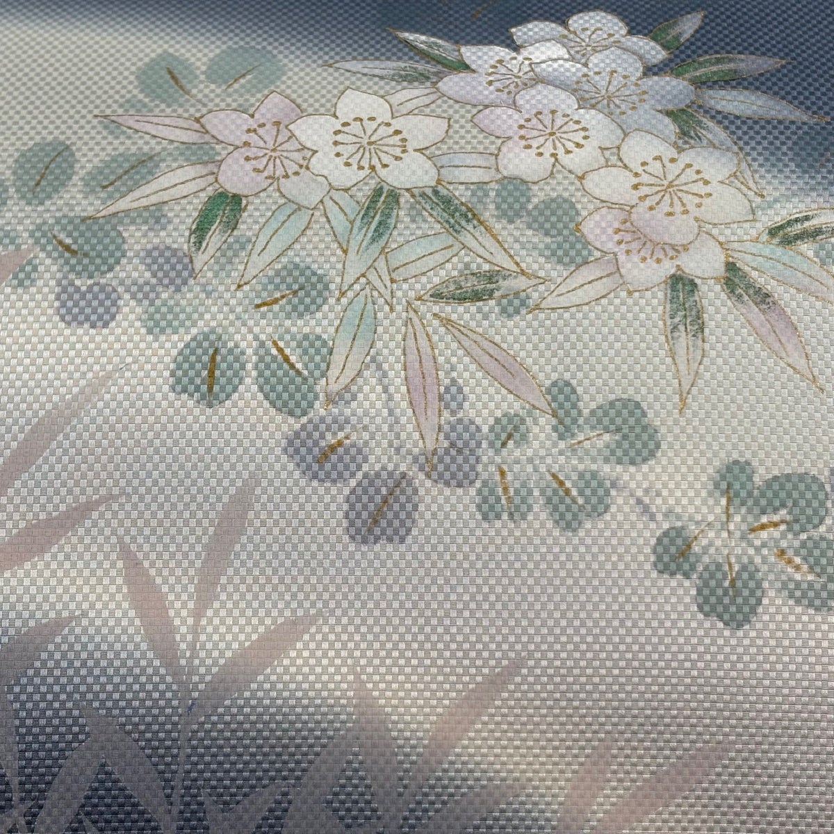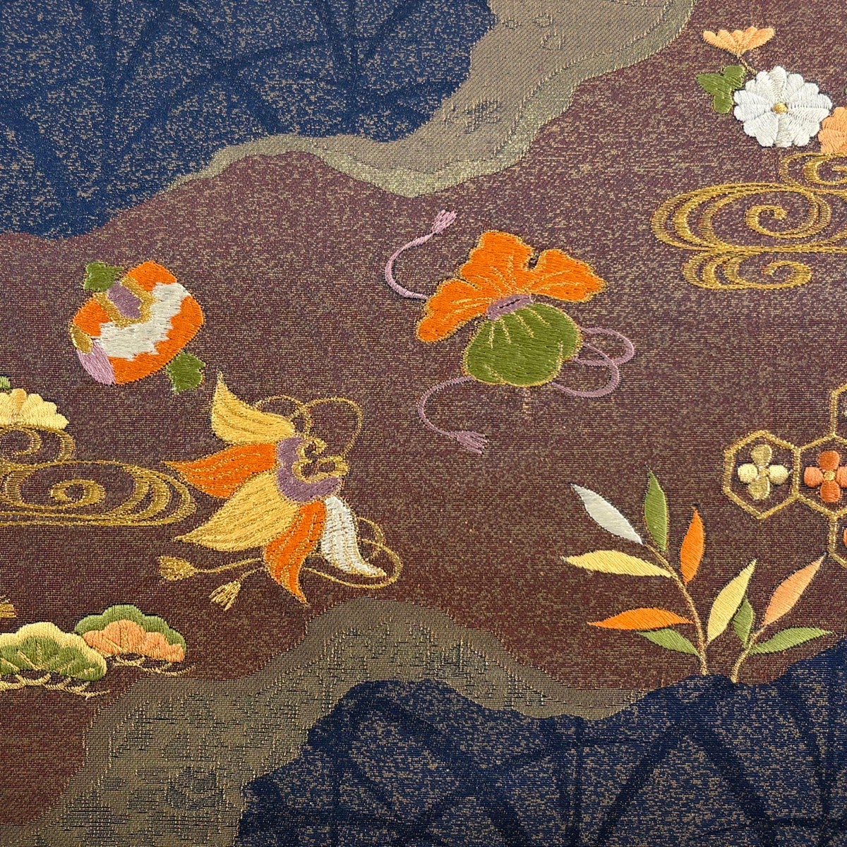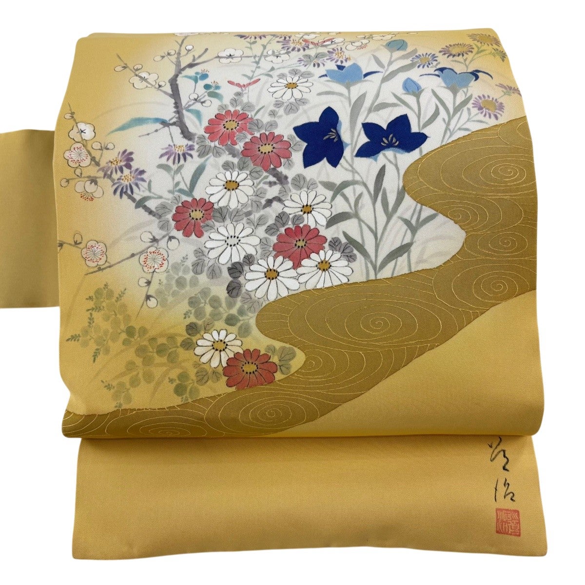 帯の格は着物とは逆で染よりも織のほうが格式が高く、名古屋帯は袋帯よりも格が低く様々な技法や生地で作成されているため組み合わせ数も多く場面によって使い分けることでセミフォーマルからカジュアルまで幅広く着用する事ができる帯です。 名古屋帯の名前の由来は名古屋の女学校の先生が考案したと言われるため名古屋帯という名前で呼ばれるようになりました。 形状はお太鼓部分までは通常の帯幅ですがそれ以降は幅が半分になっていることが多く、袋帯よりも短い作りになっているため一重太鼓でしか結ぶ事ができません。