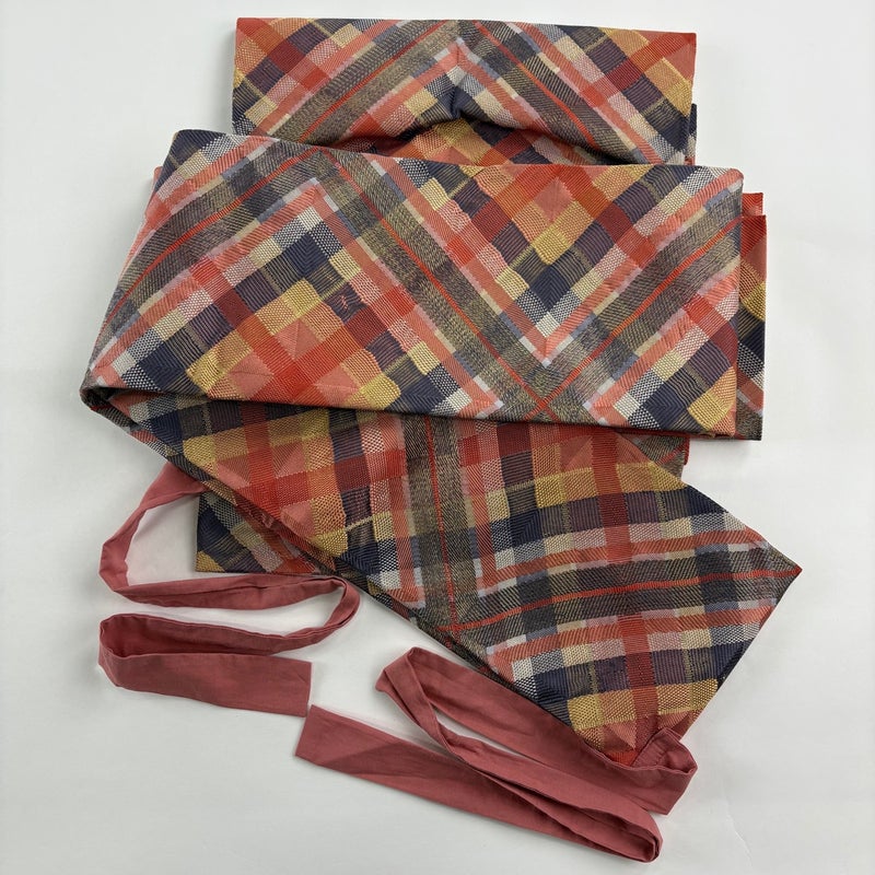 【お太鼓部分】 長さ:28.5cm 垂先長さ:8.5cm 幅:30.5cm 【胴周り部分】 幅:6cm 長さ(全長):124cm 長さ(紐付け根~紐付け根):116cm 作り帯が入荷いたしました。 胴周りの部分とお太鼓が一体となっており、簡単に締めることが出来ます。 ※胴周りの作りが二重になっております。 紐部分に生地のよれと薄汚れがございます。 目立ったシミ汚れ無く、リユース品としては良い状態でございます。 ※なお、厳しく商品の状態確認を行っておりますが、記載の汚れ以外にも見落とし箇所がある可能性がある旨ご了承いただけますと幸いです。 【PR2】