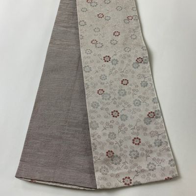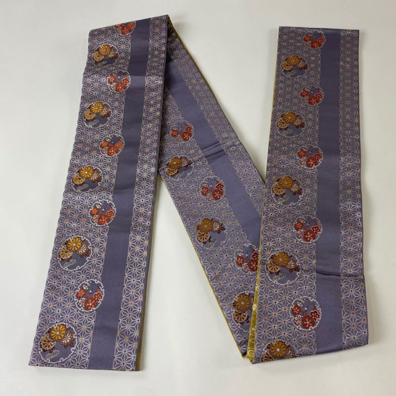 【半幅帯】 灰色系 灰紫 優品 A 帯丈426cm~435cm -3980 美品 二万以下