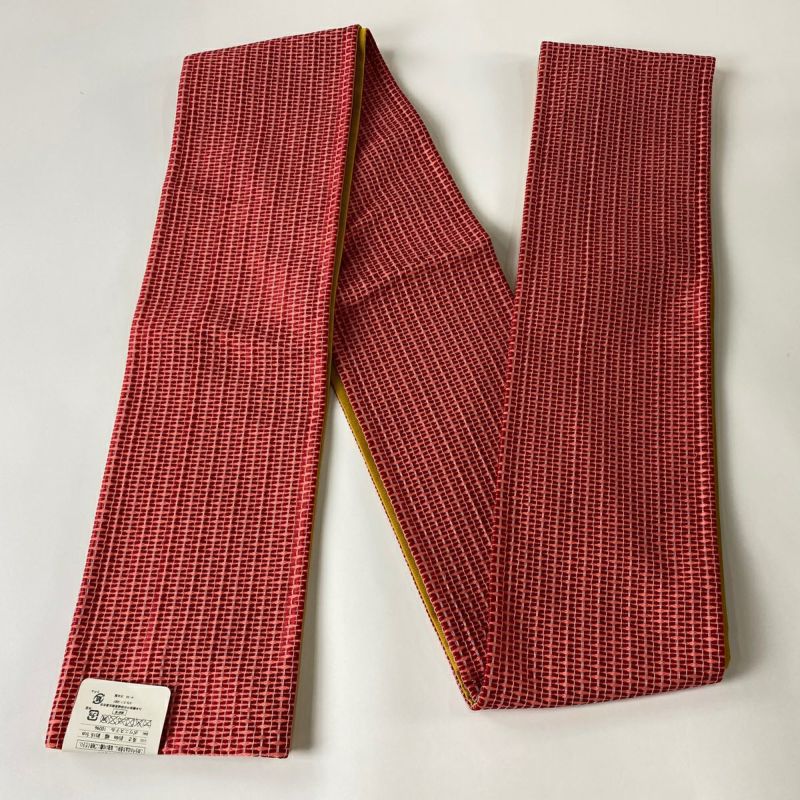 【半幅帯】 赤系 赤 優品 A 帯丈366cm~400cm -3980 美品 二万以下