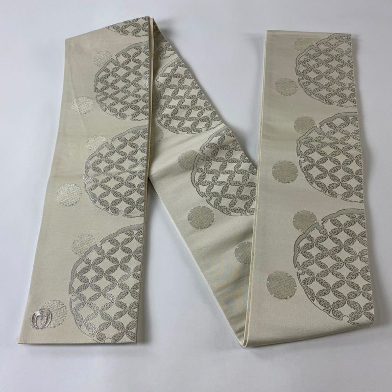 【半幅帯】 白系 クリーム 優品 A 帯丈366cm~400cm 7990-9980 美品 二万以下