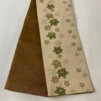 帯の幅が半分で扱いやすい半幅帯でございます。 手軽に締められるのが魅力です。 浴衣や買い物などの普段使いのほか、色柄によってはお出かけや気軽なパーティにもご使用いただけます。 帯結びも色々ありますので可愛らしい装いから粋なスタイルまでお楽しみいただけます。 締め跡や、裏地にシミがございますが、リユース品としては状態の良いお品でございます。 沢山の商品の中からご覧いただき誠にありがとうございます。