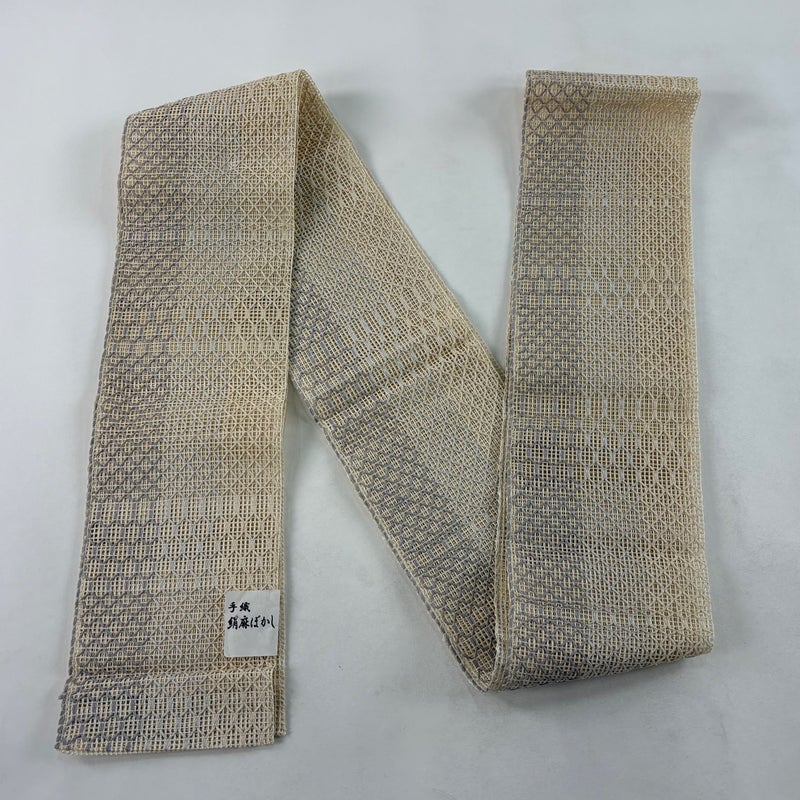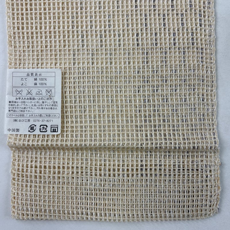 【着物ランク】秀品 【素材】正絹、麻 【帯丈】約396cm 【帯幅】約17.5cm 【帯仕立て】仕立て上がり 【状態ランク】ランクA 【帯着用シーン】普段使いの洒落帯(紬・小紋)