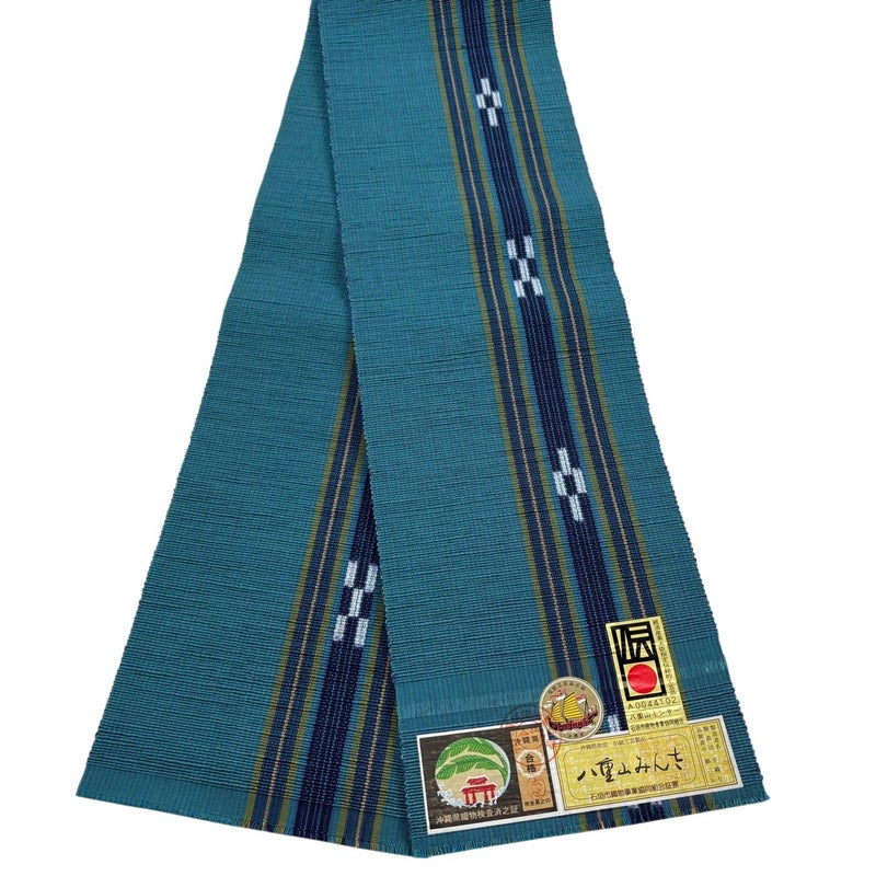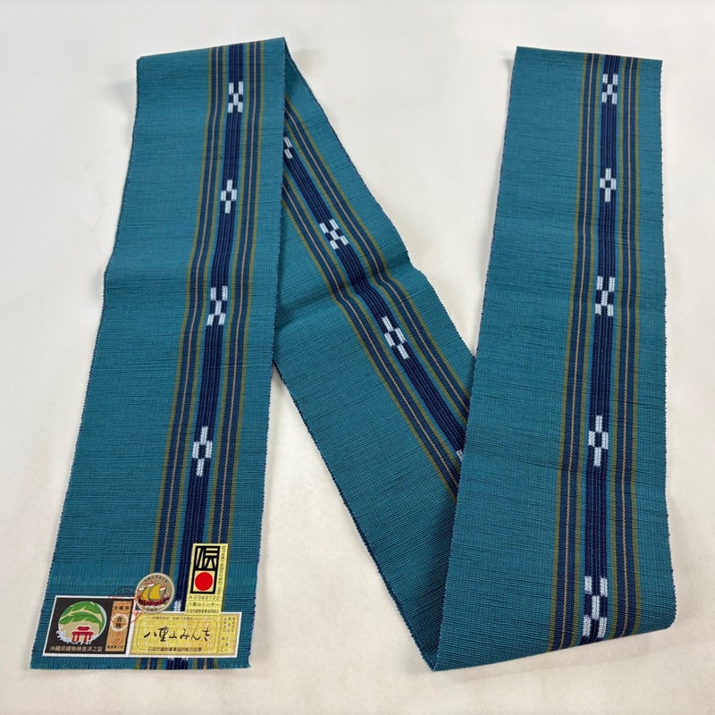 【半幅帯】 青系 青緑 名品 A 帯丈366cm~400cm 9990-29990 美品 五万以下