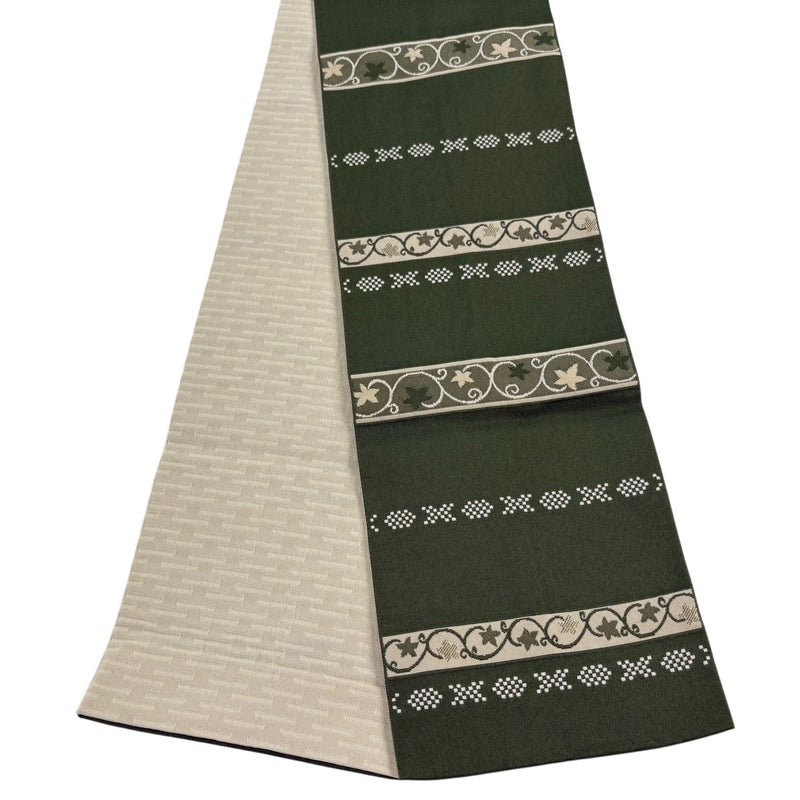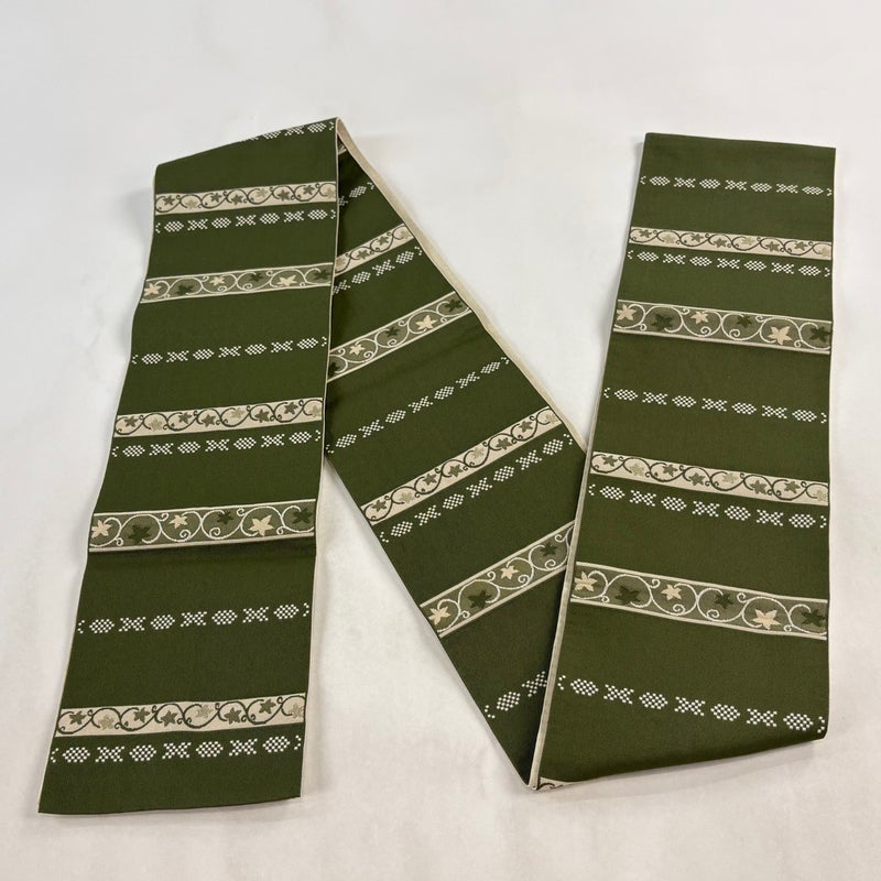 【半幅帯】 緑系 鶯色 優品 A 帯丈366cm~400cm 7990-9980 美品 二万以下