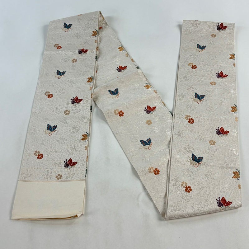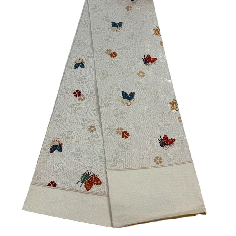 【半幅帯】 白系 クリーム 名品 A 帯丈401cm~425cm 9990-29990 美品 二万以下