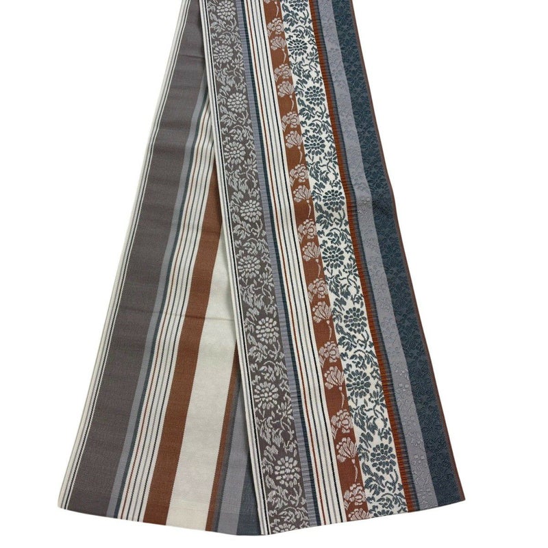 【半幅帯】 灰色系 青灰色 名品 A 帯丈356cm~365cm 9990-29990 美品 五万以下