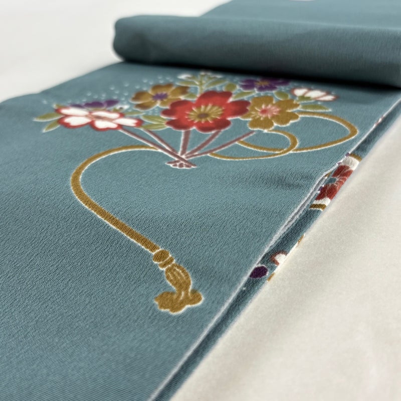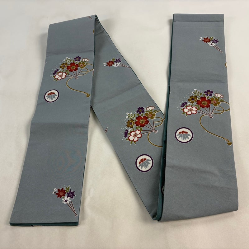 【半幅帯】 灰色系 灰緑 優品 A 帯丈401cm~425cm 7990-9980 美品 二万以下