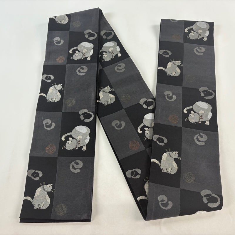 【半幅帯】 黒系 黒 優品 A 帯丈401cm~425cm 7990-9980 美品 二万以下