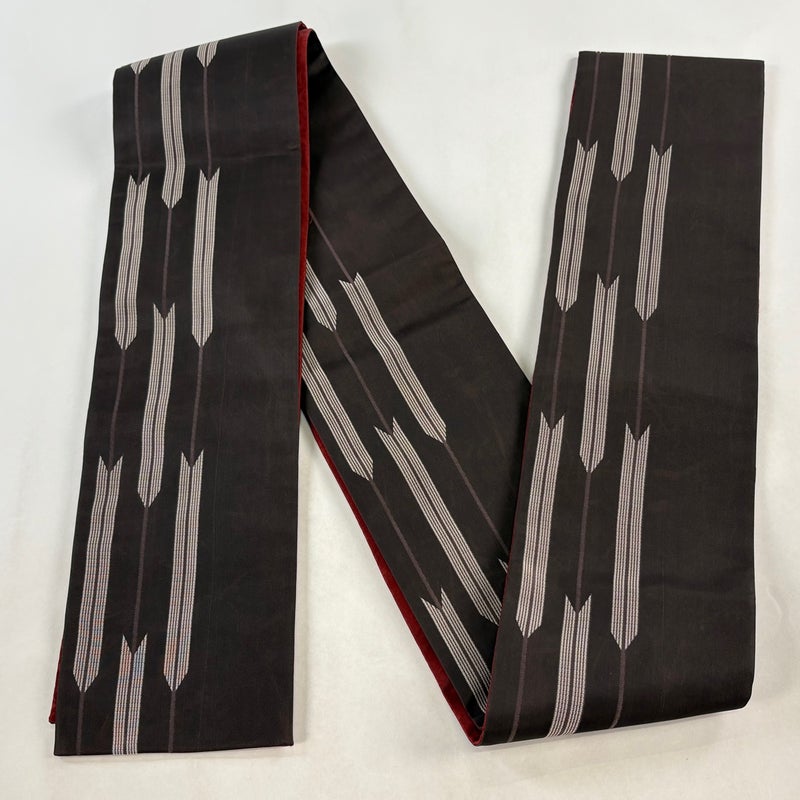 【半幅帯】 茶系 焦茶色 優品 A 帯丈366cm~400cm 7990-9980 美品 二万以下