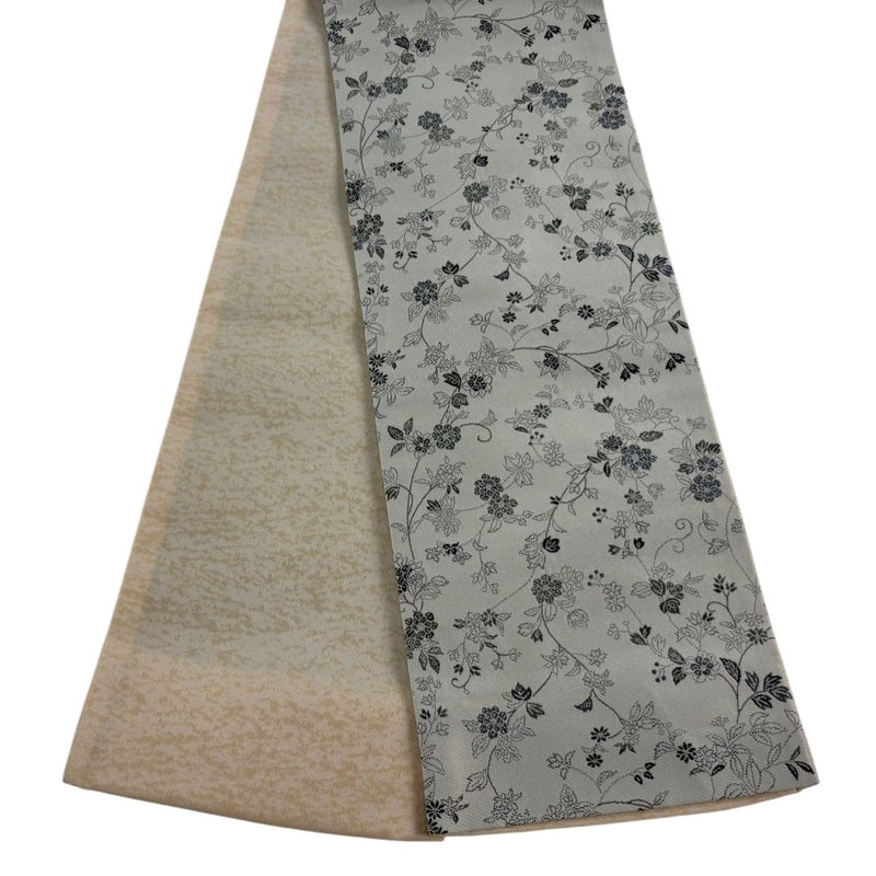 帯の幅が半分で扱いやすい半幅帯でございます。 手軽に締められるのが魅力です。 浴衣や買い物などの普段使いのほか、色柄によってはお出かけや気軽なパーティにもご使用いただけます。 表地にシミがございますが、リユース品としては状態の良いお品でございます。 沢山の商品の中からご覧いただき誠にありがとうございます。