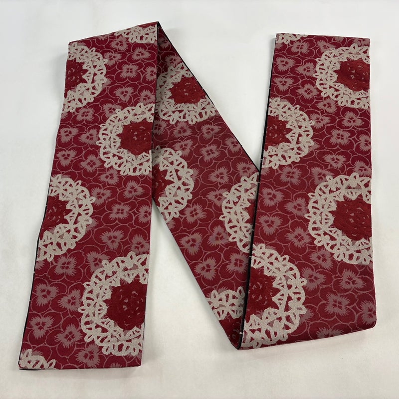 【半幅帯】 赤系 赤 優品 A 帯丈356cm~365cm 7990-9980 美品 二万以下