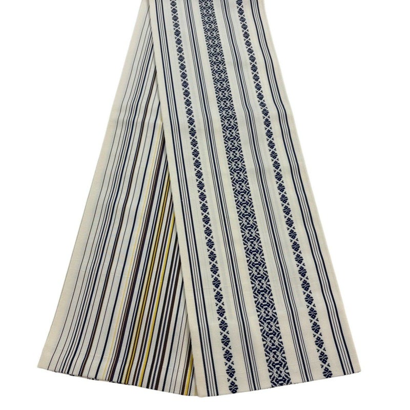 帯の幅が半分で扱いやすい半幅帯でございます。 手軽に締められるのが魅力です。 浴衣や買い物などの普段使いのほか、色柄によってはお出かけや気軽なパーティにもご使用いただけます。 帯結びも色々ありますので可愛らしい装いから粋なスタイルまでお楽しみいただけます。 目立ったシミ汚れは無くリユース品としては状態の良いお品でございます。 沢山の商品の中からご覧いただき誠にありがとうございます。