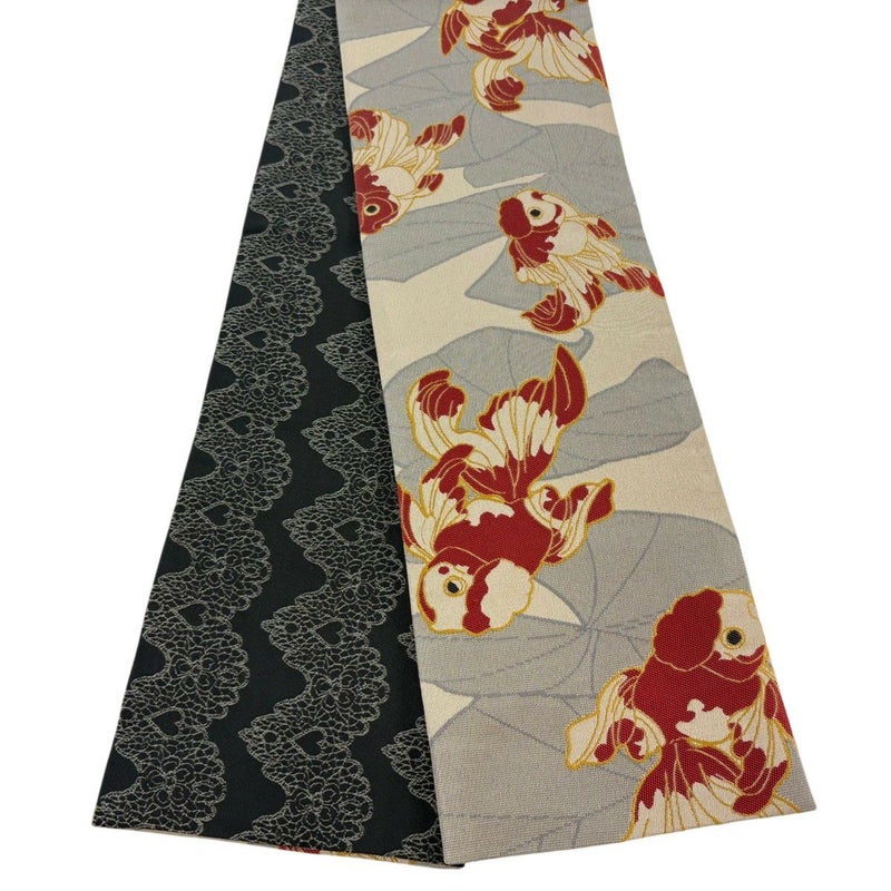 帯の幅が半分で扱いやすい半幅帯でございます。 手軽に締められるのが魅力です。 浴衣や買い物などの普段使いのほか、色柄によってはお出かけや気軽なパーティにもご使用いただけます。 帯結びも色々ありますので可愛らしい装いから粋なスタイルまでお楽しみいただけます。 締め跡、前柄に所々シミがございますが、まだまだご活用頂けると思われます。 沢山の商品の中からご覧いただき誠にありがとうございます。