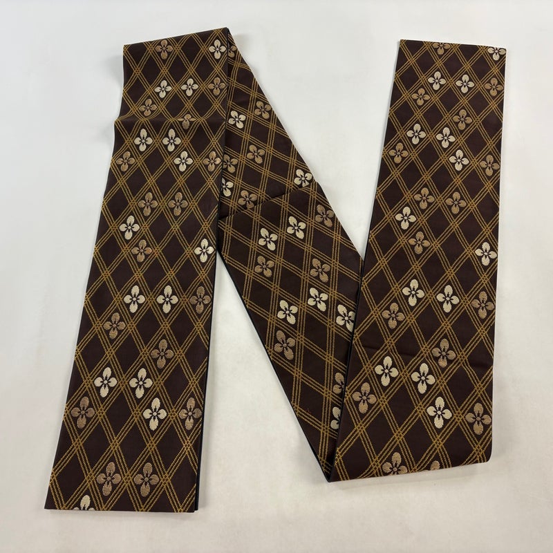 【半幅帯】 茶系 焦茶色 名品 A 帯丈436cm以上 9990-29990 美品 二万以下