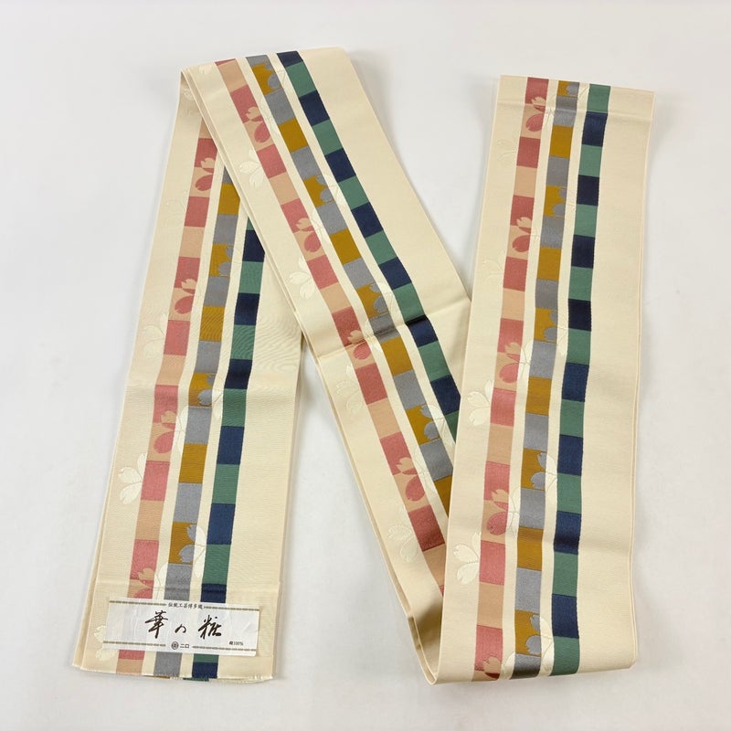 【半幅帯】 白系 ベージュ 秀品 A 帯丈366cm~400cm 9990-29990 美品 二万以下