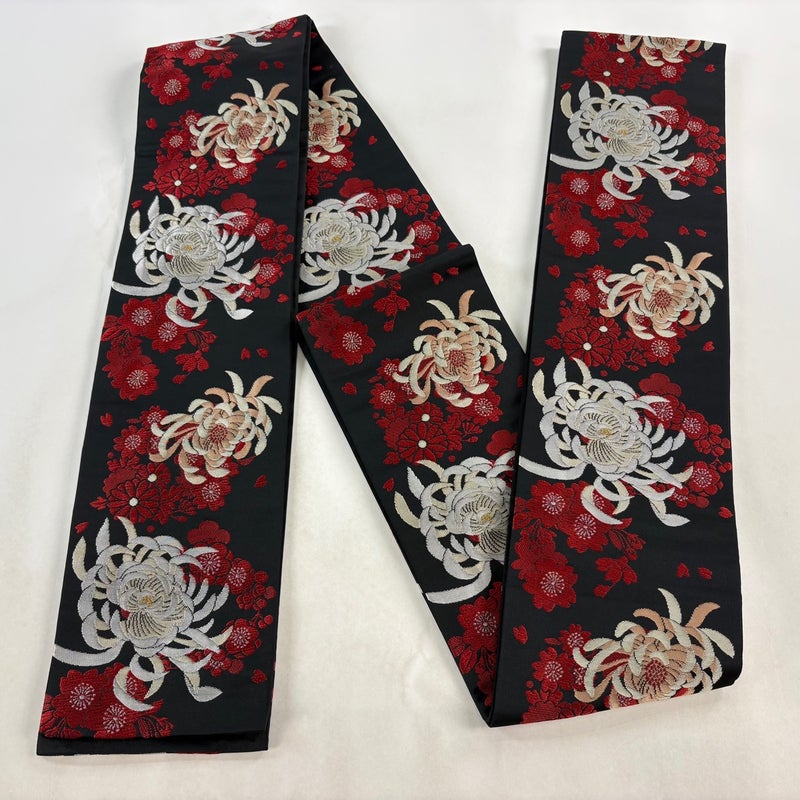 【半幅帯】 黒系 黒 優品 A 帯丈401cm~425cm 7990-9980 美品 二万以下