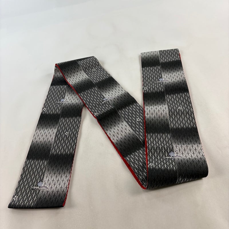 【半幅帯】 灰色系 黒灰 優品 A 帯丈401cm~425cm 7990-9980 美品 二万以下